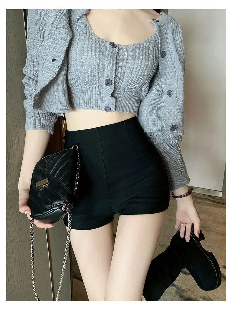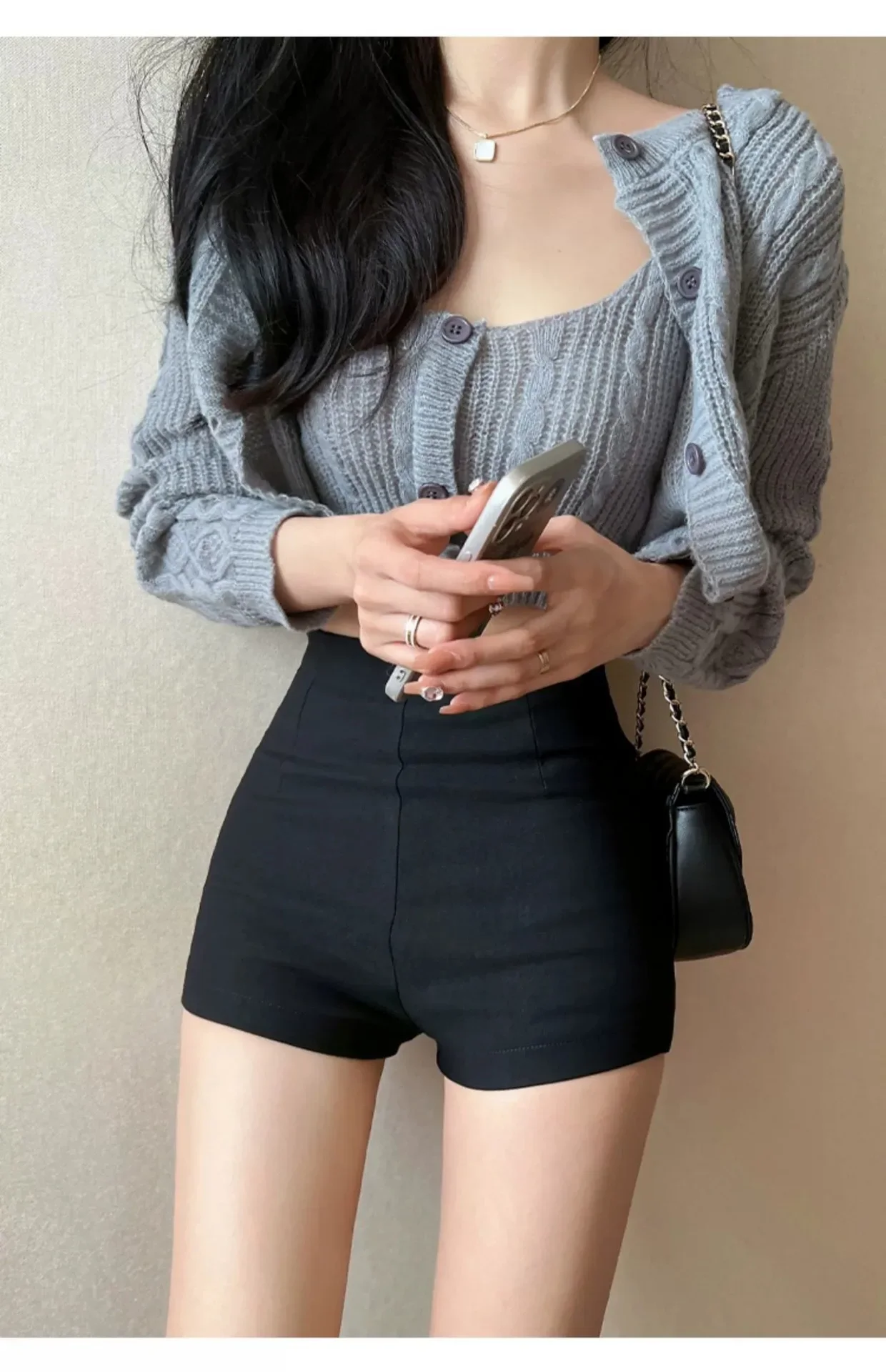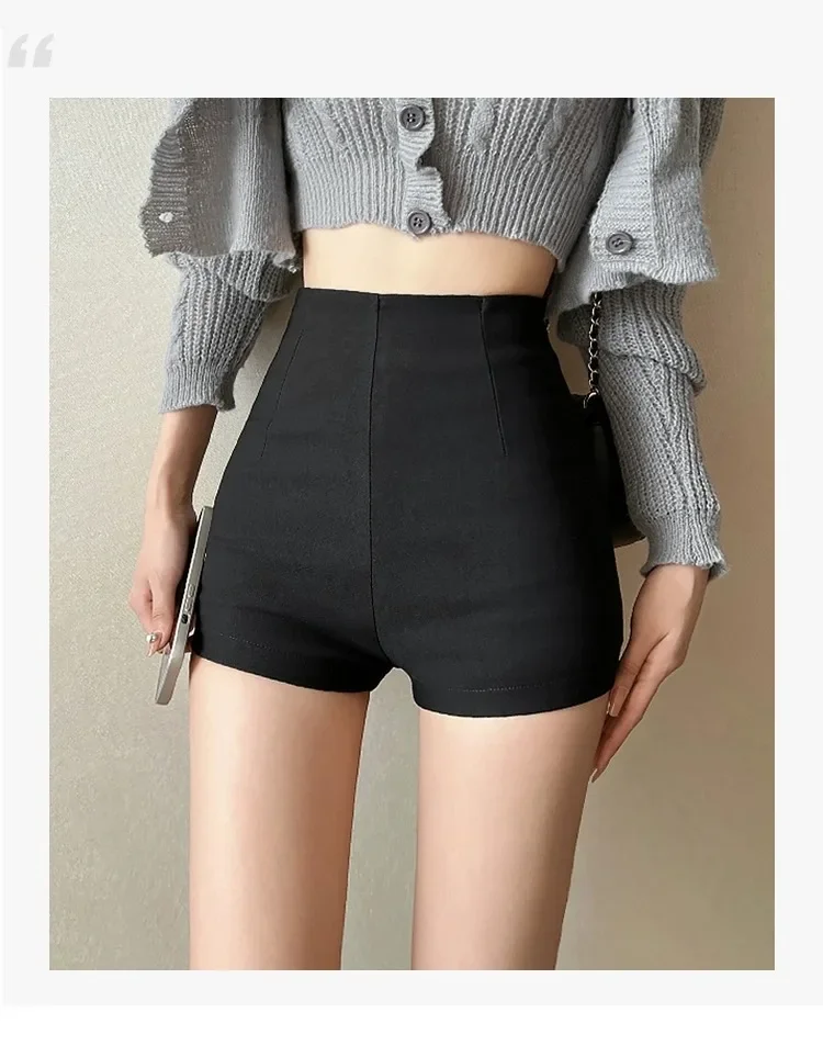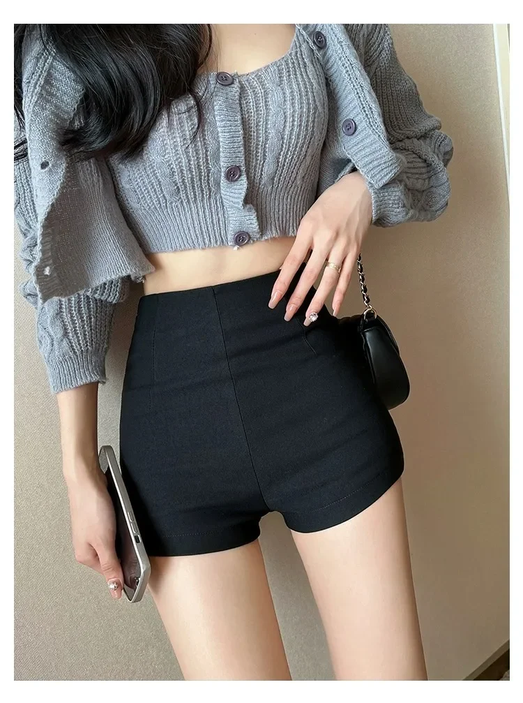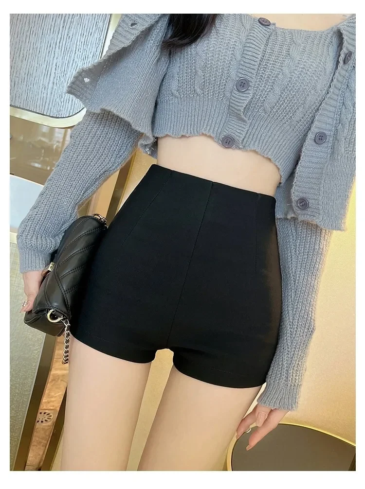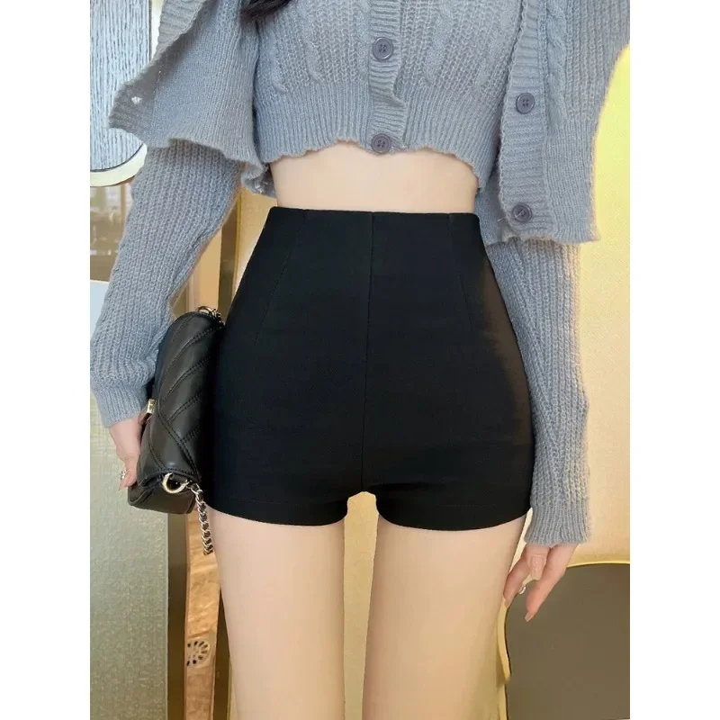 Black High-waisted Elastic Sexy Casual Shorts For Women 2023 Autumn New Style Solid Color Versatile Hip Covering Pants Trendy
