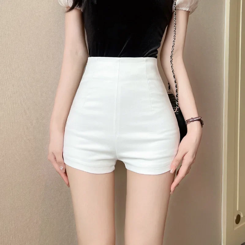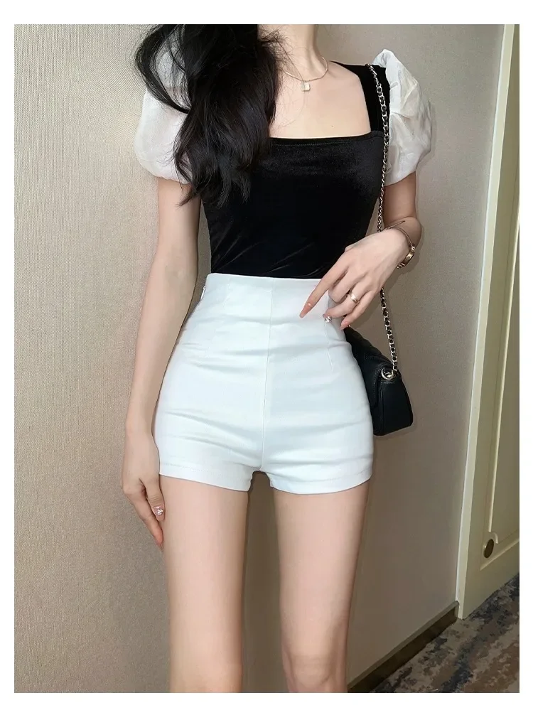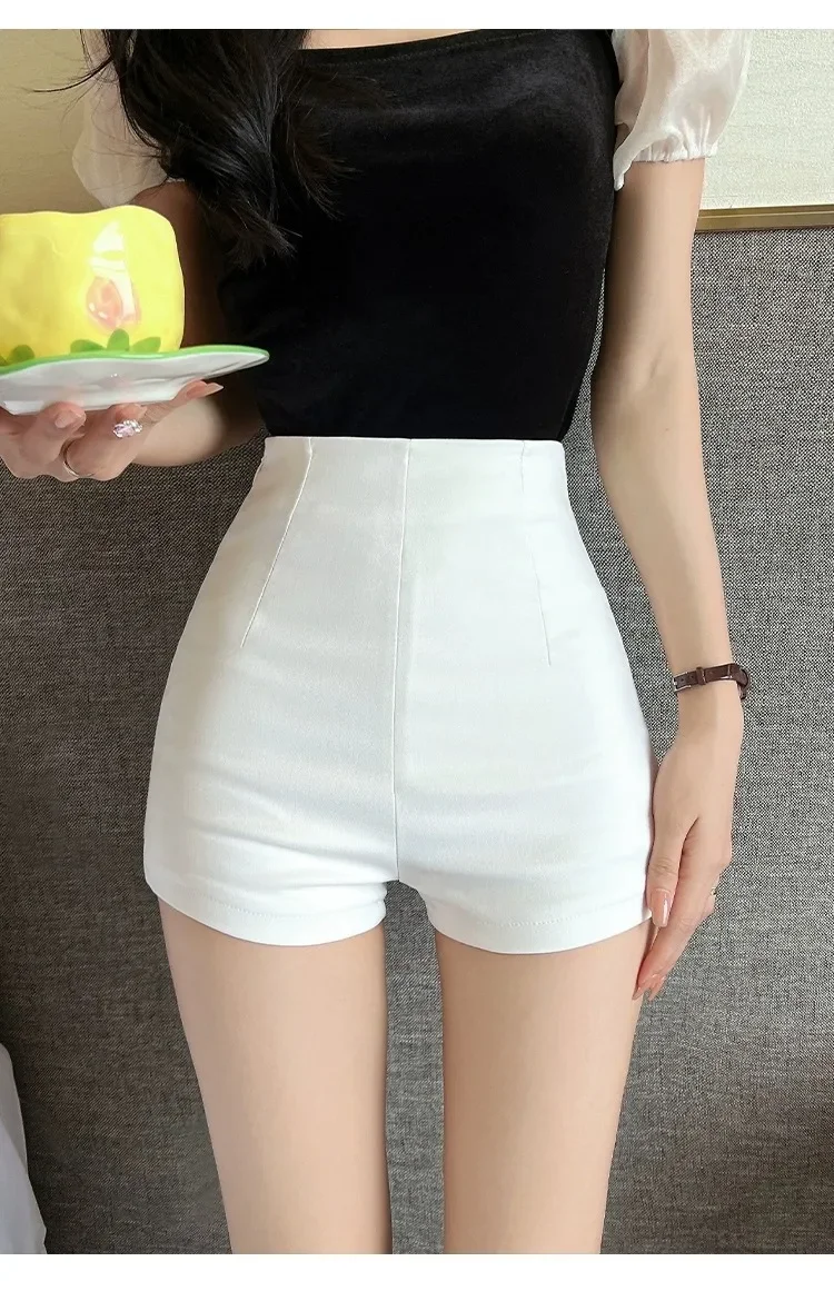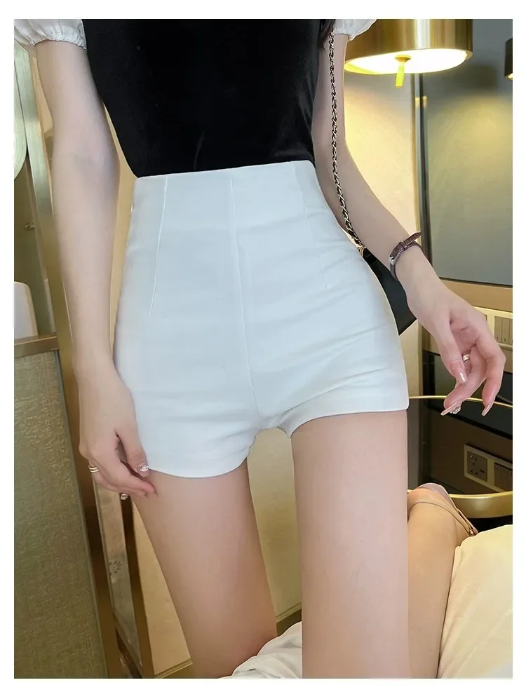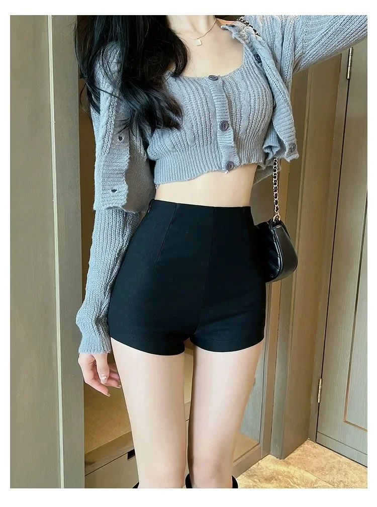 Black High-waisted Elastic Sexy Casual Shorts For Women 2023 Autumn New Style Solid Color Versatile Hip Covering Pants Trendy