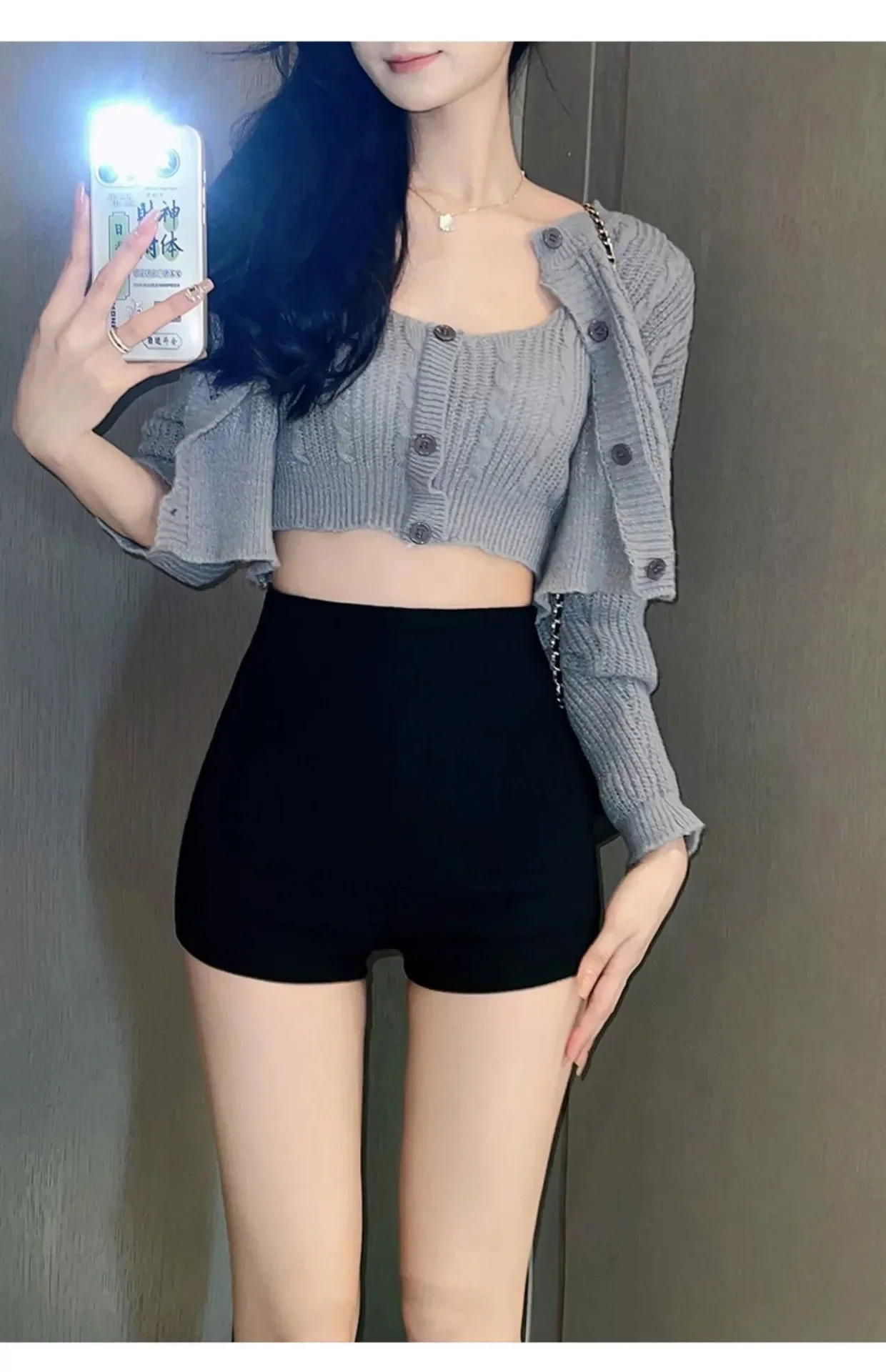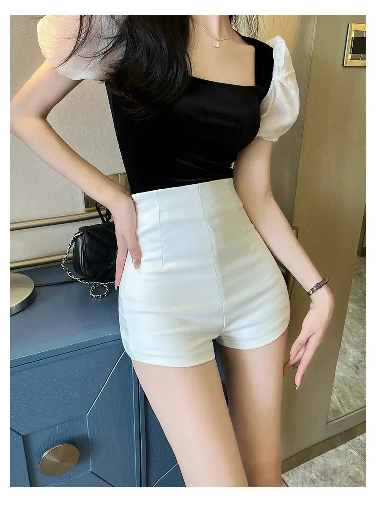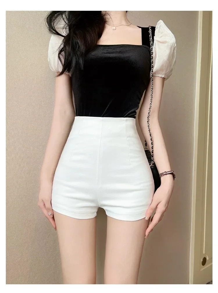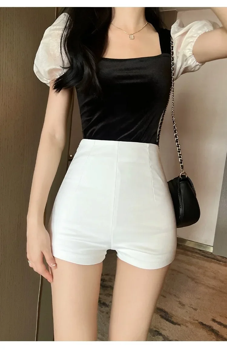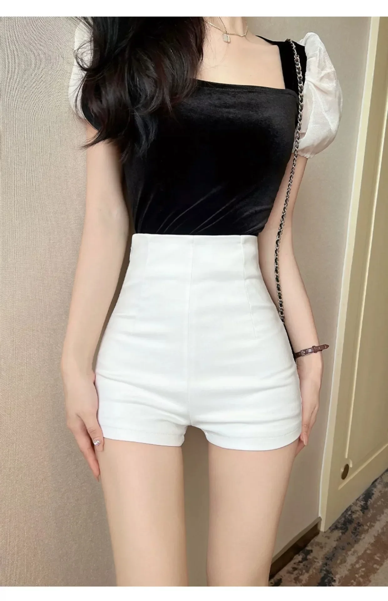 Black High-waisted Elastic Sexy Casual Shorts For Women 2023 Autumn New Style Solid Color Versatile Hip Covering Pants Trendy