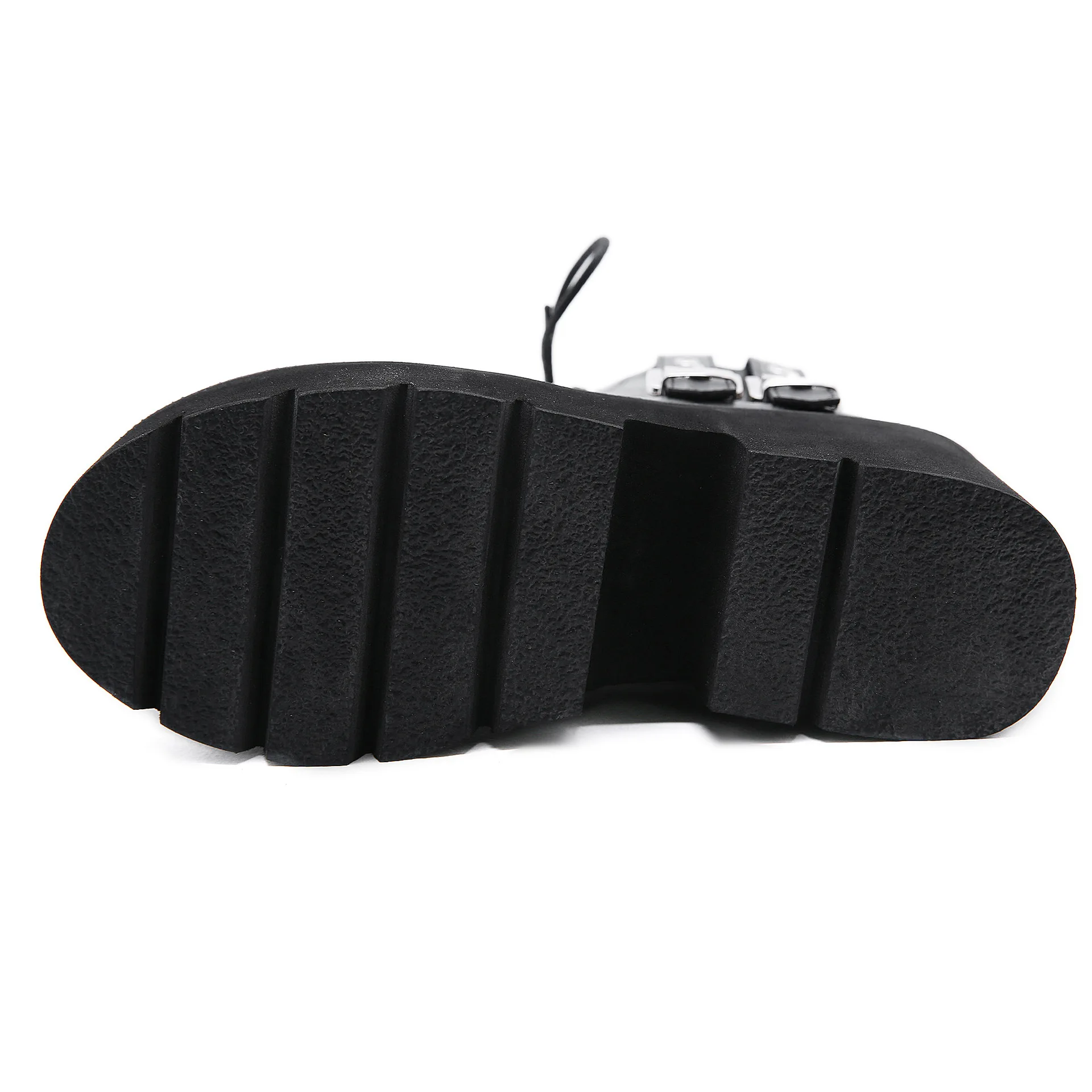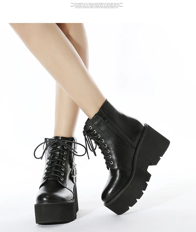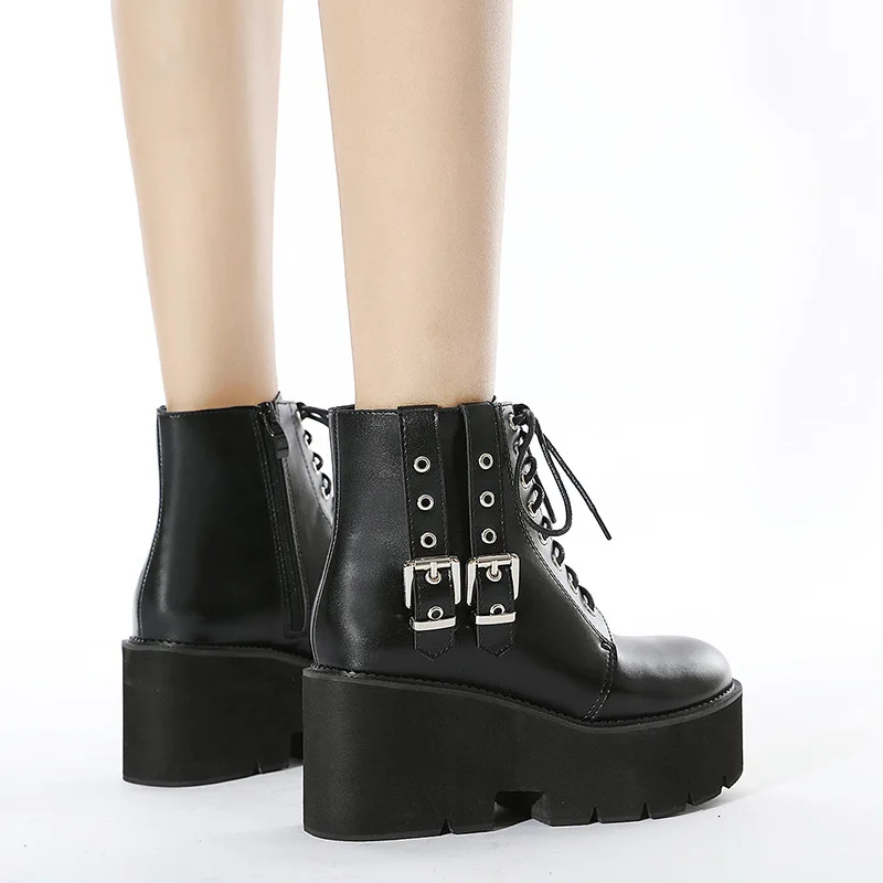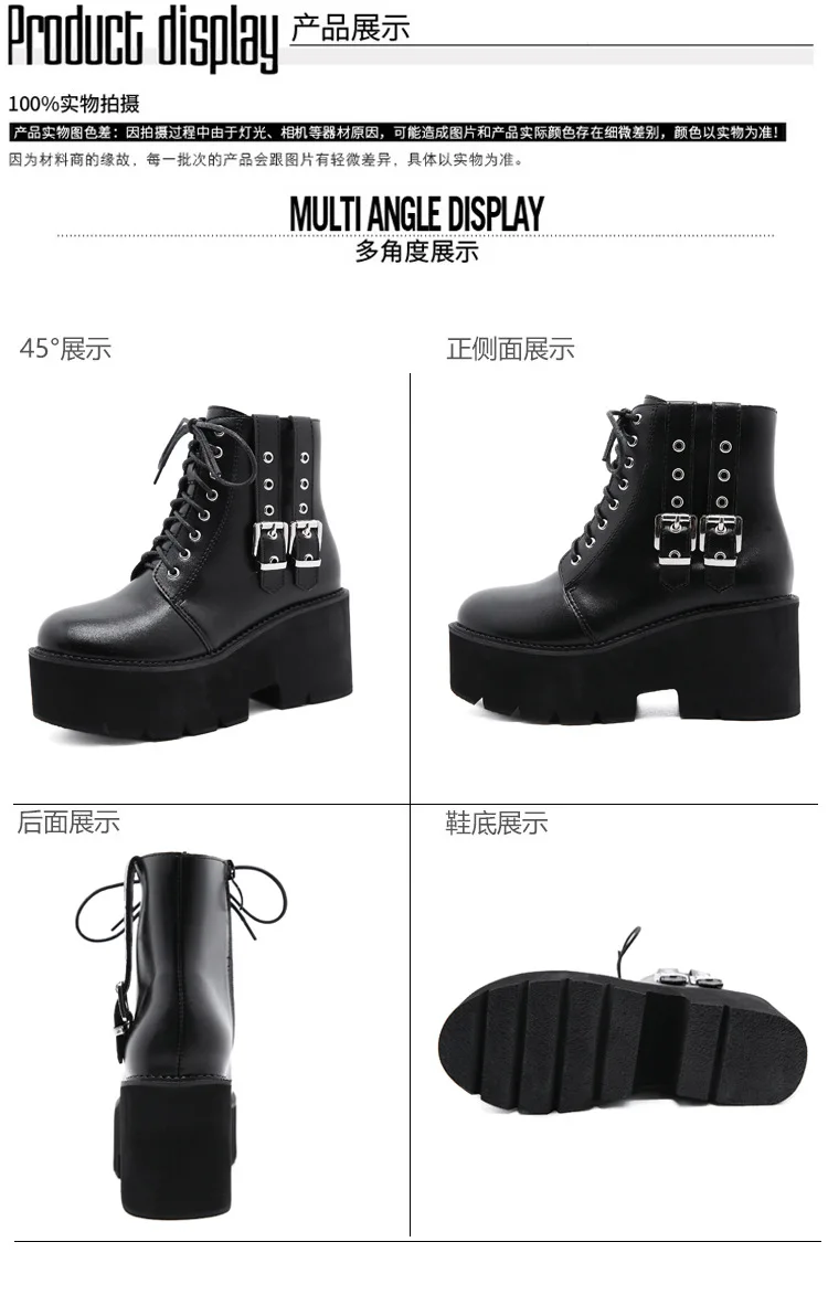 Black Platform Combat Ankle Boots for Women Lace Up Buckle Strap Woman Shoes Winter Biker Boots Big Size 35-43 Goth Shoes