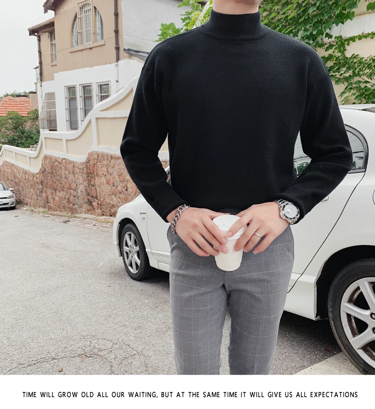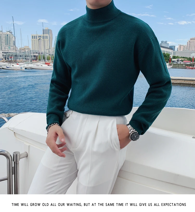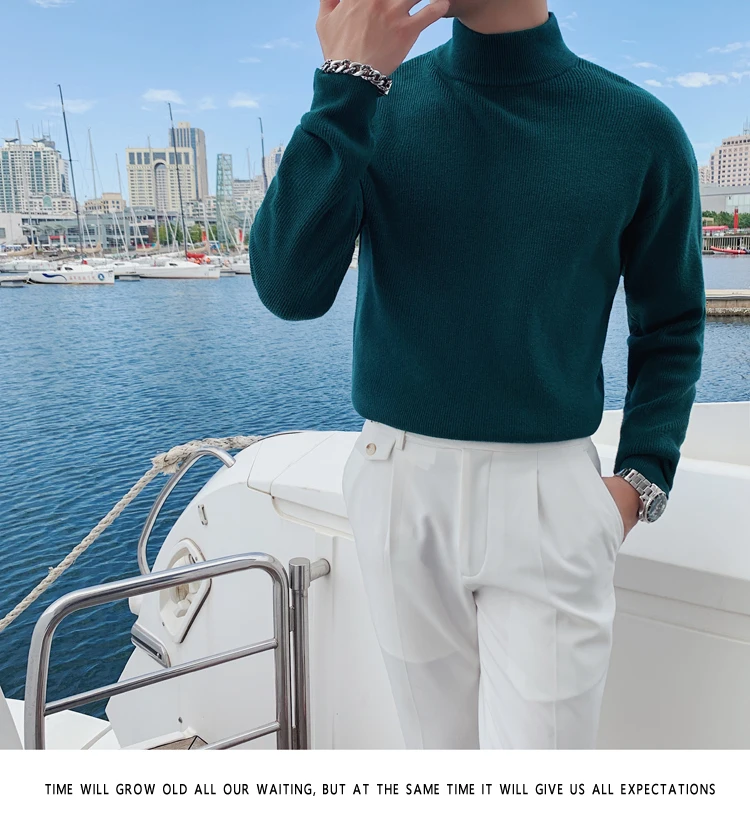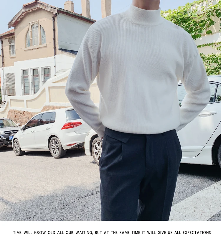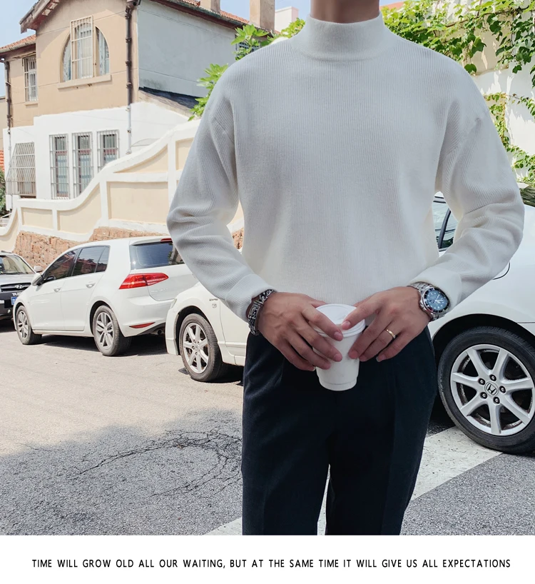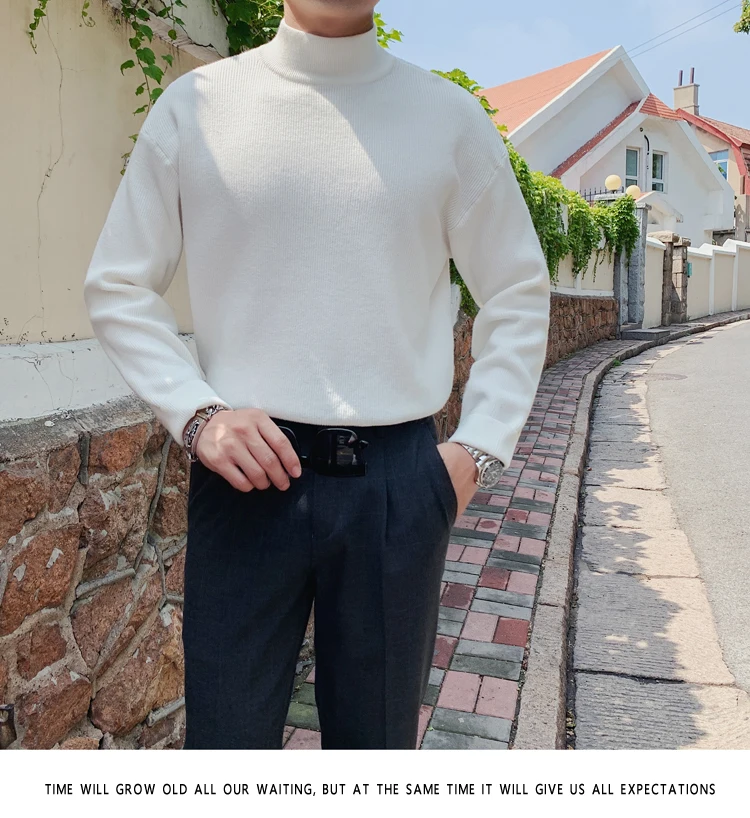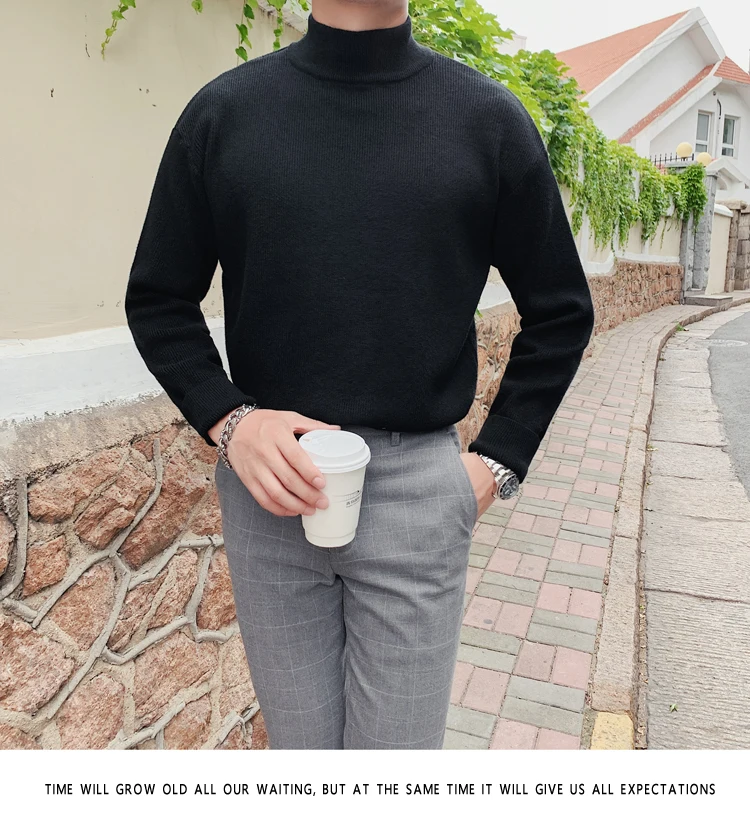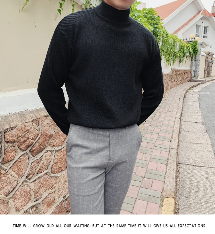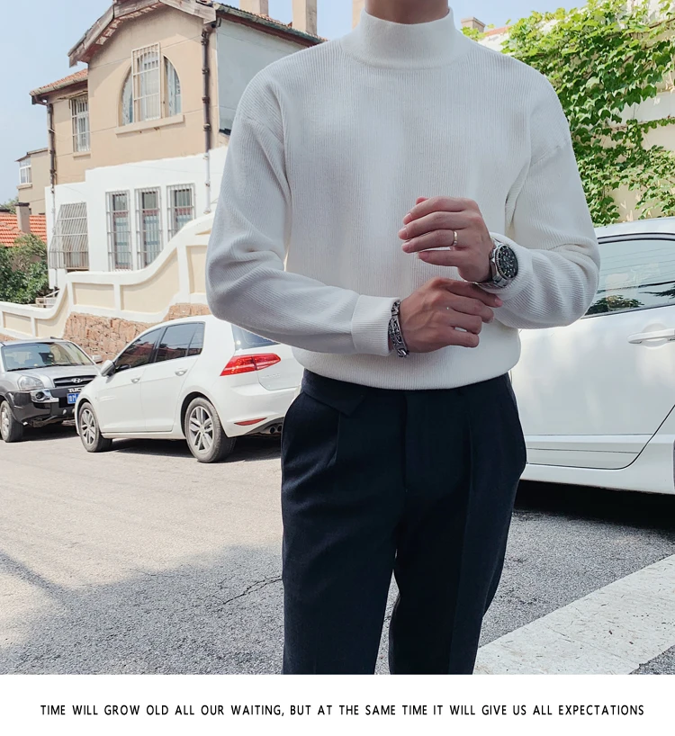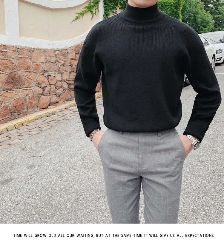 Black Turtlenecks Knitted Sweater Mens Pullover Autumn Mens Clothing Slim Fit Bottoming Shirts Elegant Mens Jumper Stylish White