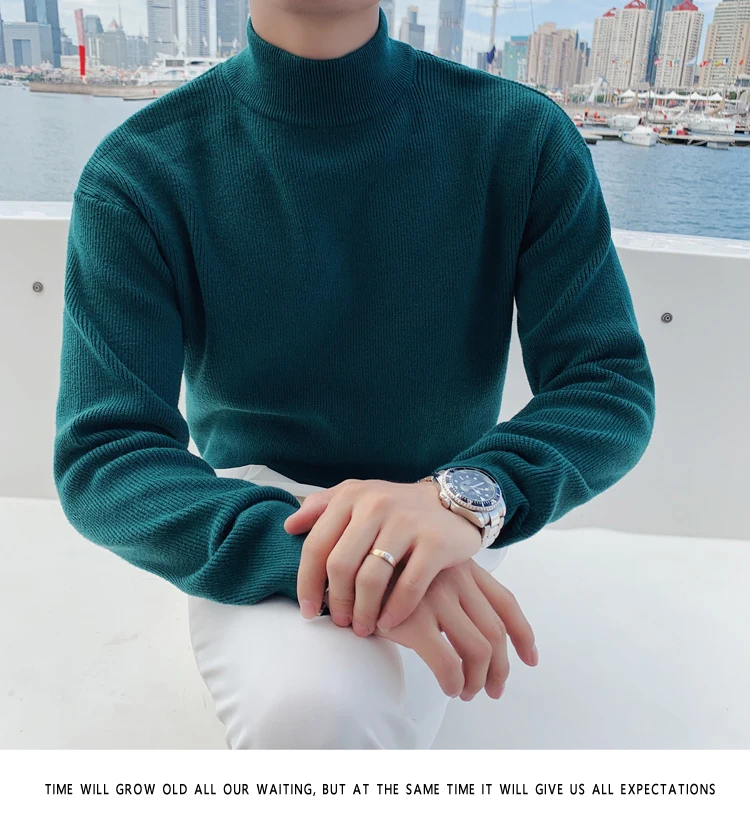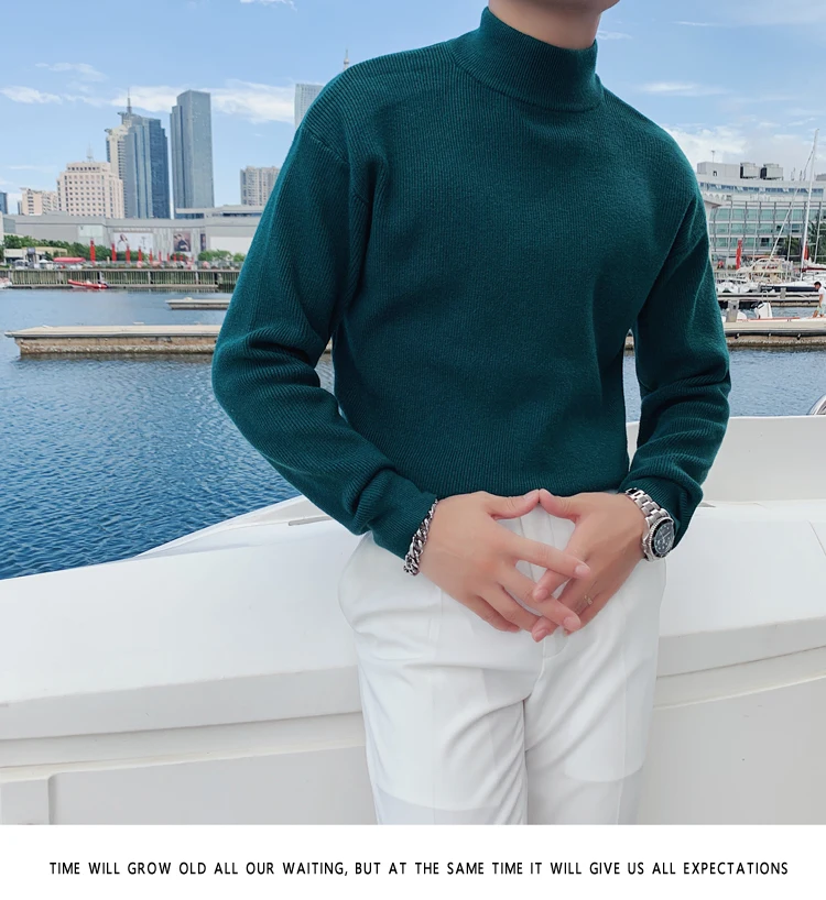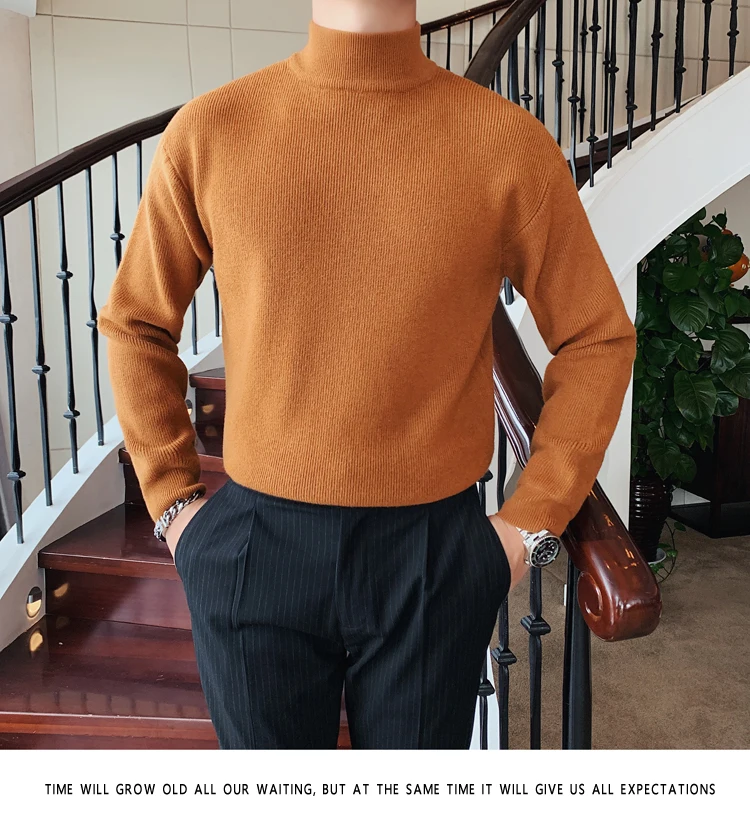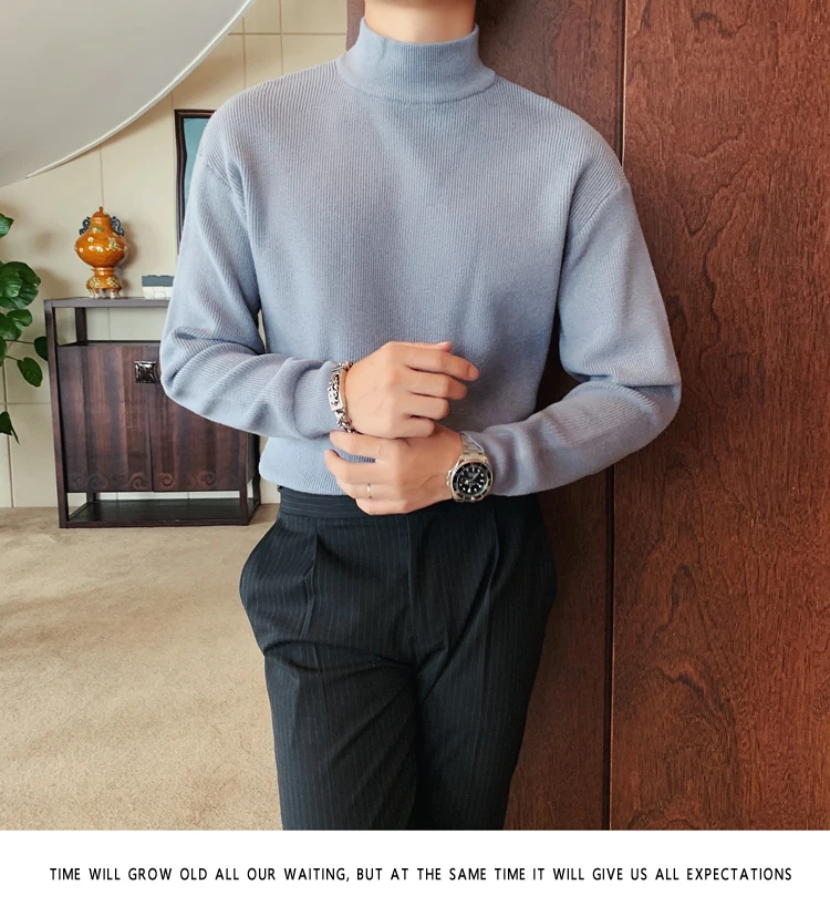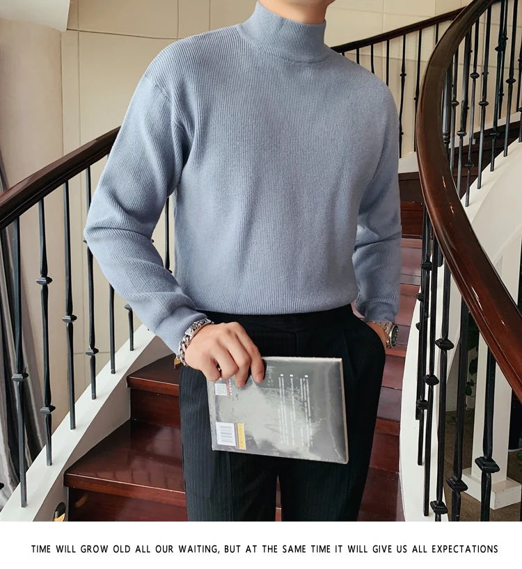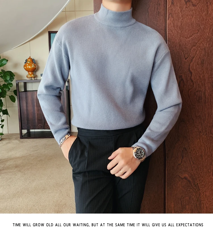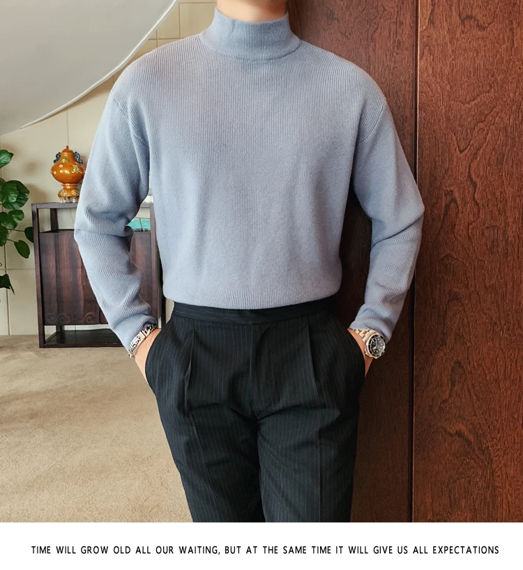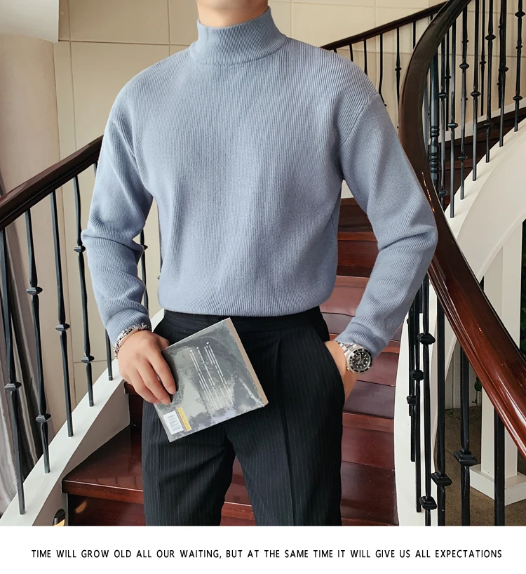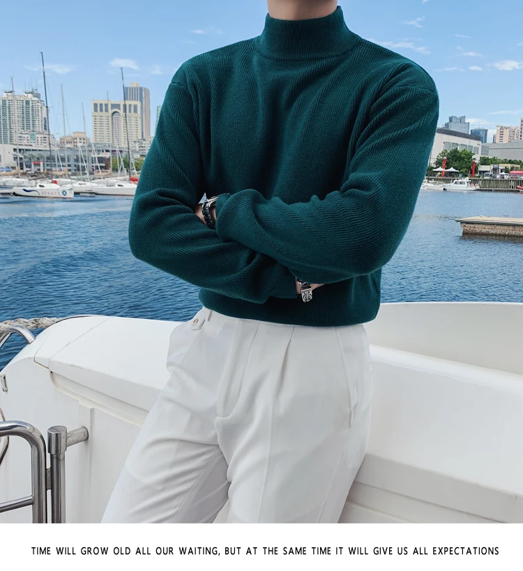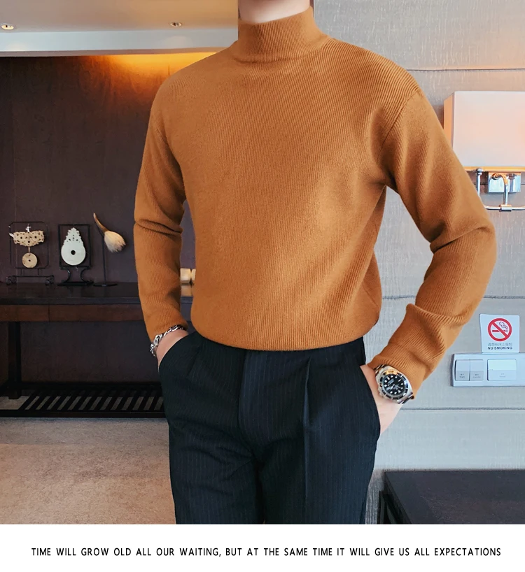 Black Turtlenecks Knitted Sweater Mens Pullover Autumn Mens Clothing Slim Fit Bottoming Shirts Elegant Mens Jumper Stylish White