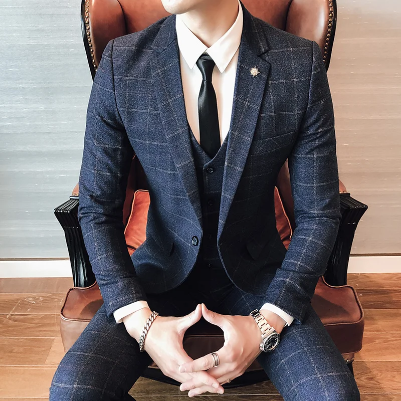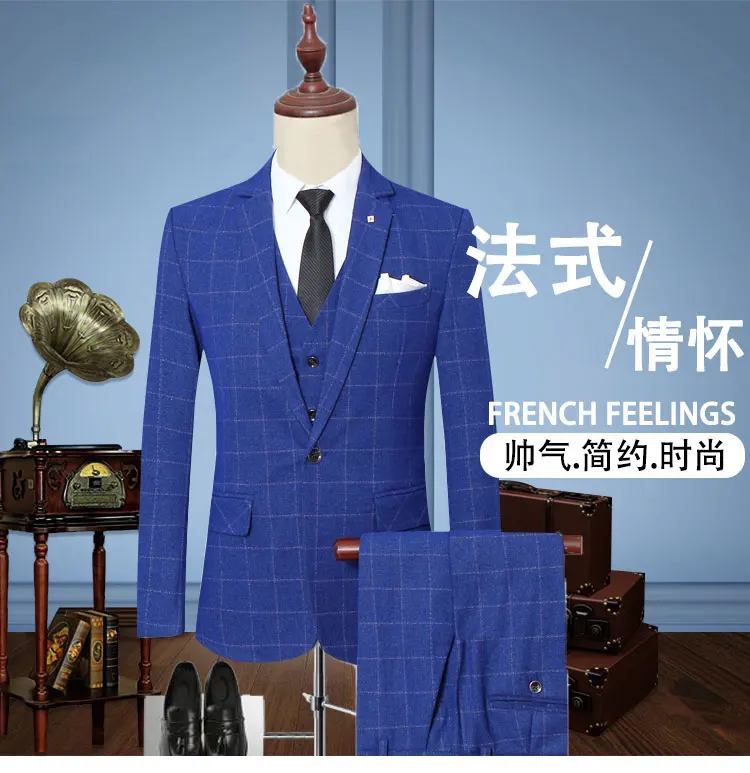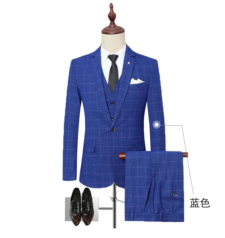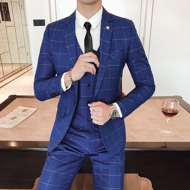 Blazers Male High End Custom British Plaid Wedding Dress Groom Large Size Suit 3 Piece Set Suit Pants Vest Jacket Trousers S-5XL