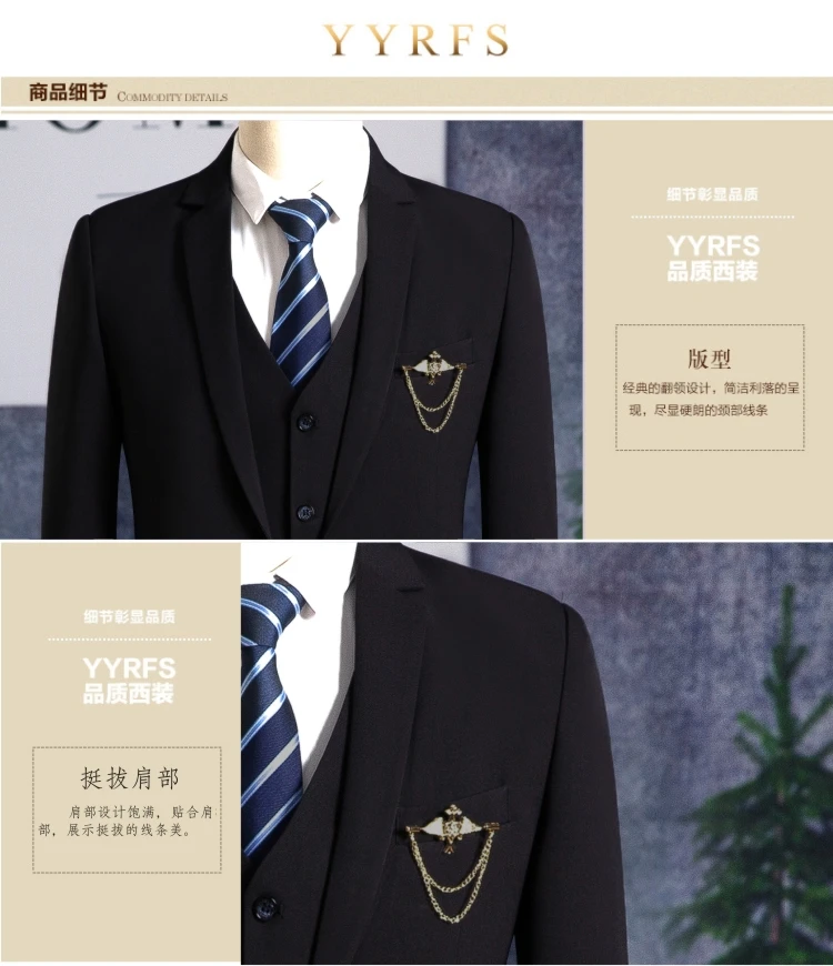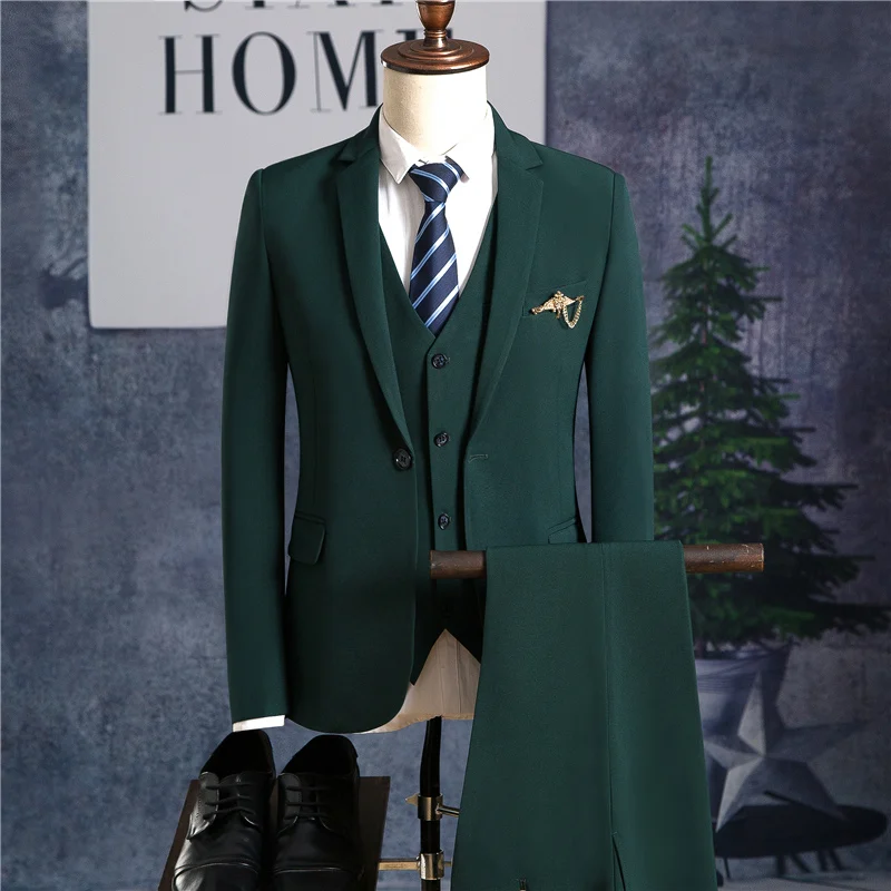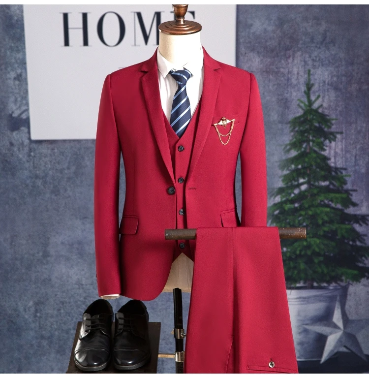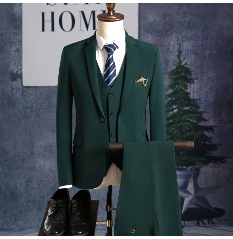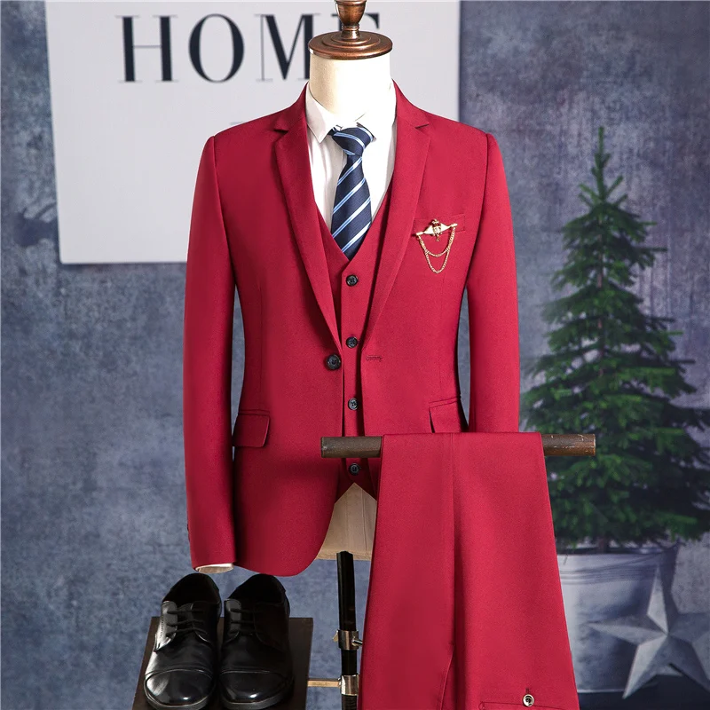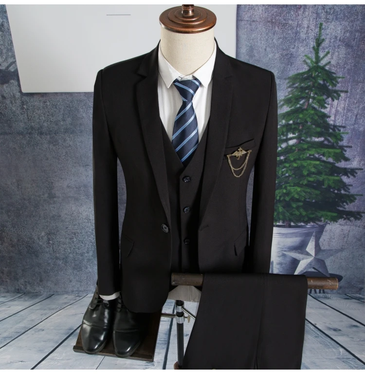 Blazers Pants Vest Sets / Vogue Pop Men’s Casual Business Dress Suit Bridegroom Wedding Coat Trousers Waistcoat Jackets Coat