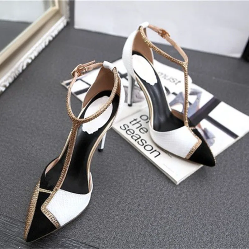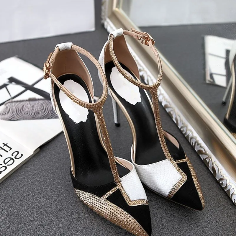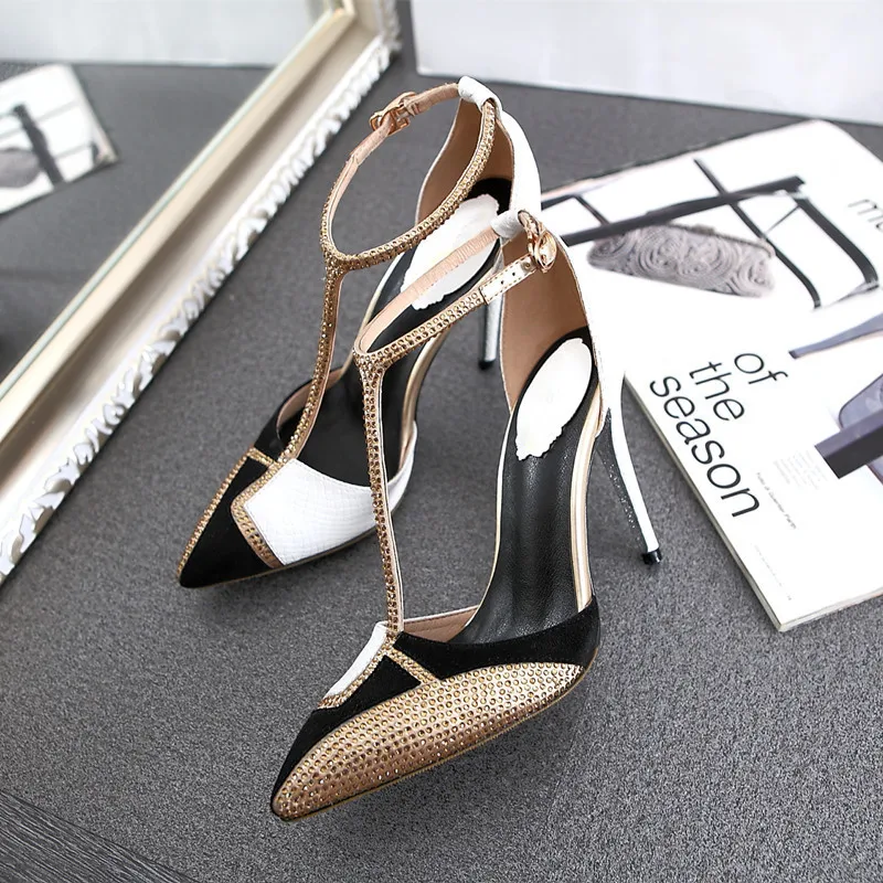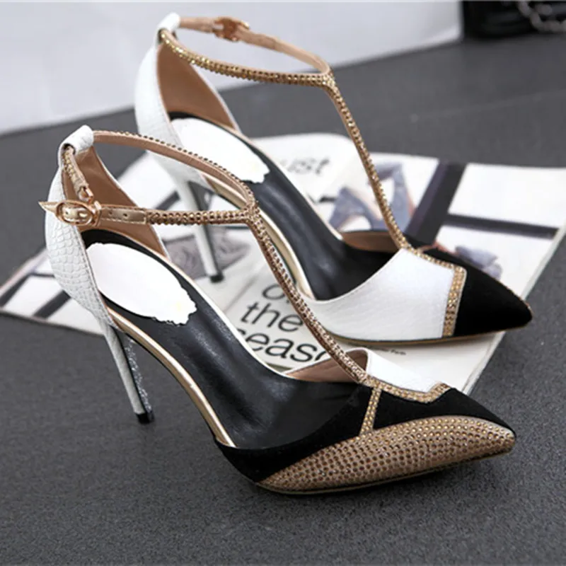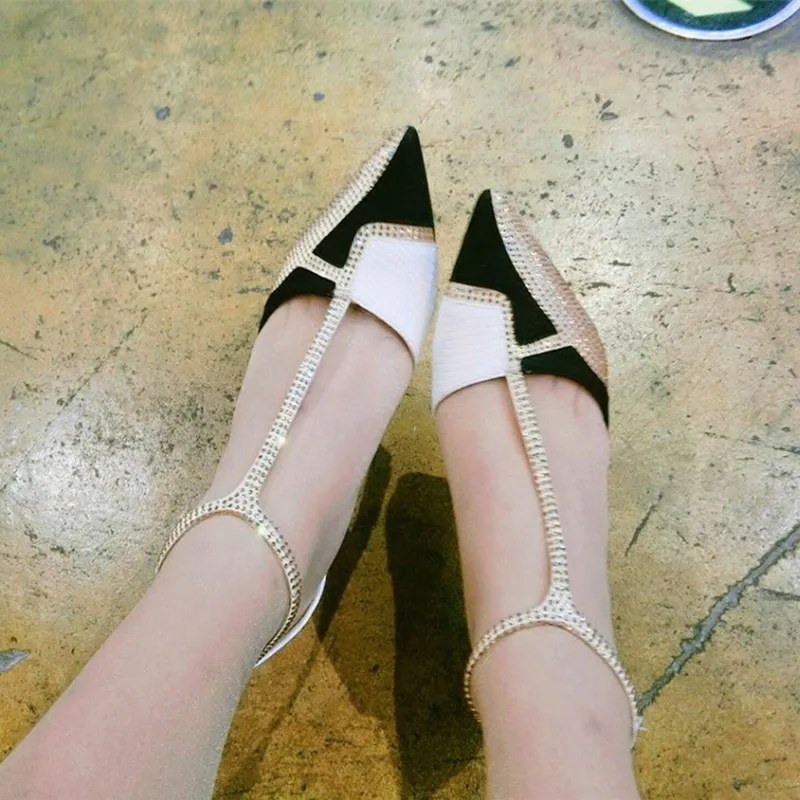 Bling Rhinestone Sandals Women Color Block Summer Shoes Woman Fashion Pointed Toe High Heels Sexy Hollow Pumps Ladies Shoes
