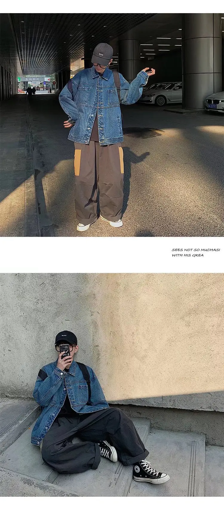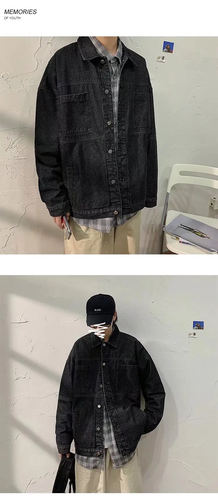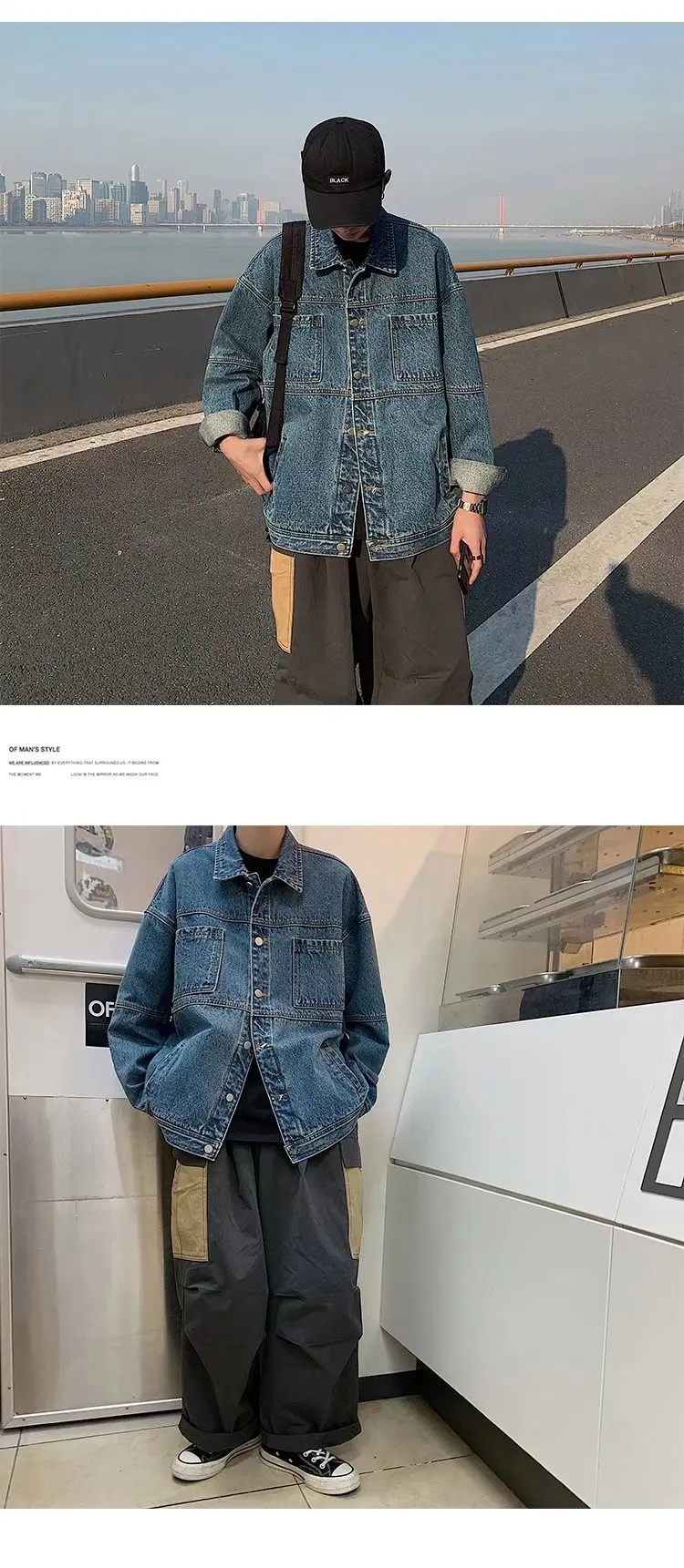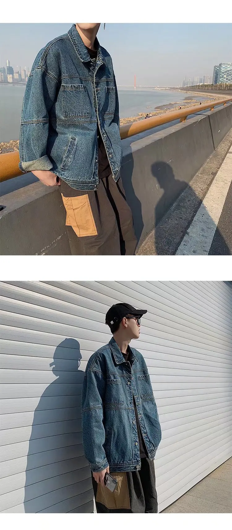 Blue Black Denim Jacket Men Fashion Retro Pocket Denim Jackets Mens Streetwear Loose Hip Hop Bomber Jacket Men Outwear M-2XL