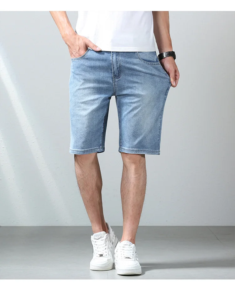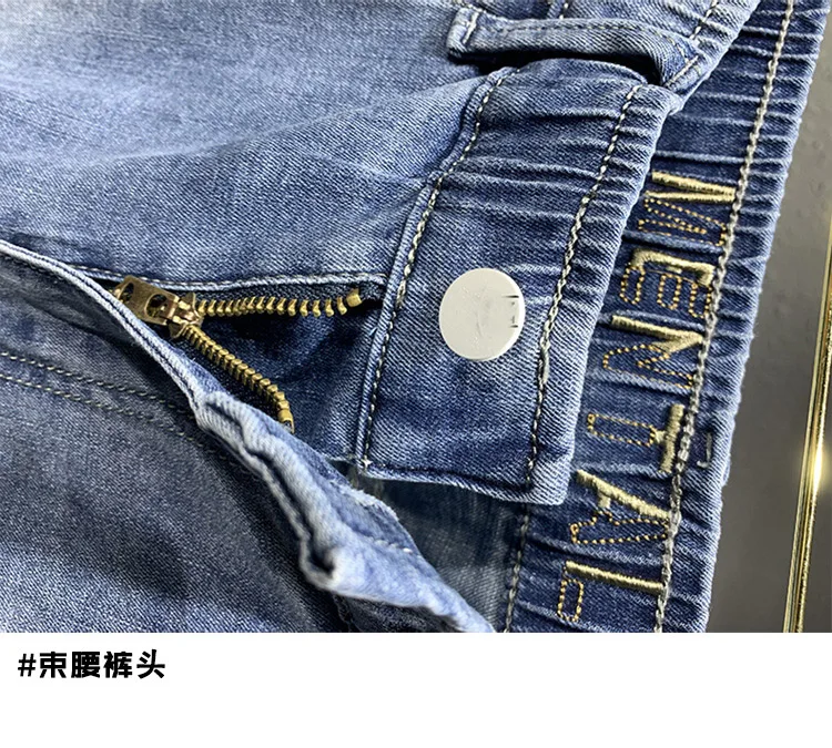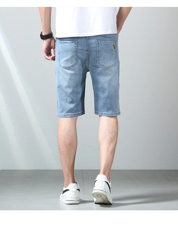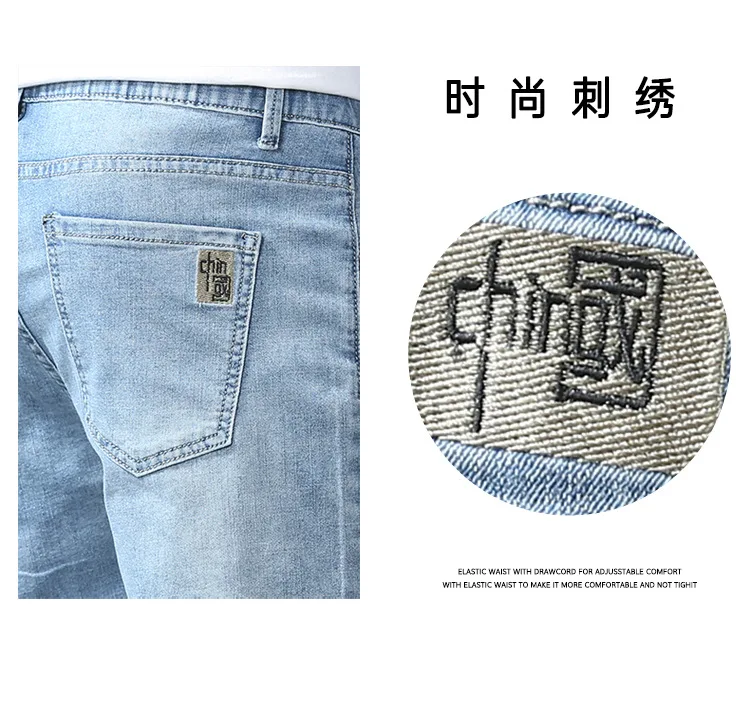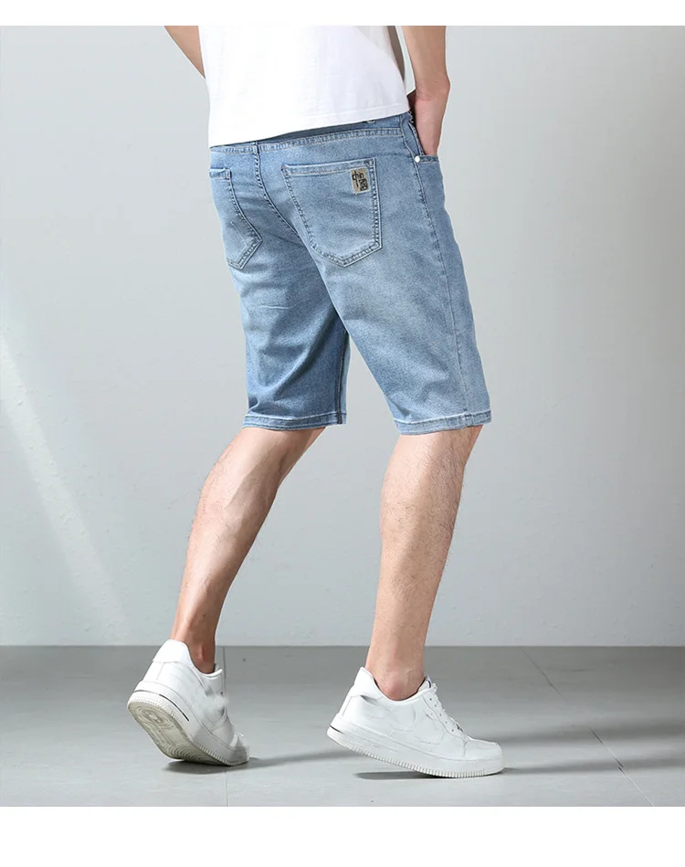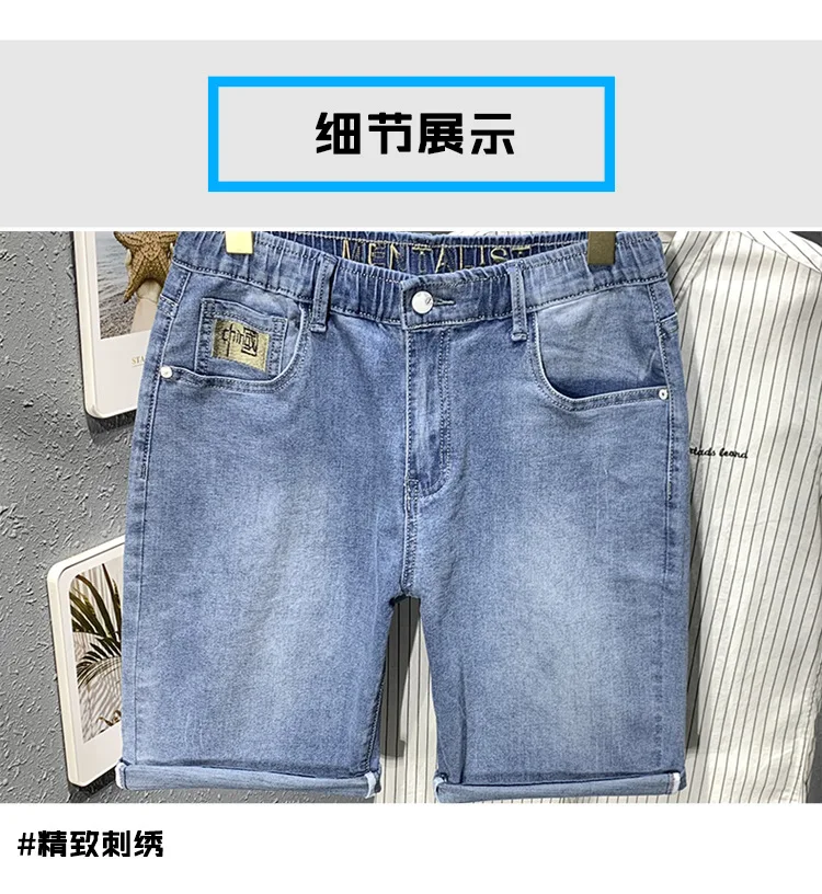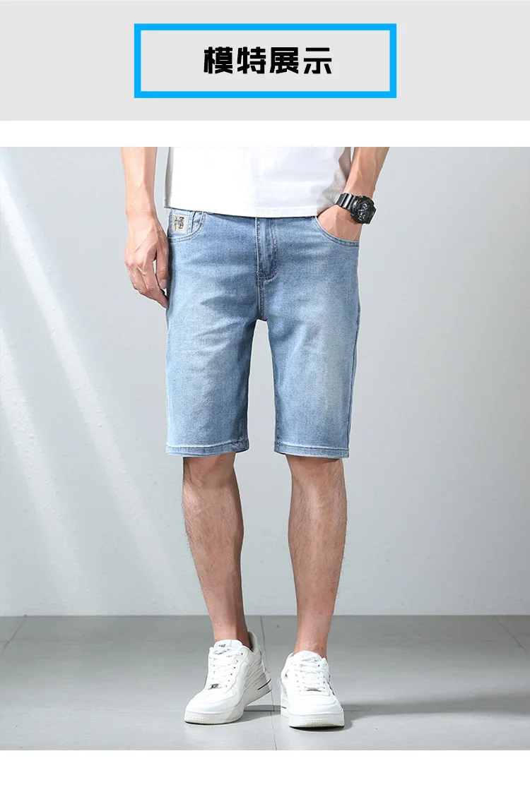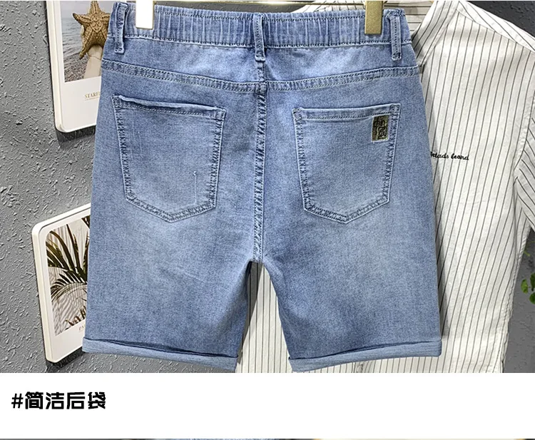 Blue plus size denim shorts men’s summer thin section knee length jeans Large Size casual pants 7XL 6XL 5XL 160KG