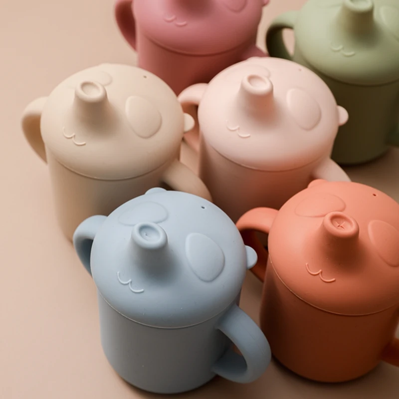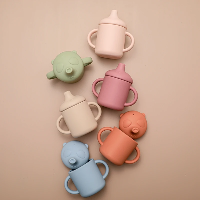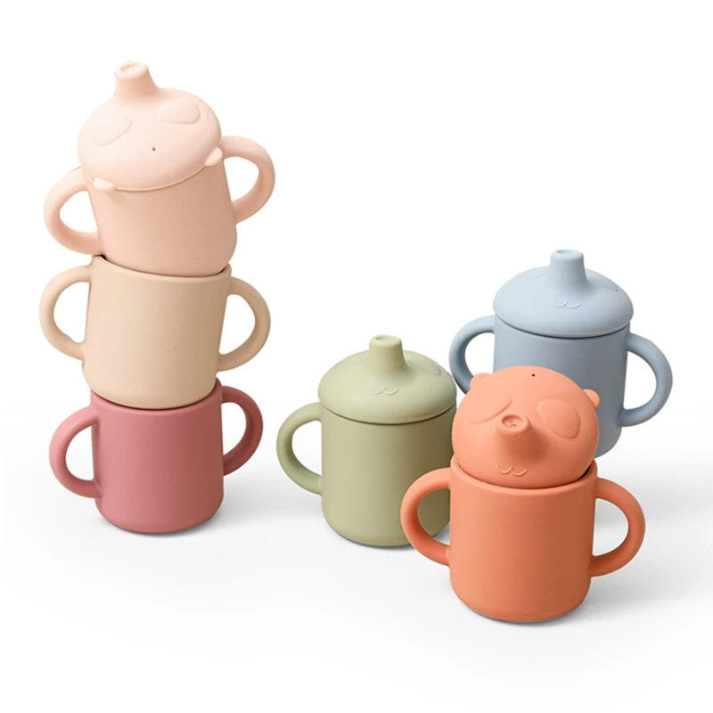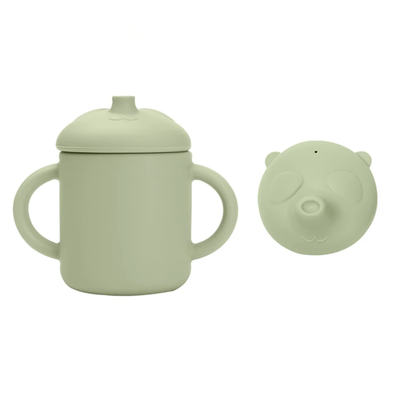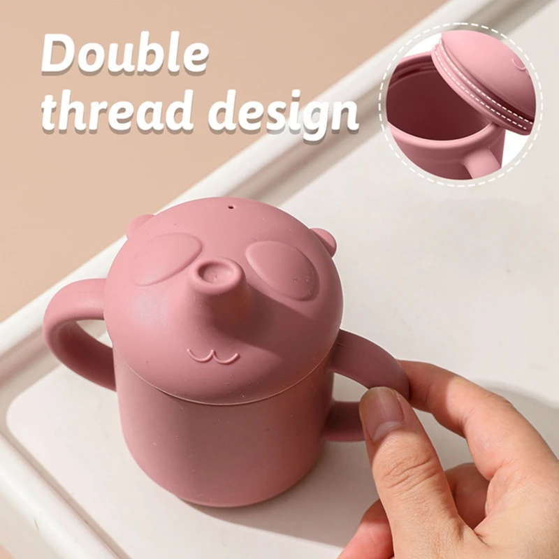Bopoobo 1Pc Silicone Cup Straw Cup Panda Feeding Bottle BPA Free Learning Cups Leakproof Silicone Tableware Toddler Water Bottle