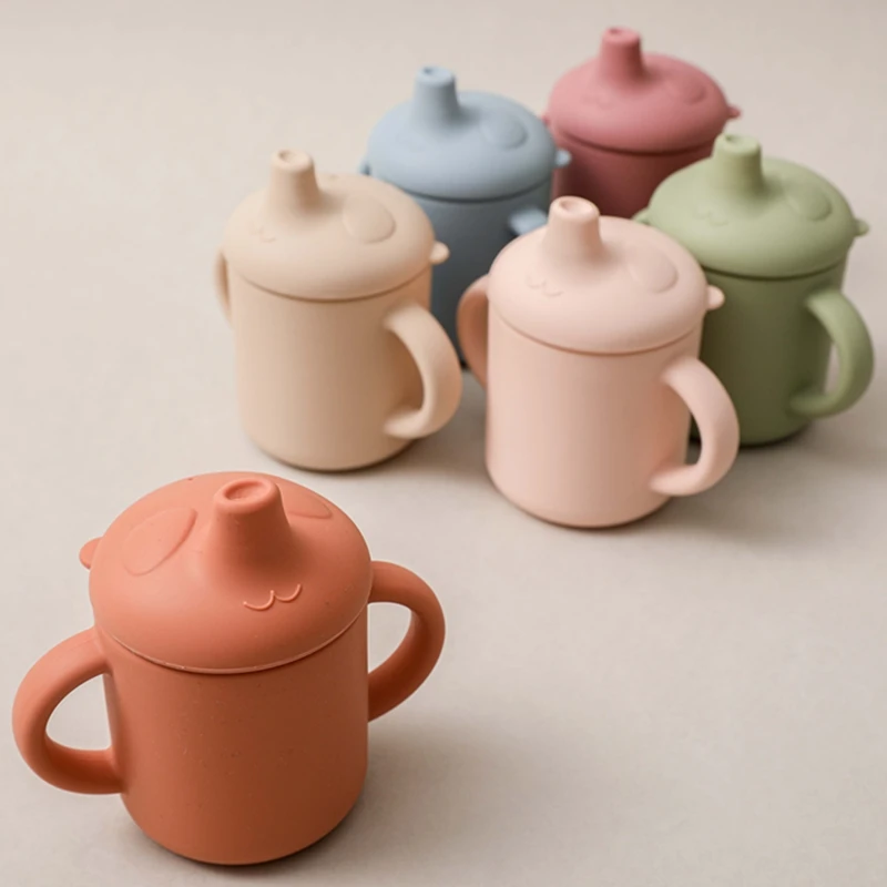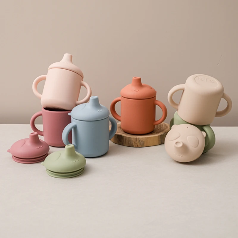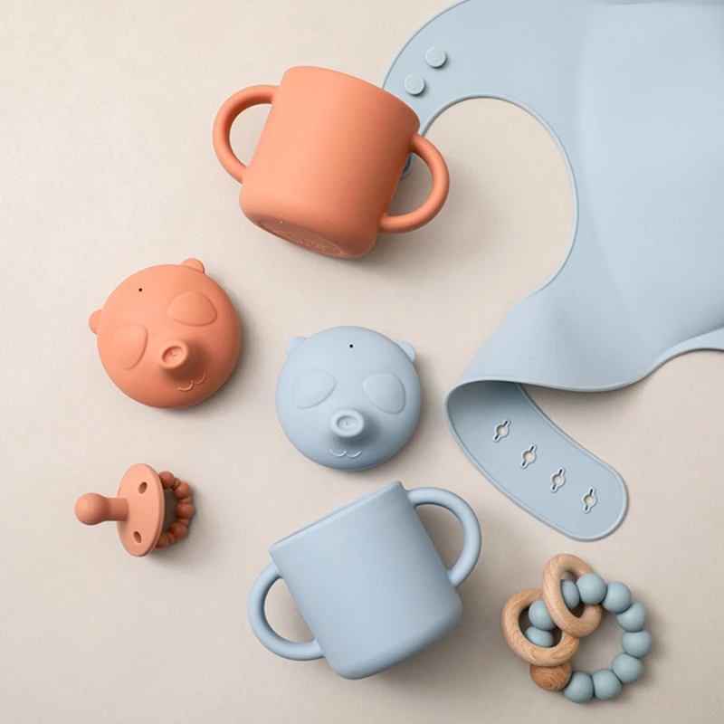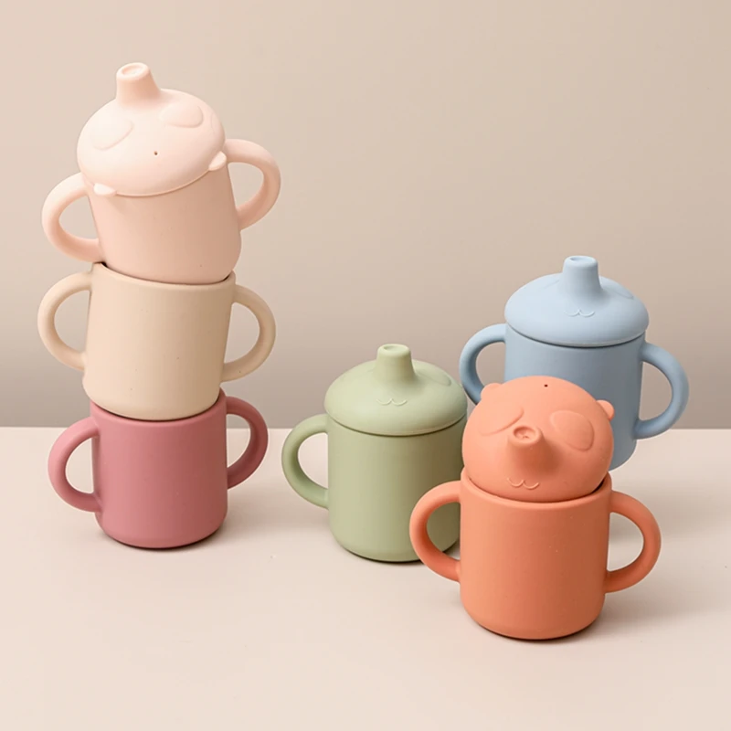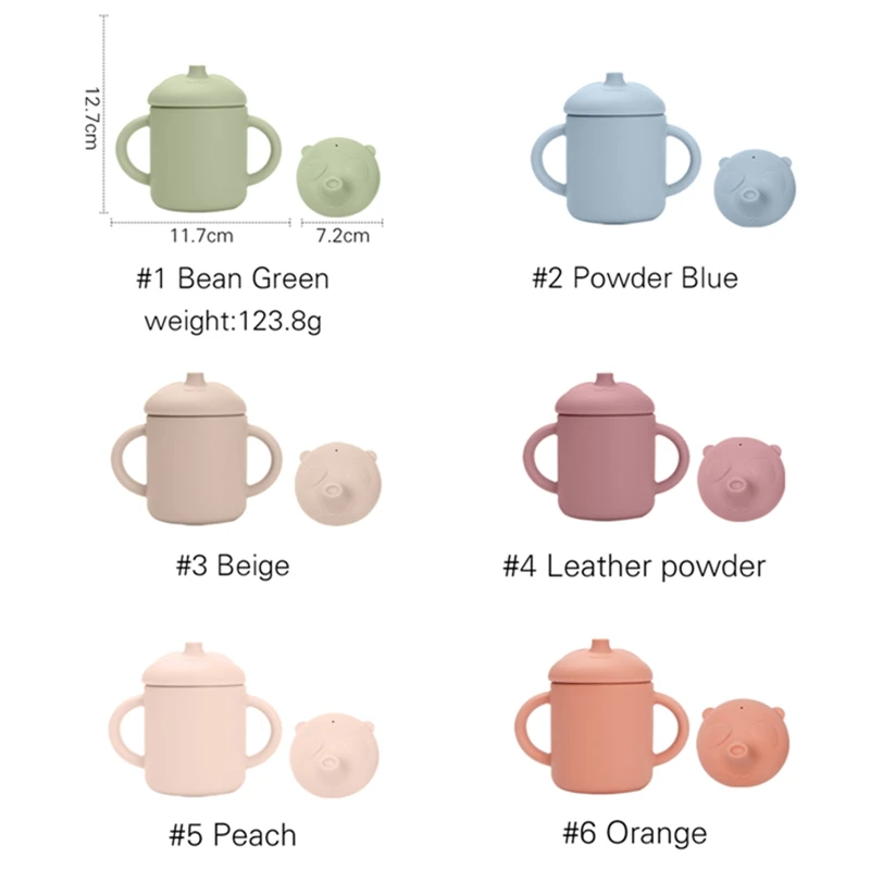 Bopoobo 1Pc Silicone Cup Straw Cup Panda Feeding Bottle BPA Free Learning Cups Leakproof Silicone Tableware Toddler Water Bottle