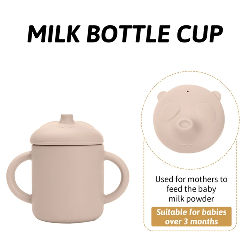 Material: Silicone Name: Silicone Panda Milk Bottle Cup Type: Soft Cleaning: Warm water Accept: Dropping/Whosales