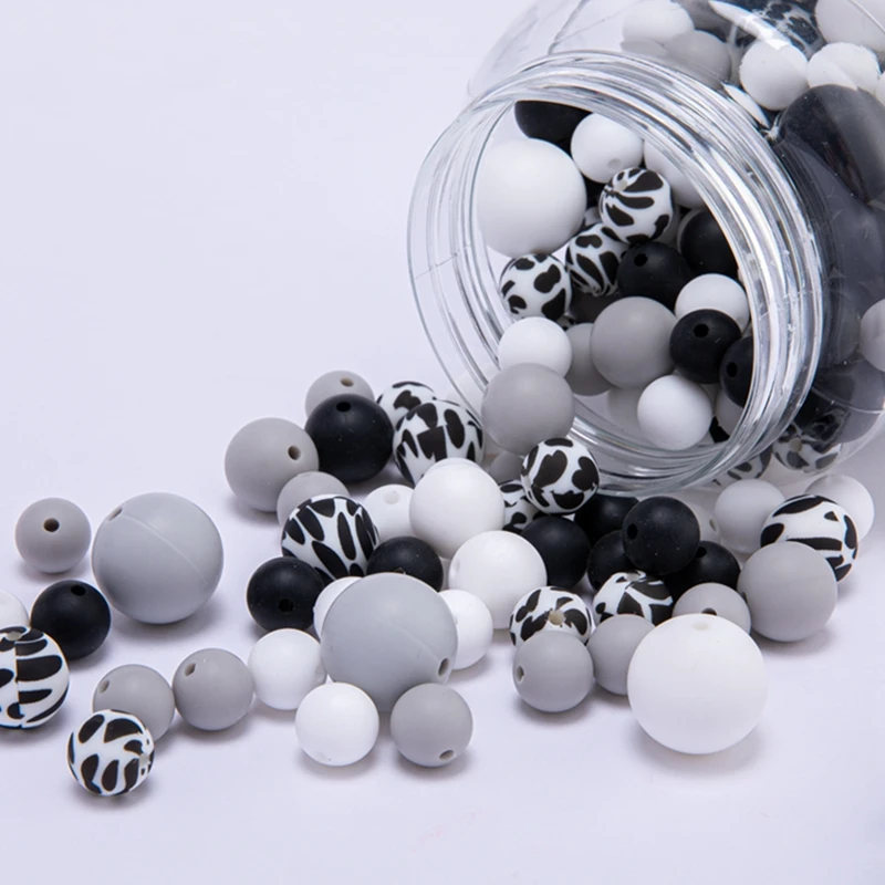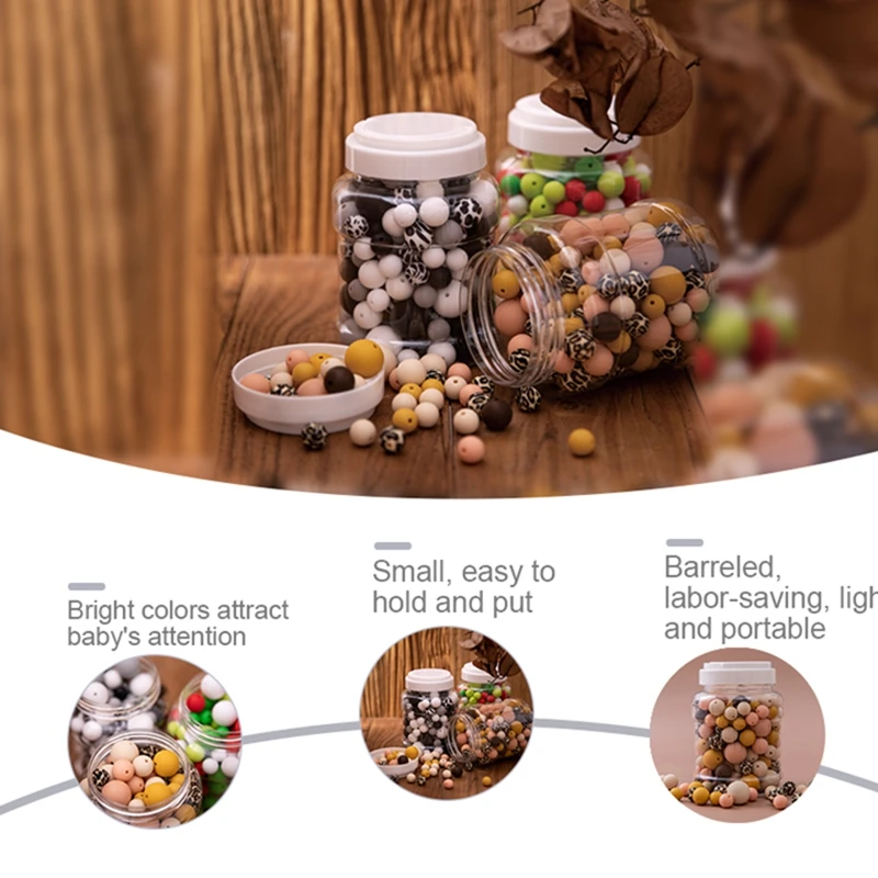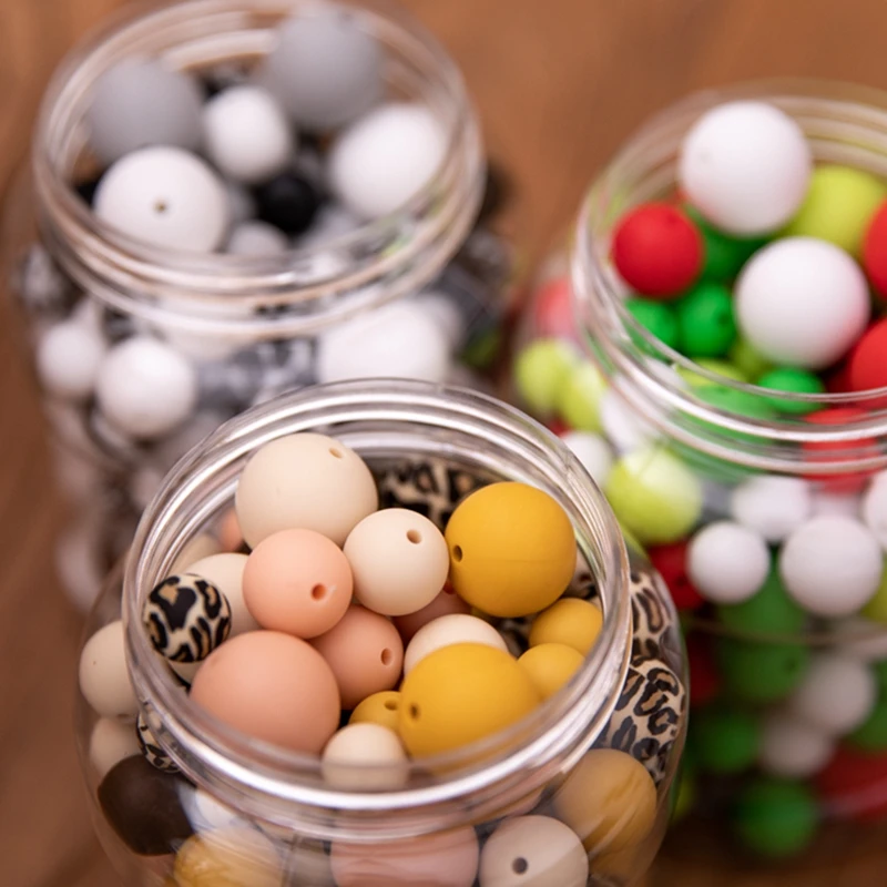 Bopoobo 200Pcs Silicone Beads Baby Teething Food Grade BPA Free Care Chewable Round Teethers for Diy Pacifier Chain Accessorise