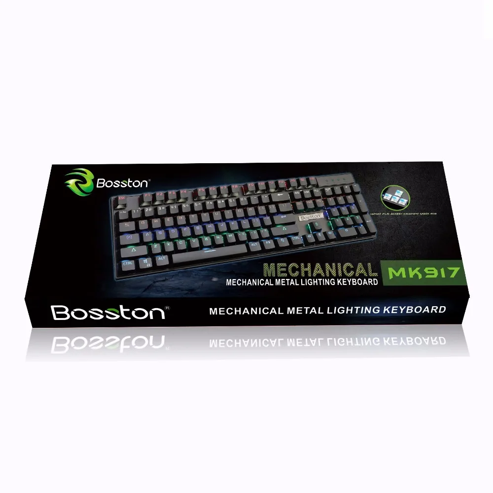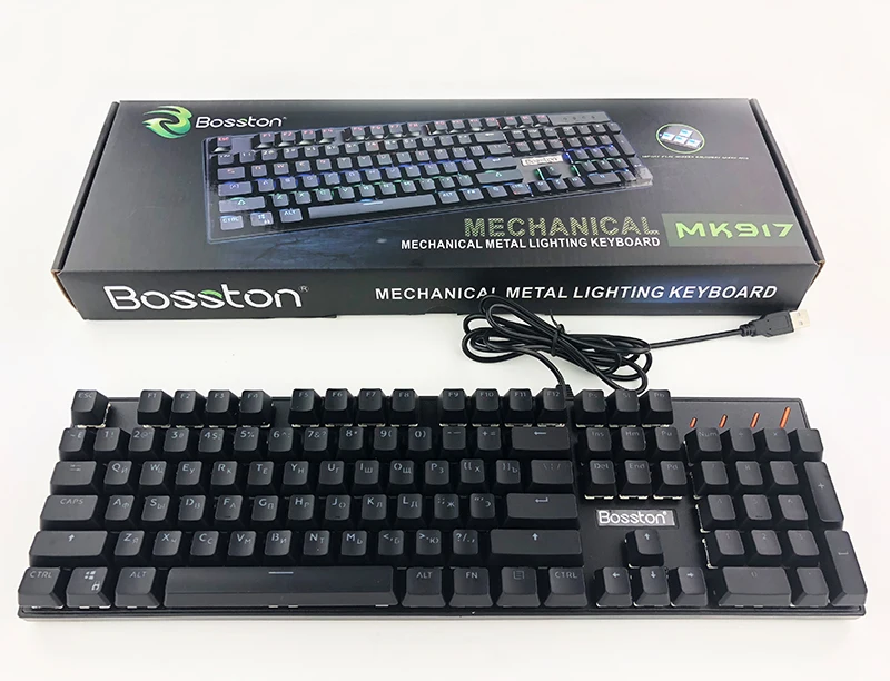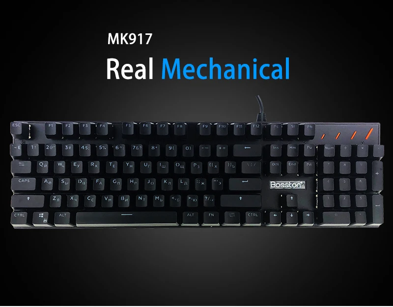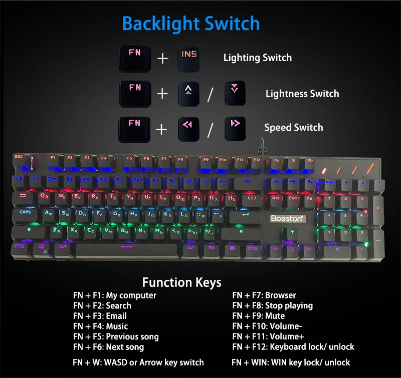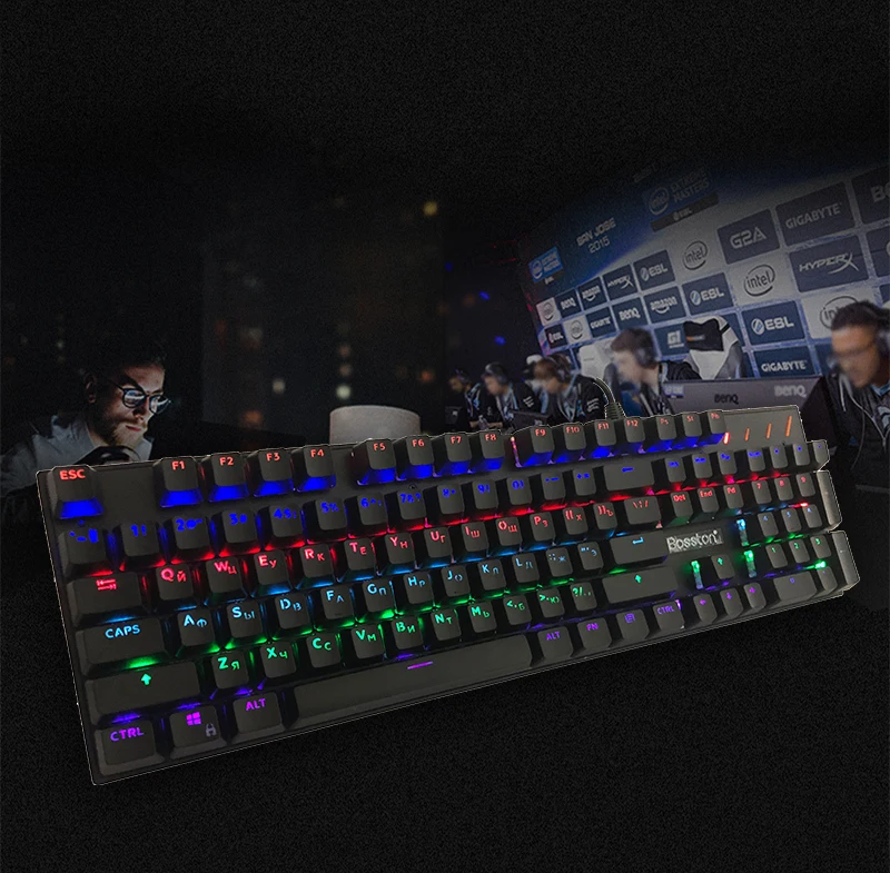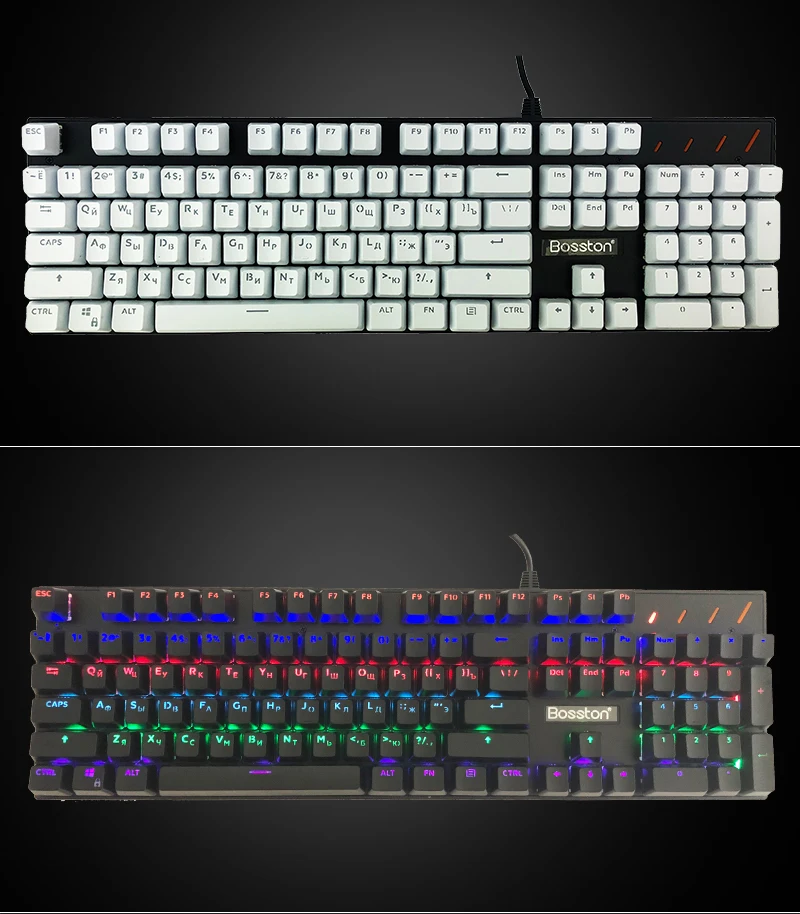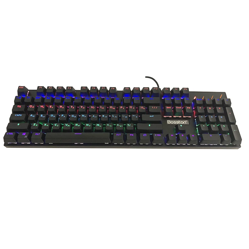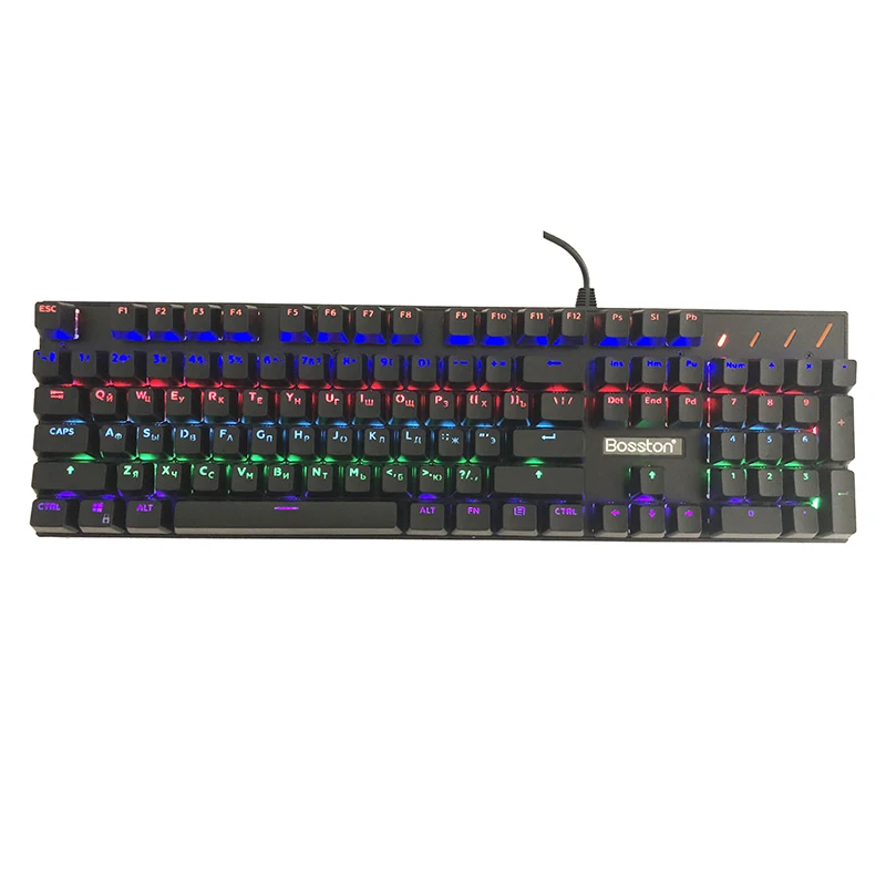 Bosston English Russian Gaming Mechanical Keyboard Anti-Ghosting Led Backlight Keyboards for PC Laptop 104 Keycaps Blue Switch