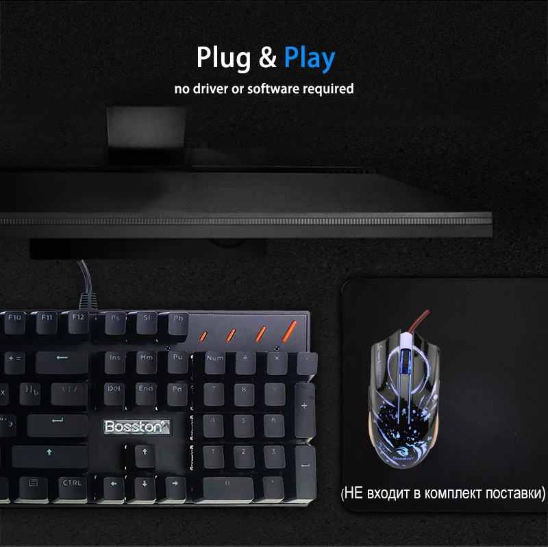 Bosston English Russian Gaming Mechanical Keyboard Anti-Ghosting Led Backlight Keyboards for PC Laptop 104 Keys Blue Switch