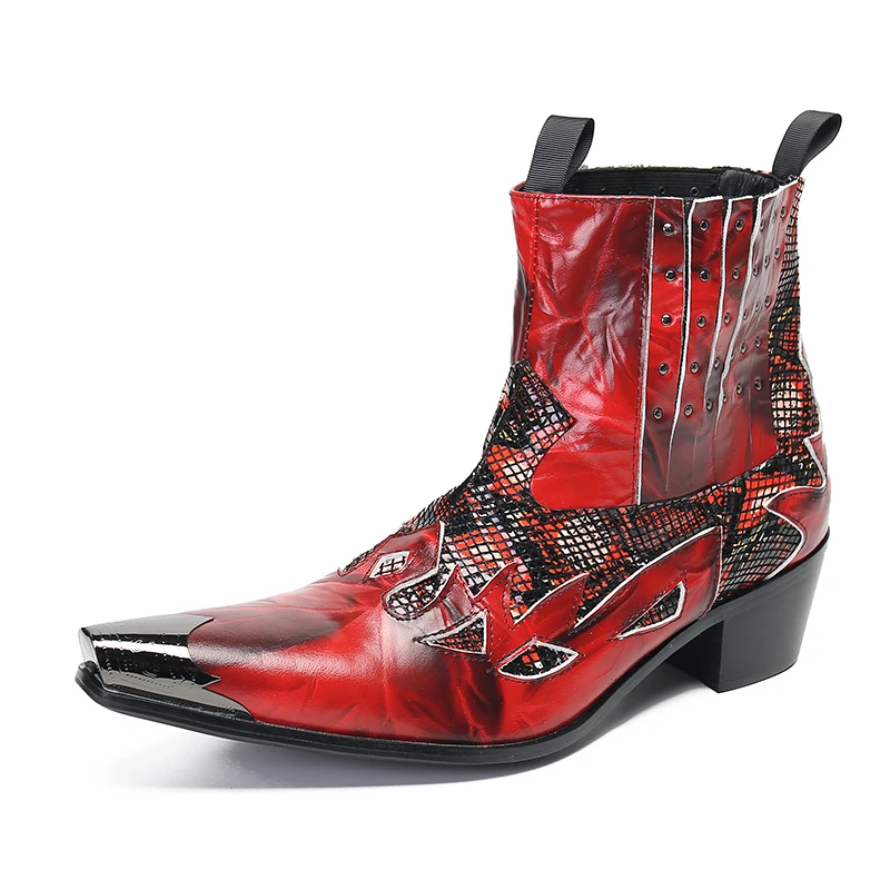 Botas Masculinas Mens Rain Boots Red Ankle Chelsea Boots Men Steel Toe Work Shoes Fashion Cow Leather Military Boots Party