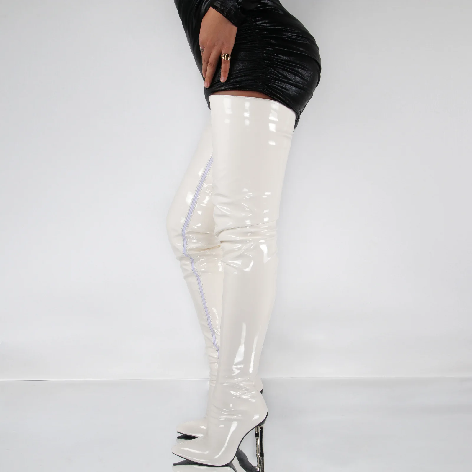 Botas Overknee Long Stiletto Leather Women Thigh High Crotch Boots Pointed Toe Sexy Ladies High Heel Runway Trendy Shoe Woman