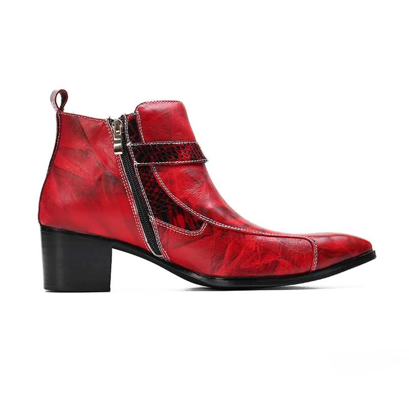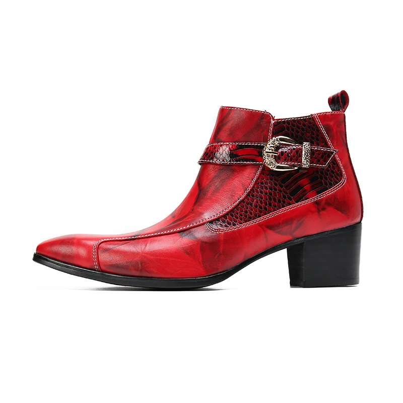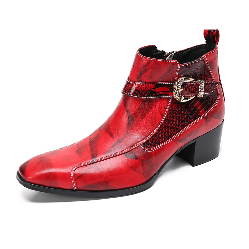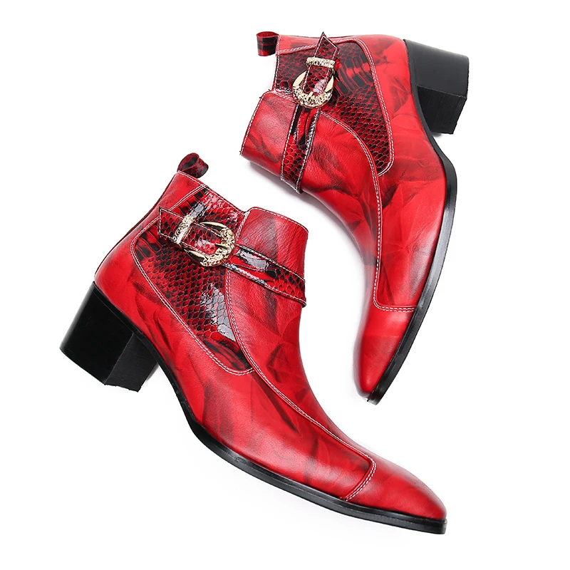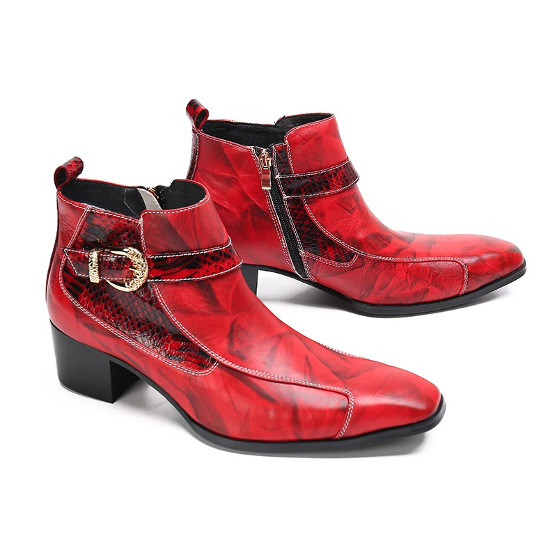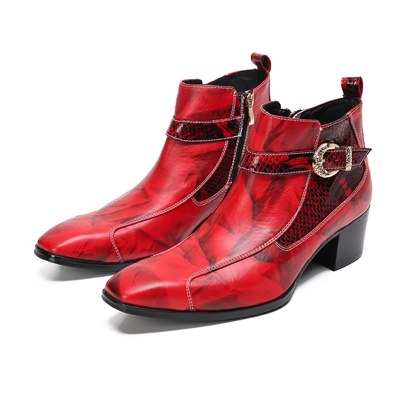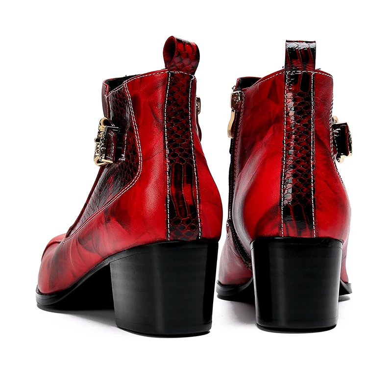 Botines Chelsea Men High Heel Ankle Boots Red Black Genuine Leather Cowboy Boots Buckle Dress Party Military Shoes Man Size 47