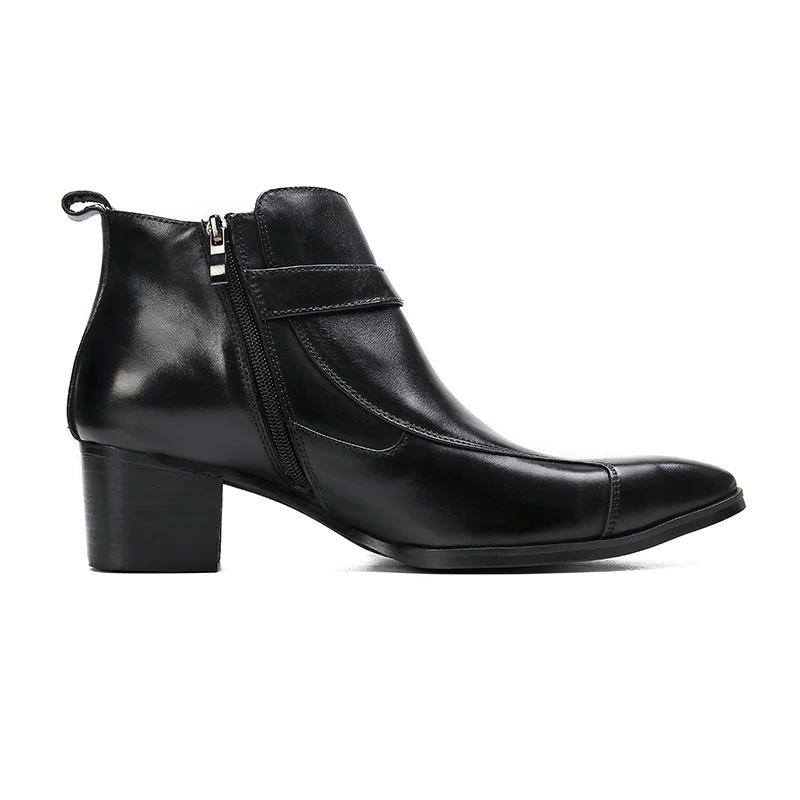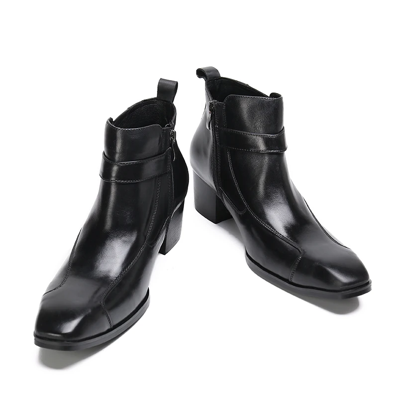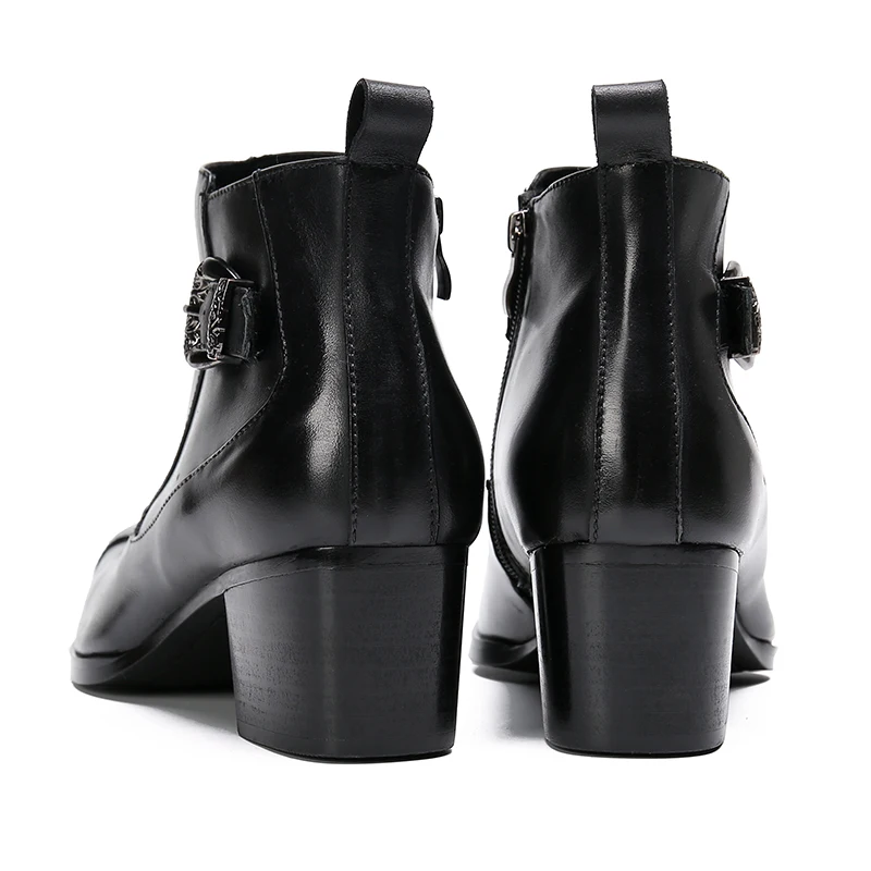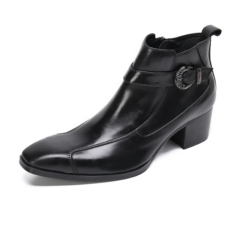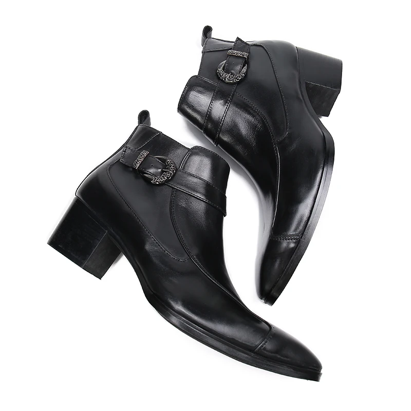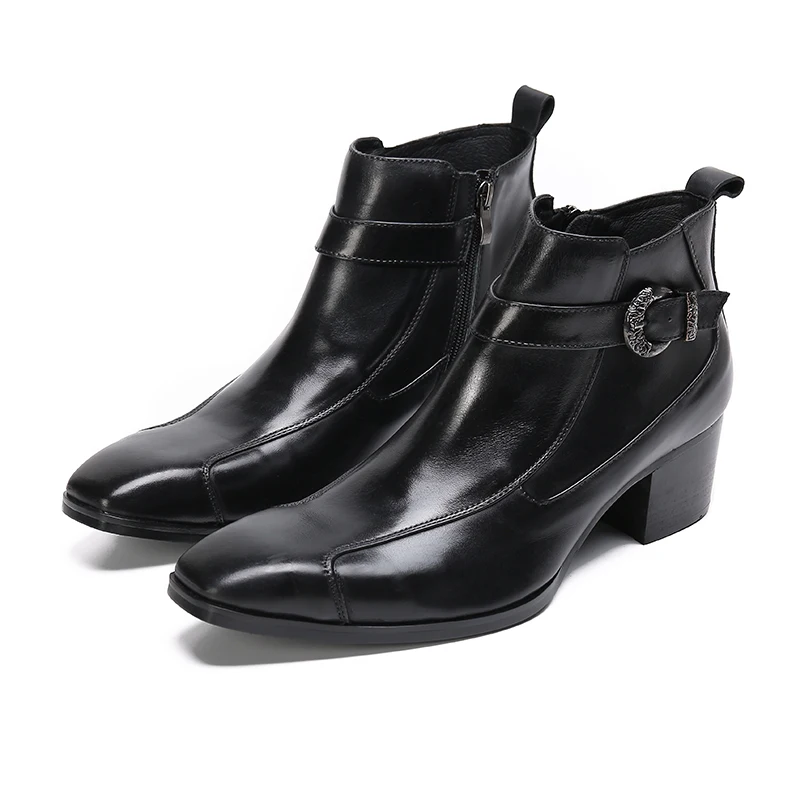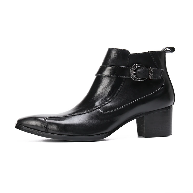 Botines Chelsea Men High Heel Ankle Boots Red Black Genuine Leather Cowboy Boots Buckle Dress Party Military Shoes Man Size 47