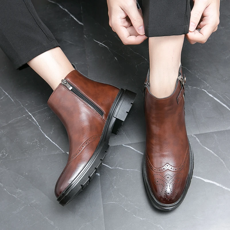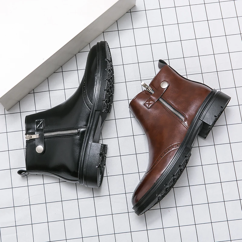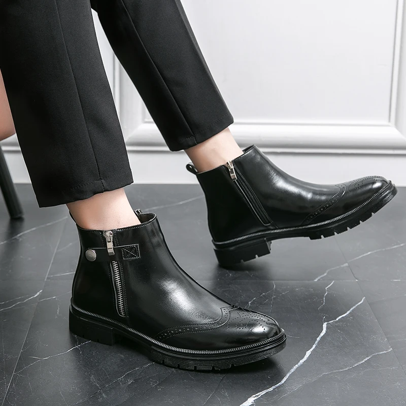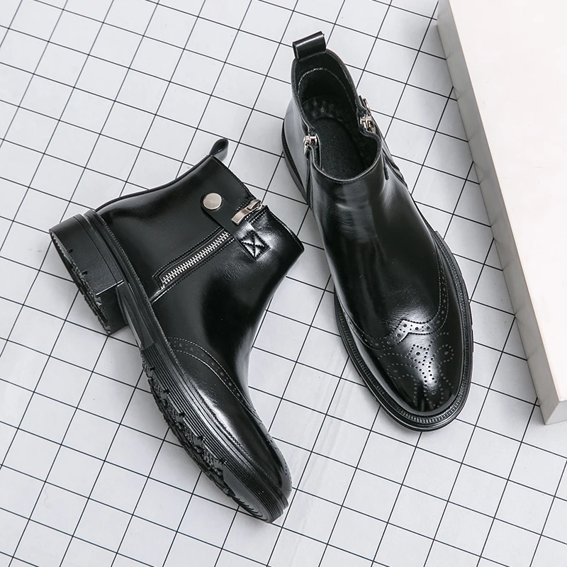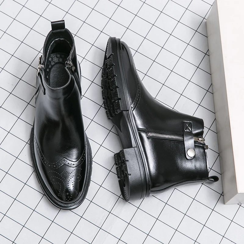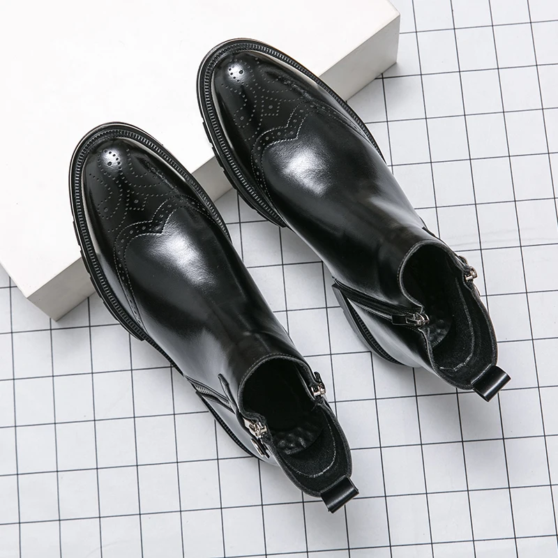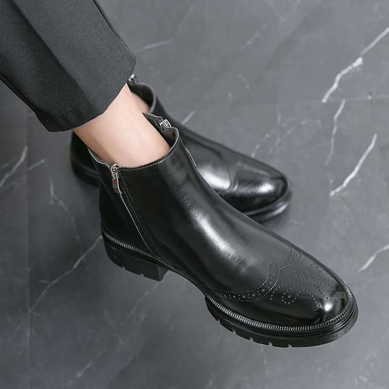 Bottes Chelsea Man Ankle Boot Elevator Men Leather Casual Business Shoe Black High Top Male Platform Boots Zipper Plus Size 46