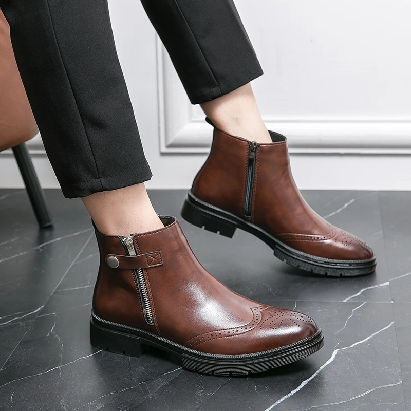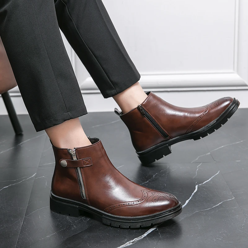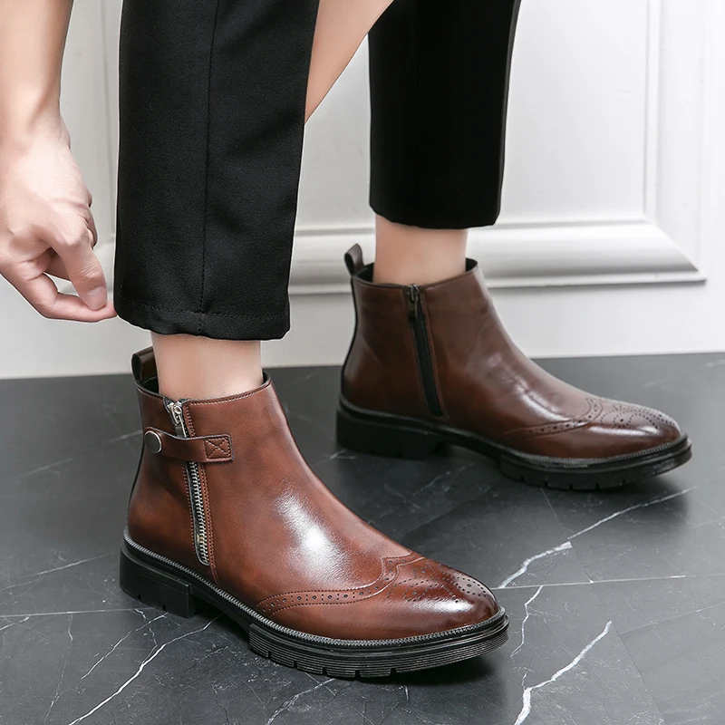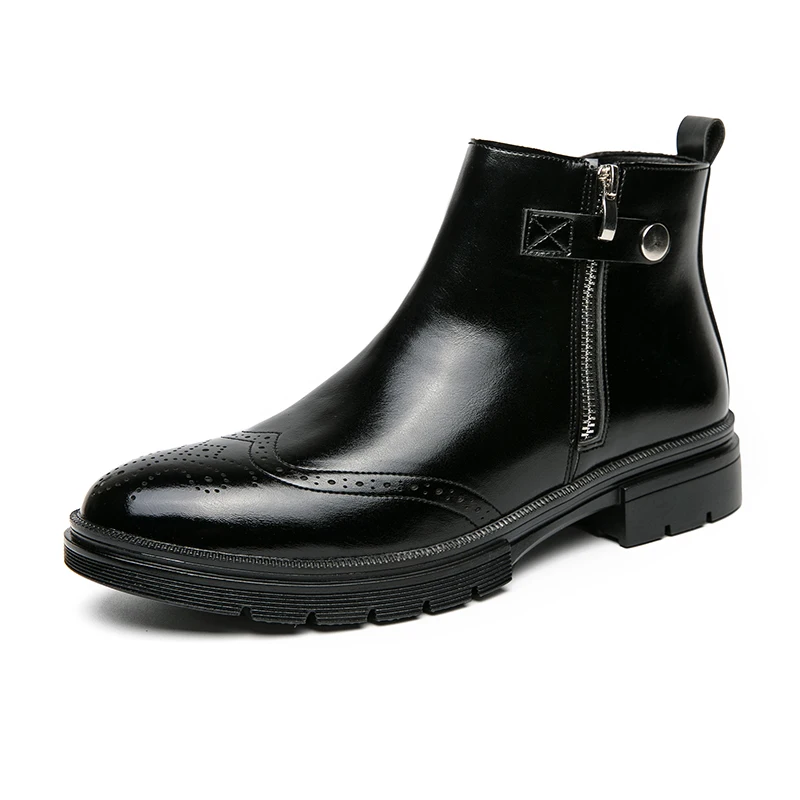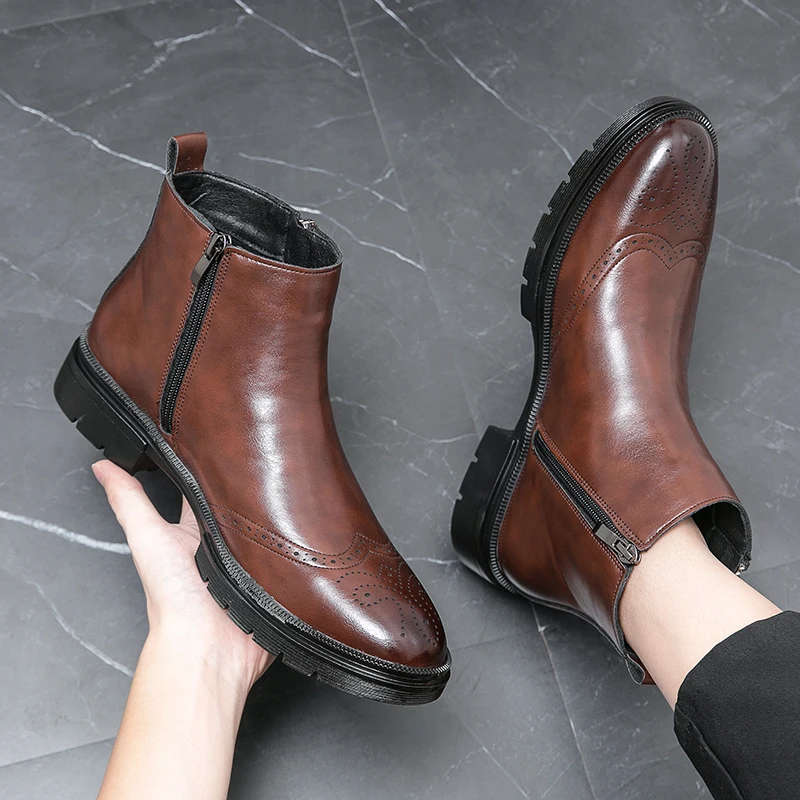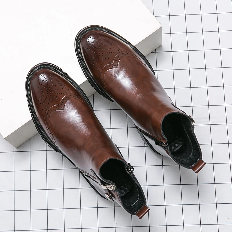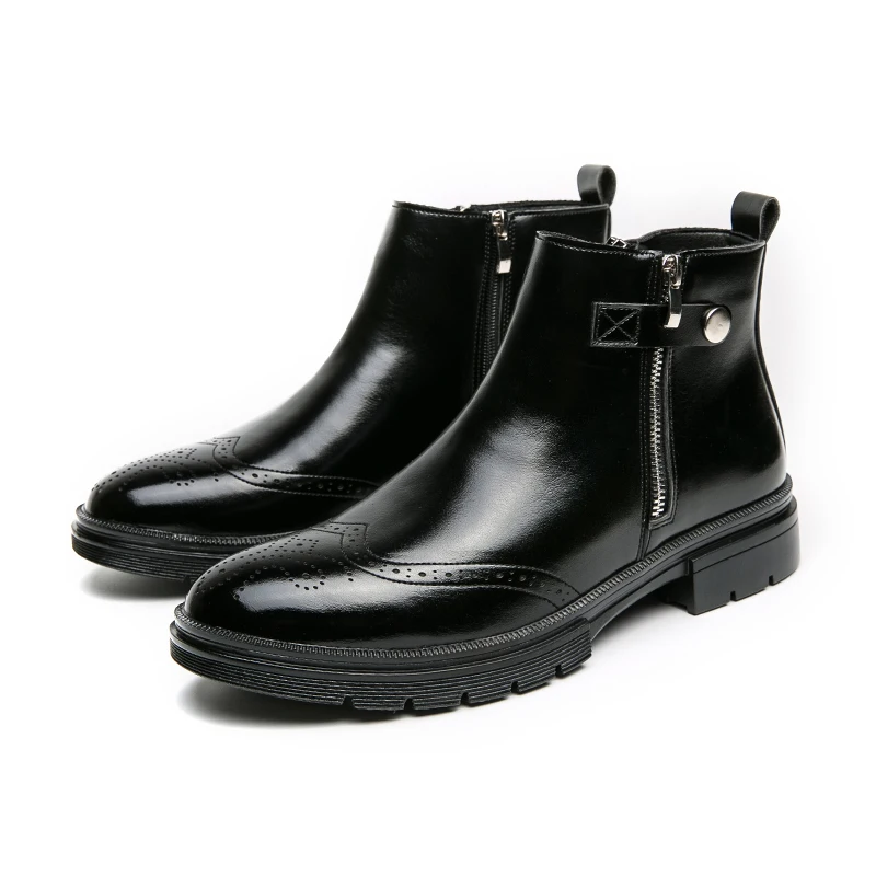 Bottes Chelsea Man Ankle Boot Elevator Men Leather Casual Business Shoe Black High Top Male Platform Boots Zipper Plus Size 46