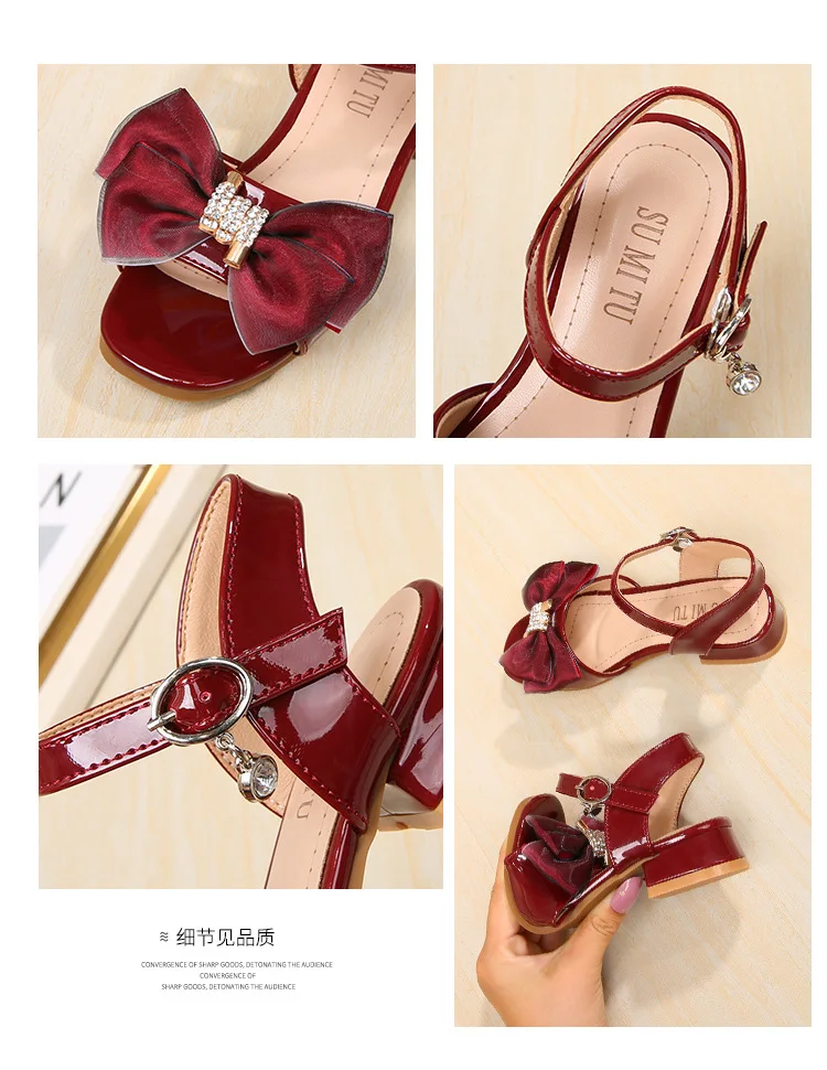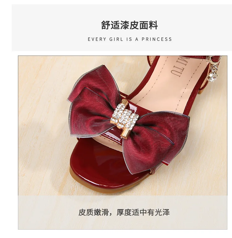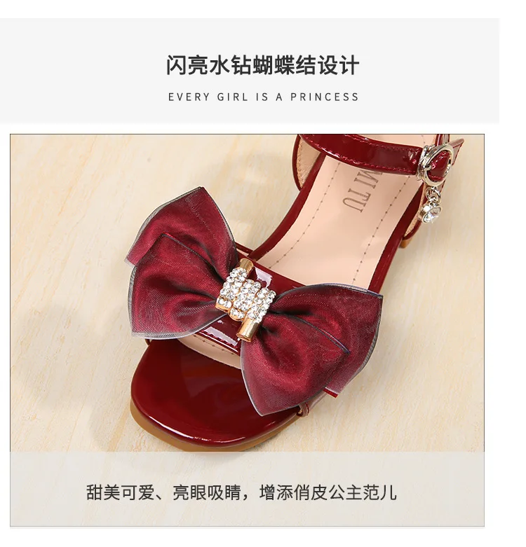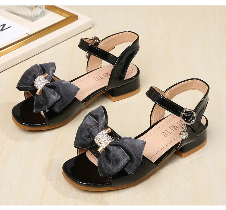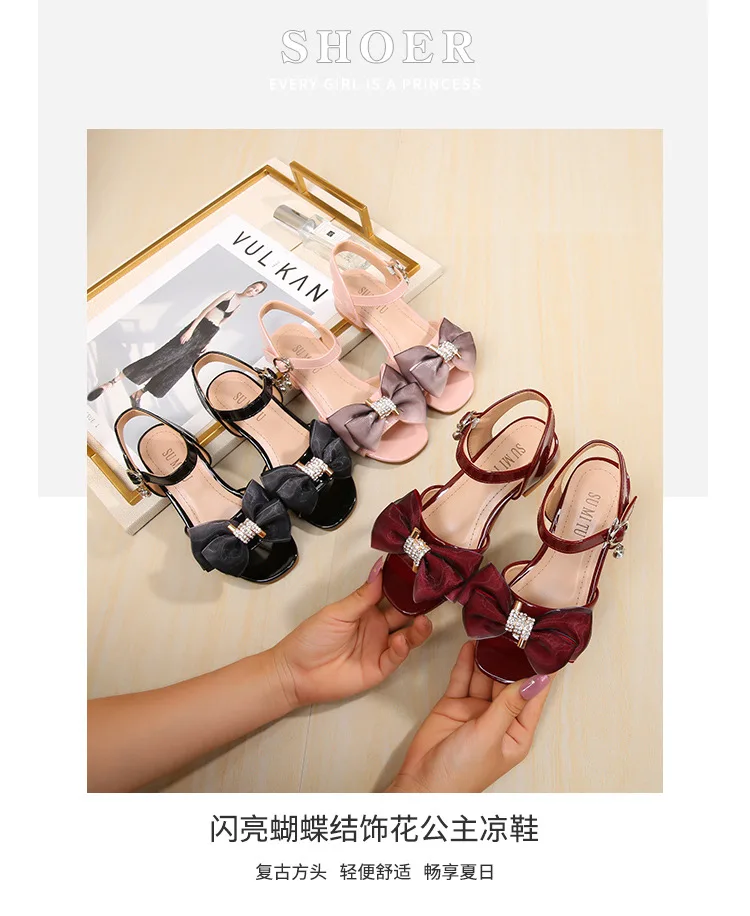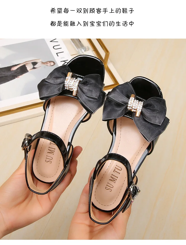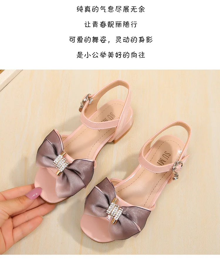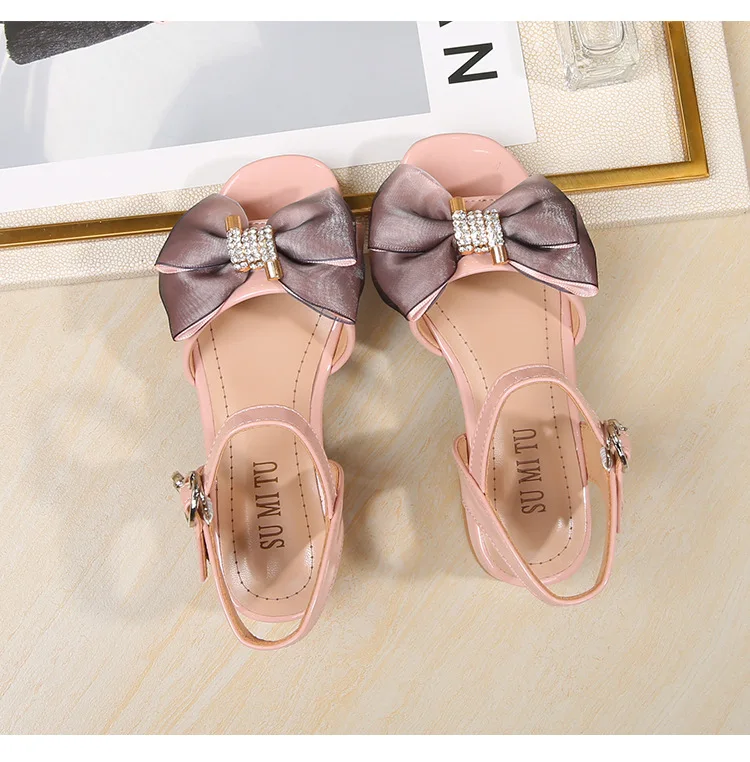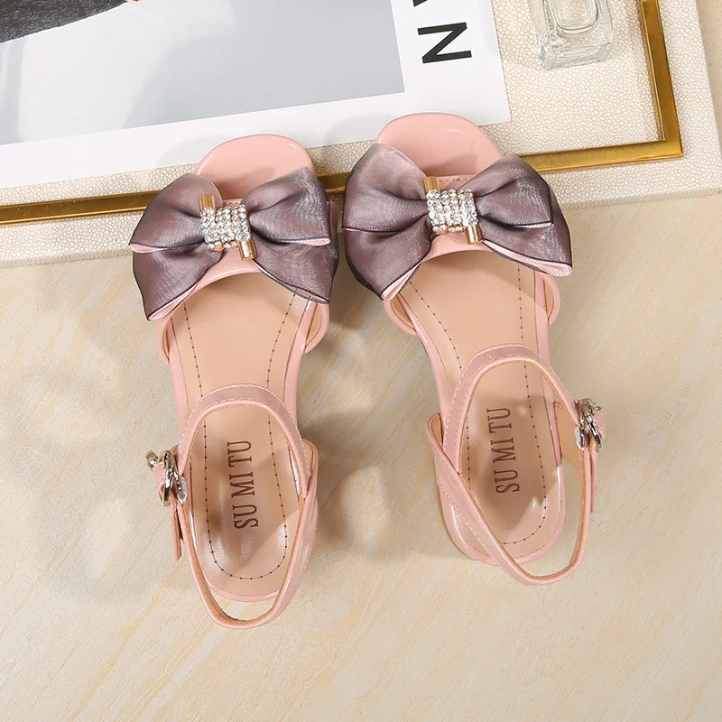 Bowknot Girls Sandals Sweet Rhinestone Open Toe Sandals Children Princess Shoes Hook Loop Kids Beach Shoes Sandalias Sandalia