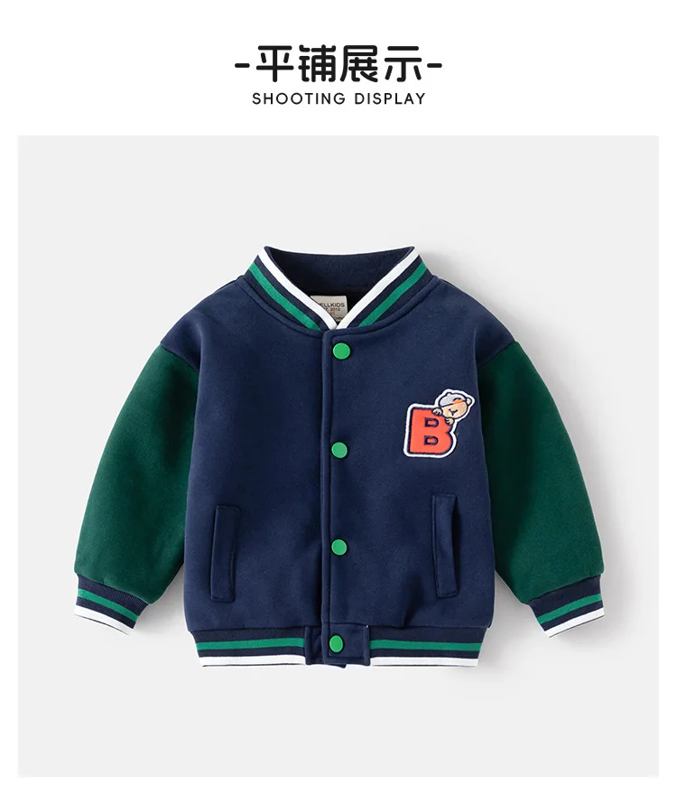 Boys’ Baseball Jacket for Fall & Winter 2023 with Zipper Sweatshirts Thickened Fleece Lining Children’s Clothing