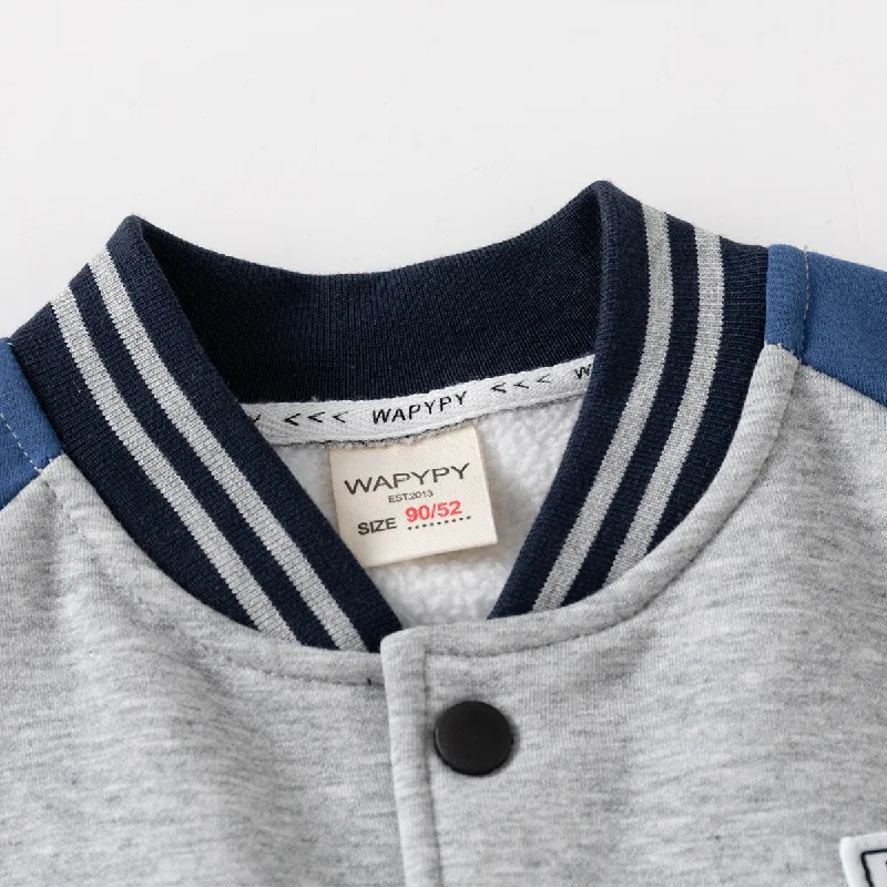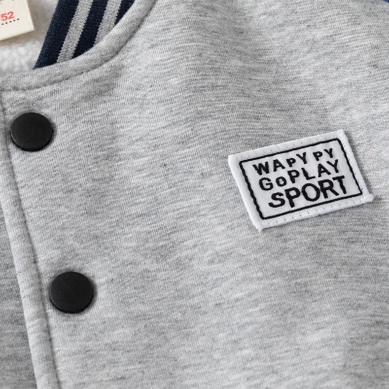 Boys’ Baseball Jacket Thickened Button-up Child Sweatshirt V-neck Color-blocked Kids Coat