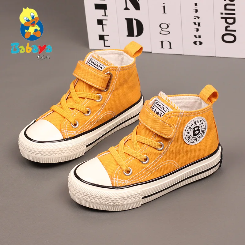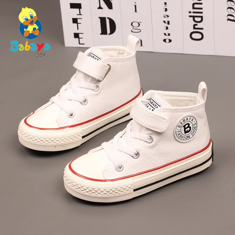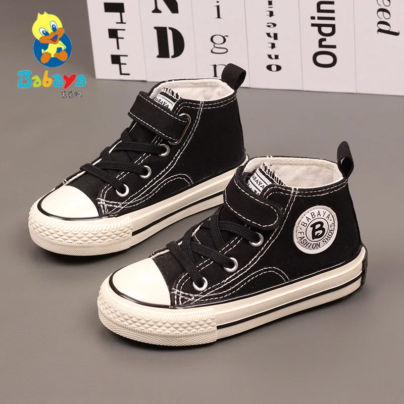 Boys Canvas Breathable Sneakers Girls High Top Casual Shoes 2021 Fall New