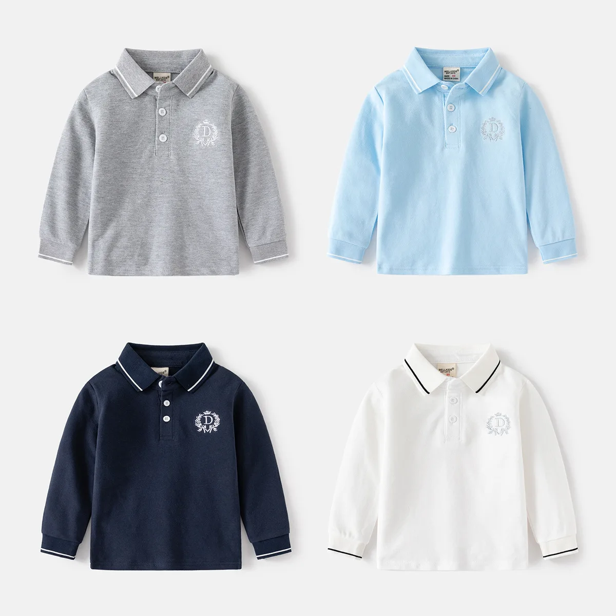 Boys’ Fashionable and Simple T-Shirt with Long Sleeve Cotton Kids Polo Shirts Ideal for Autumn Winter Children’s Clothes