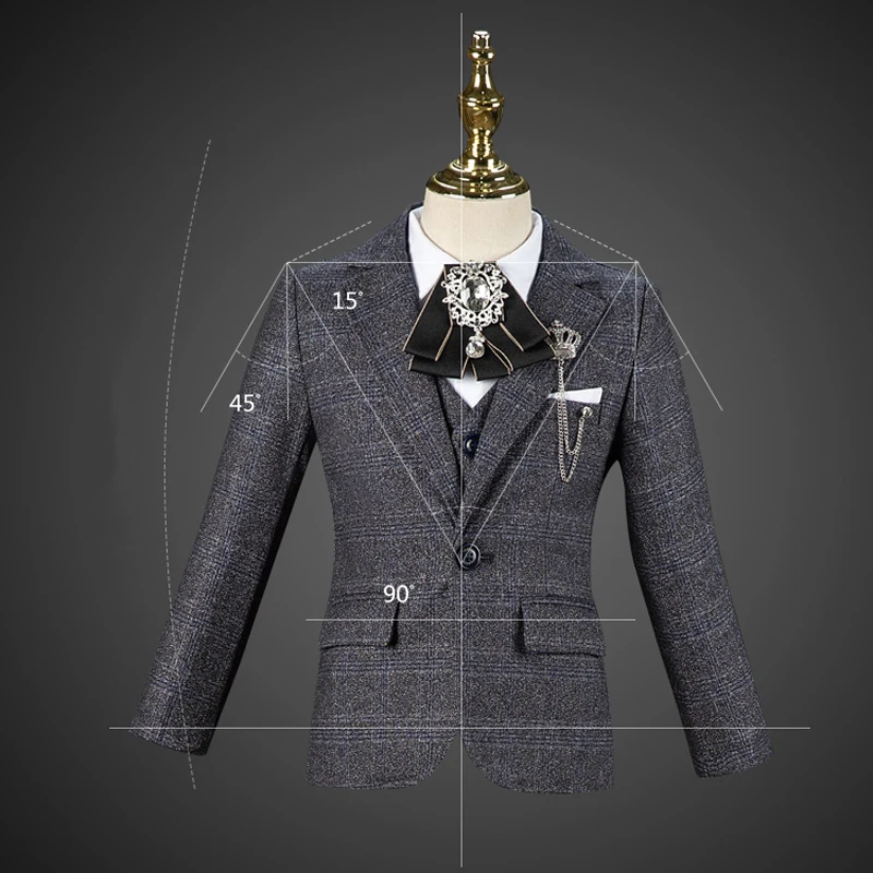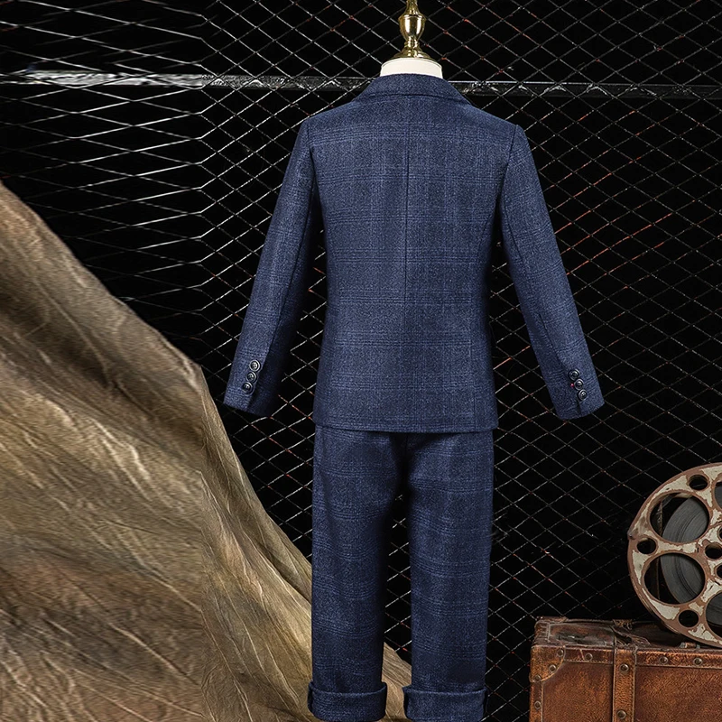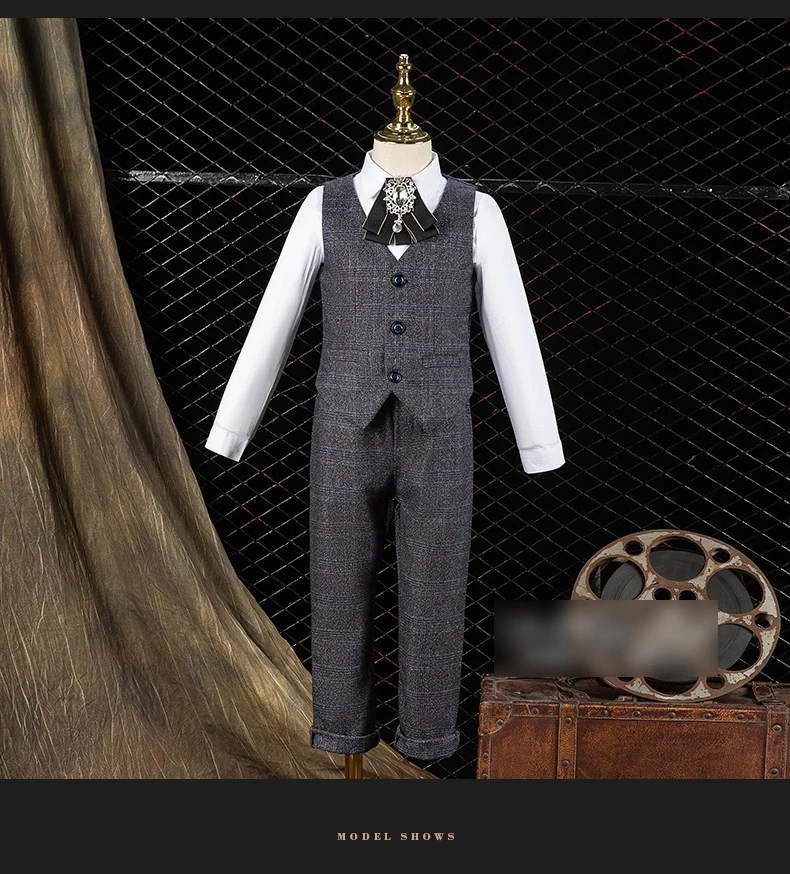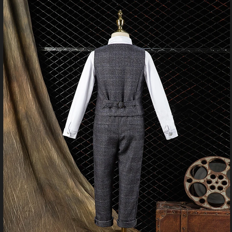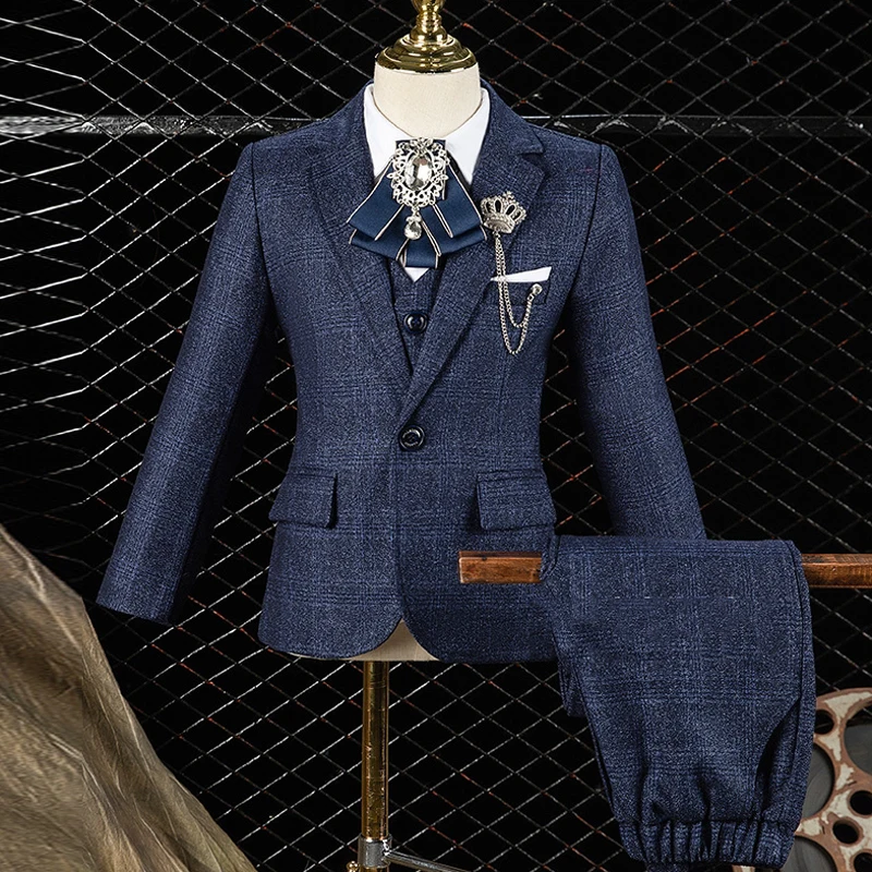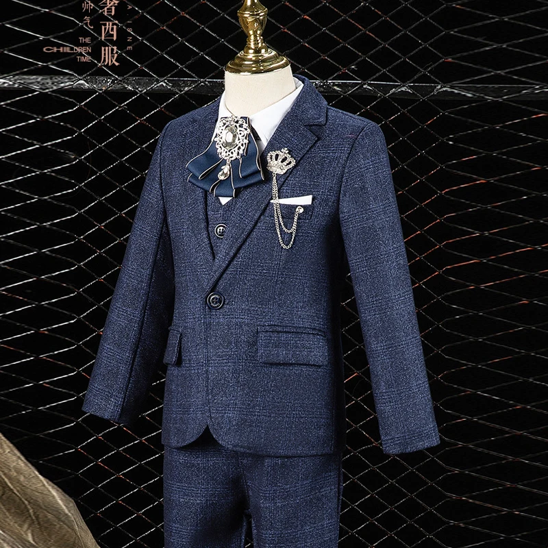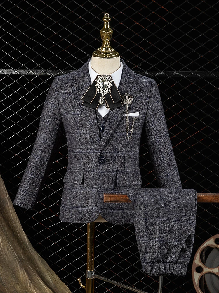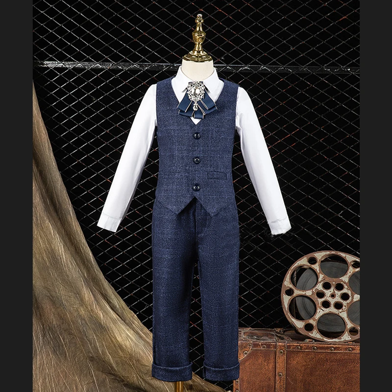 Boy’s Formal Wedding Suit Set Children’s Birthday British Style Handsome Piano Performance Dress Kids Blazer Vest Pants Clothes