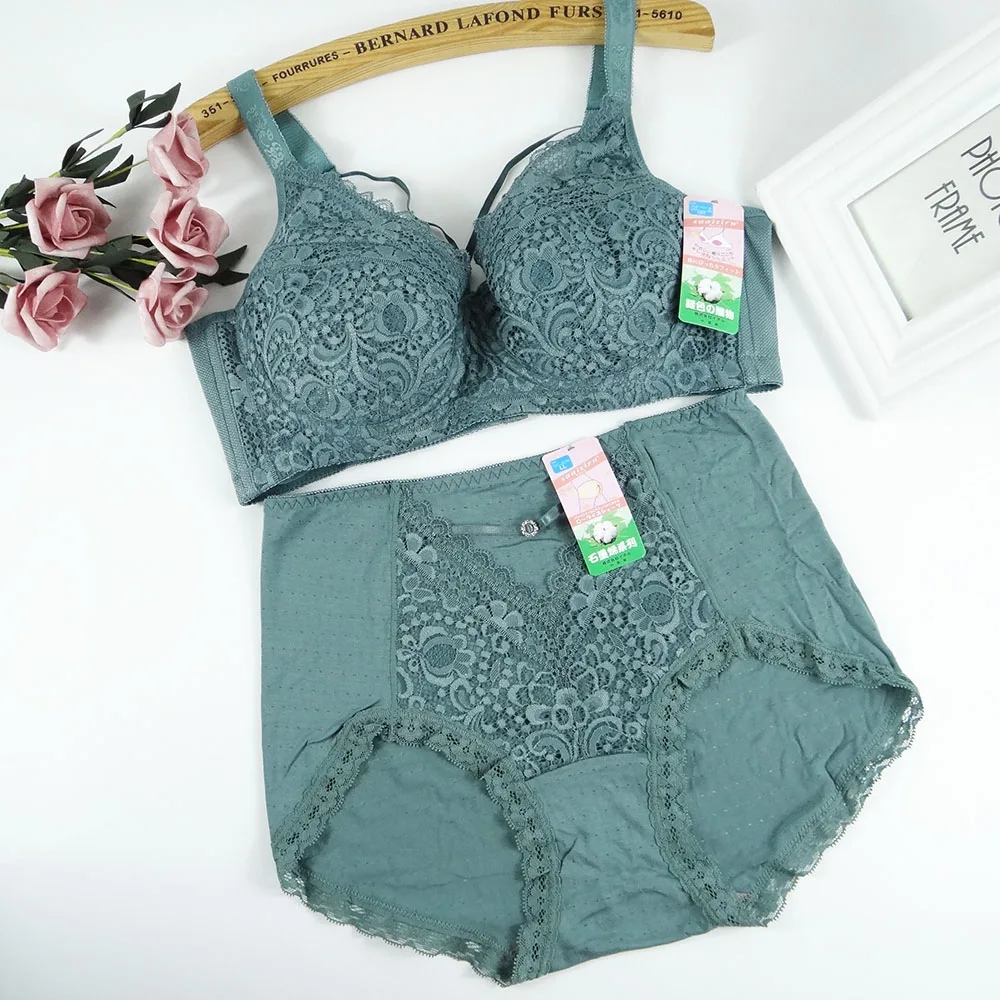 Bra Sets for Women Sexy Breathable Female Large Plus Size Lace Push Up Bralette Bra and Panty 34 36 38 40 42 44F B C D E F Cup