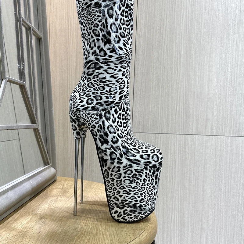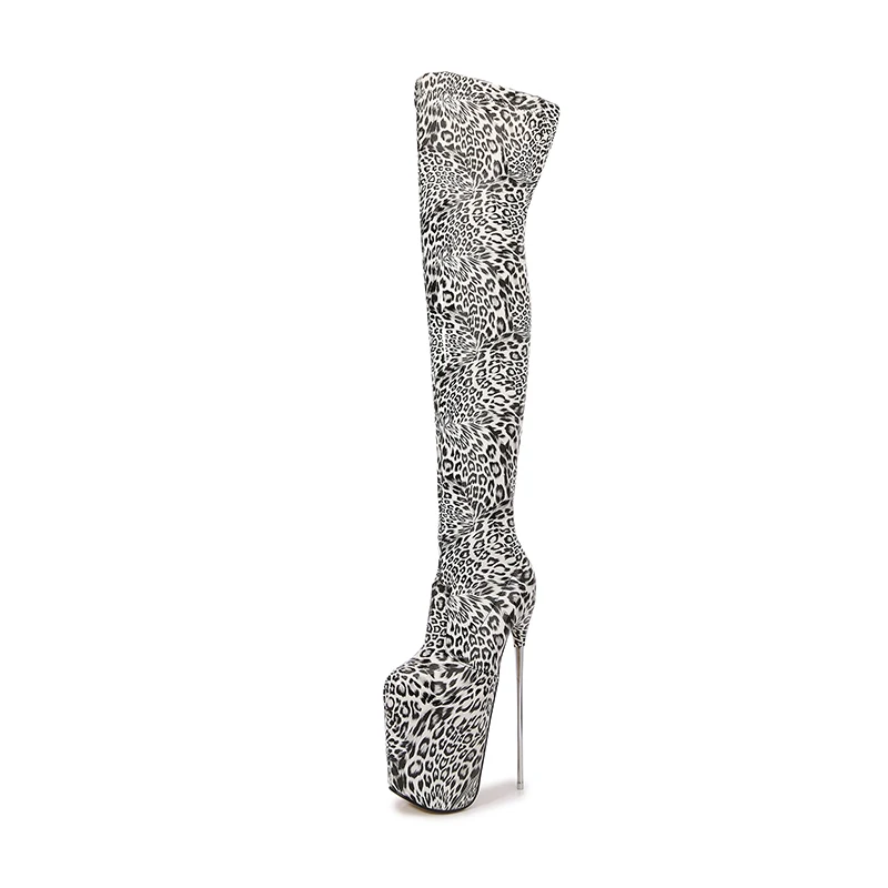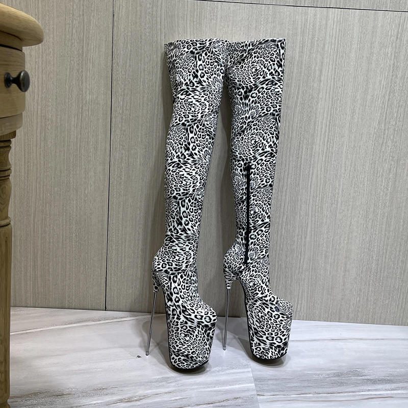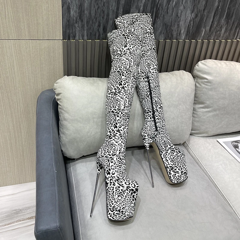 Brand 20cm Thin Heels Over The Knee Leopard Boots Platform 22CM Unisex botas mujer ladies Fetish Party 30cm Pumps Women Shoes