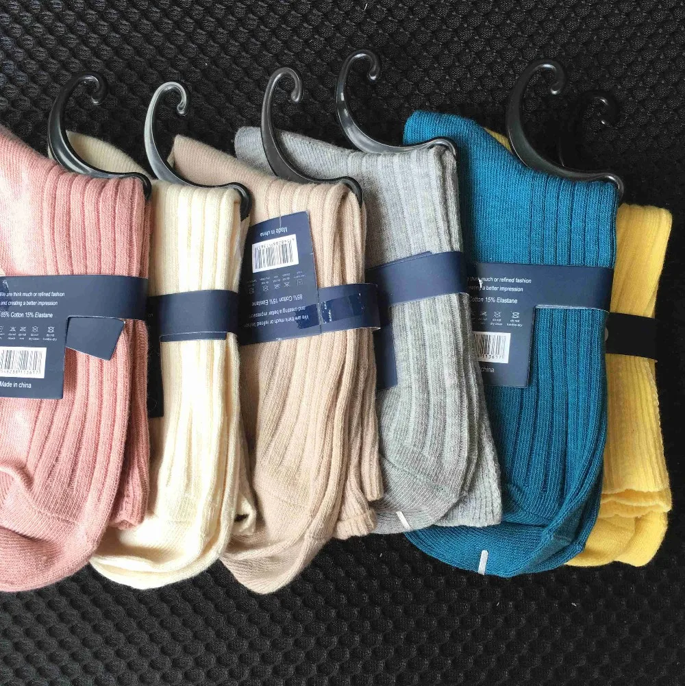 Brand High Quality Solid Fashion 100% Cotton Sock Women’s Girls Novelty Blue Novelty Footwear Crew Socks 5 Pairs/Lot