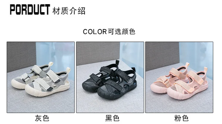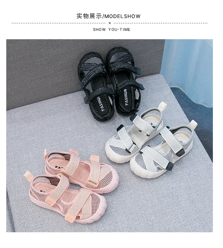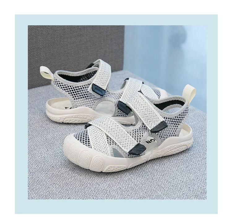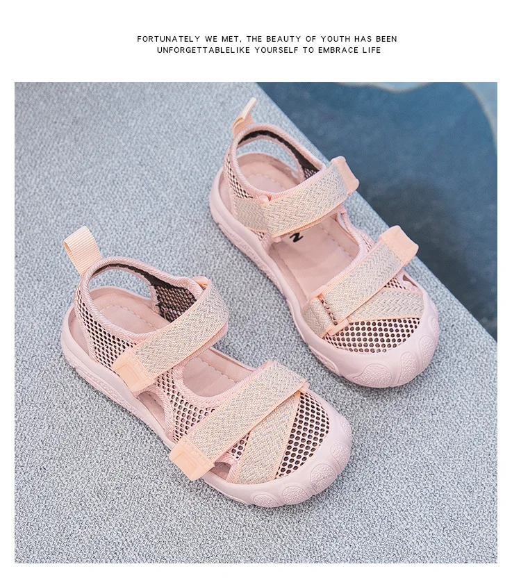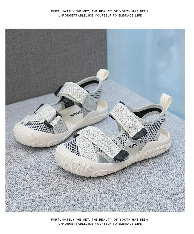 Breathable Mesh Shoes Hook Loop Children Sandals Sandalias Kids Summer Sandals Closed Toe Cool Beach Shoes for Boys and Girls