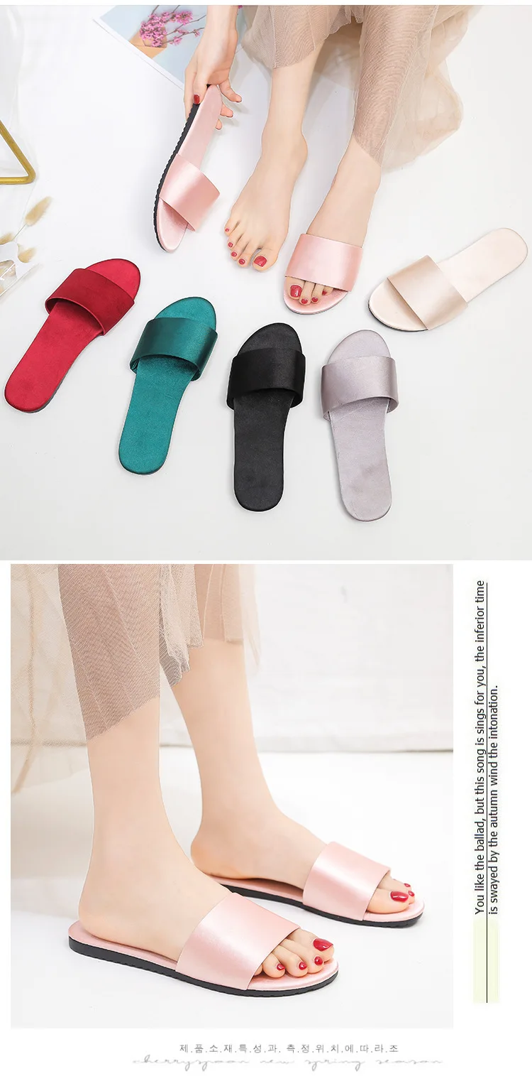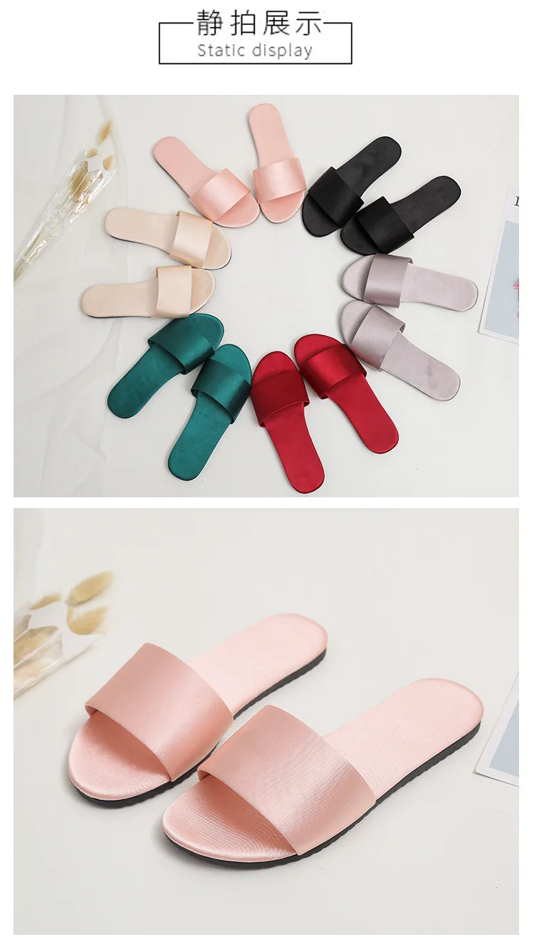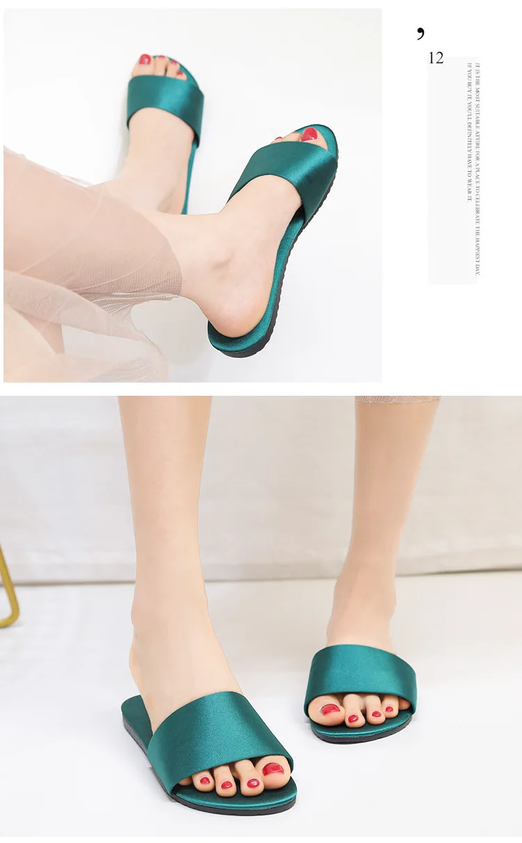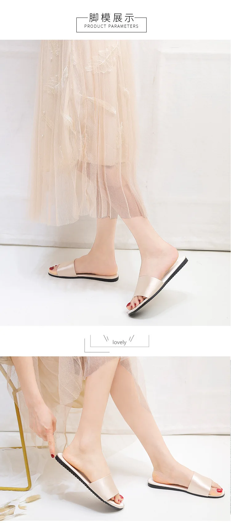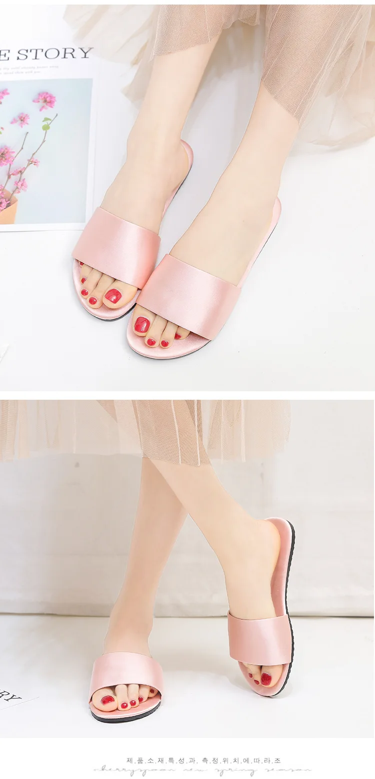 brief candy color silk slippers women flat heel summer slides shoes open toe flip flops ladies mules outdoor footwer big size 41