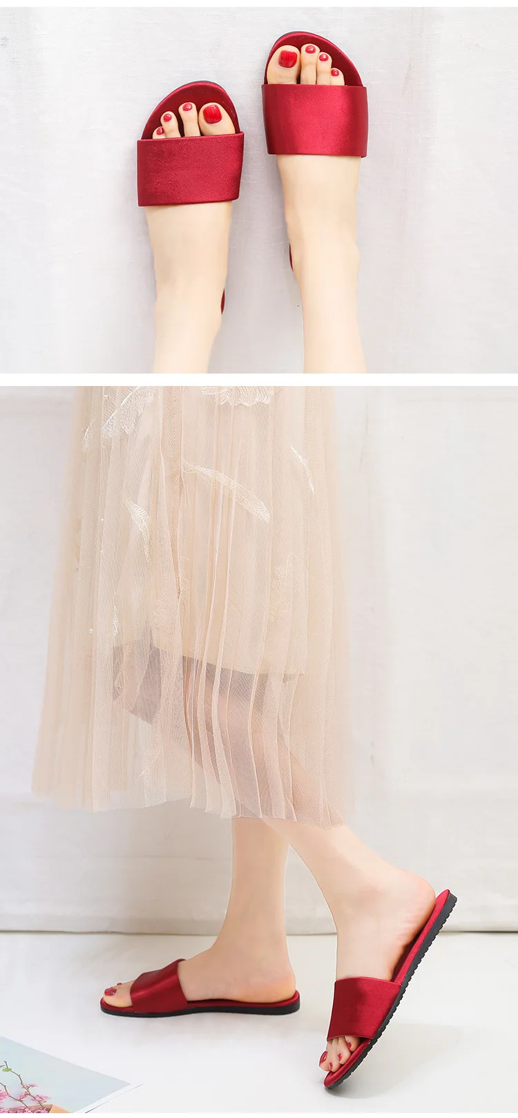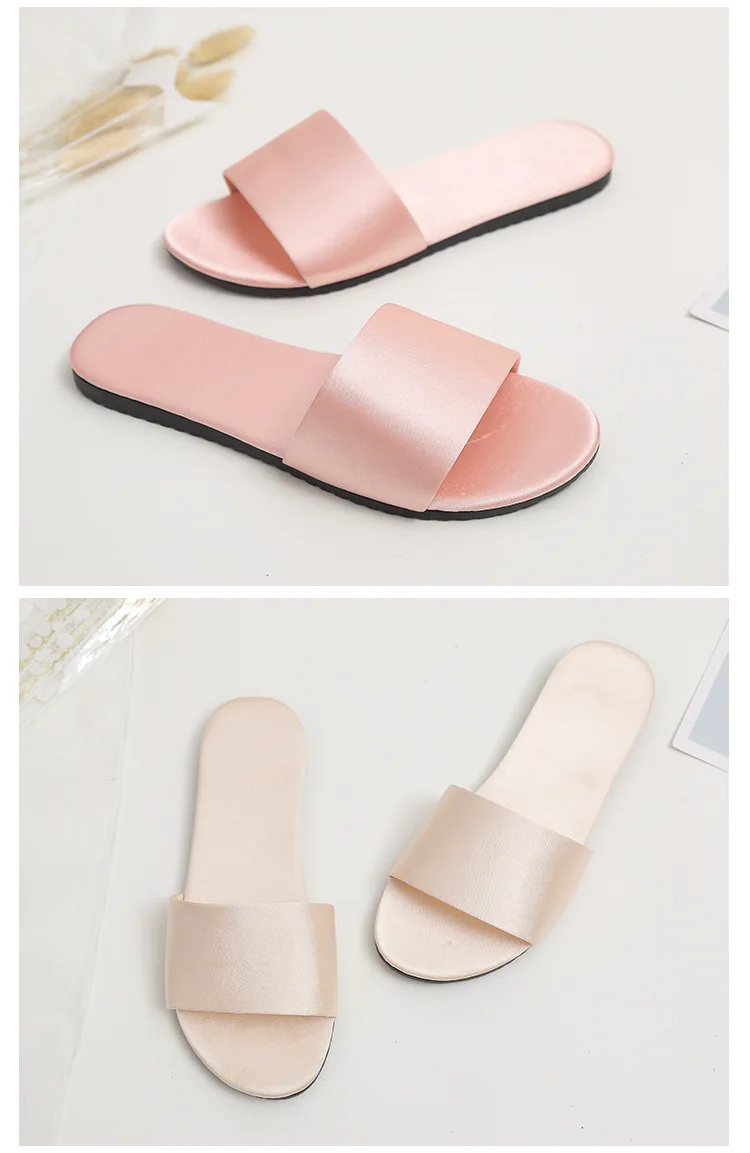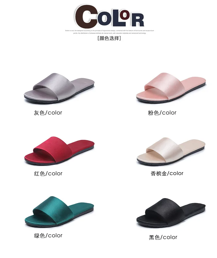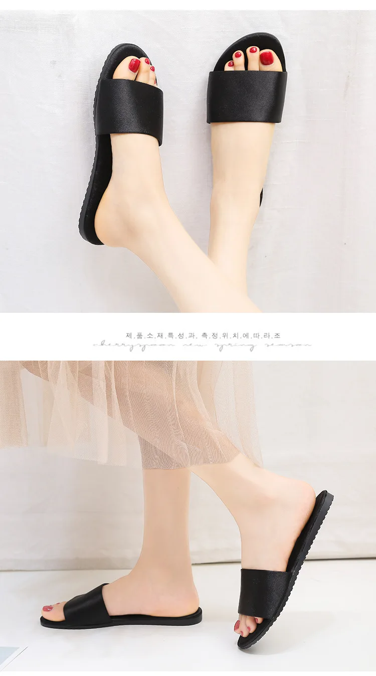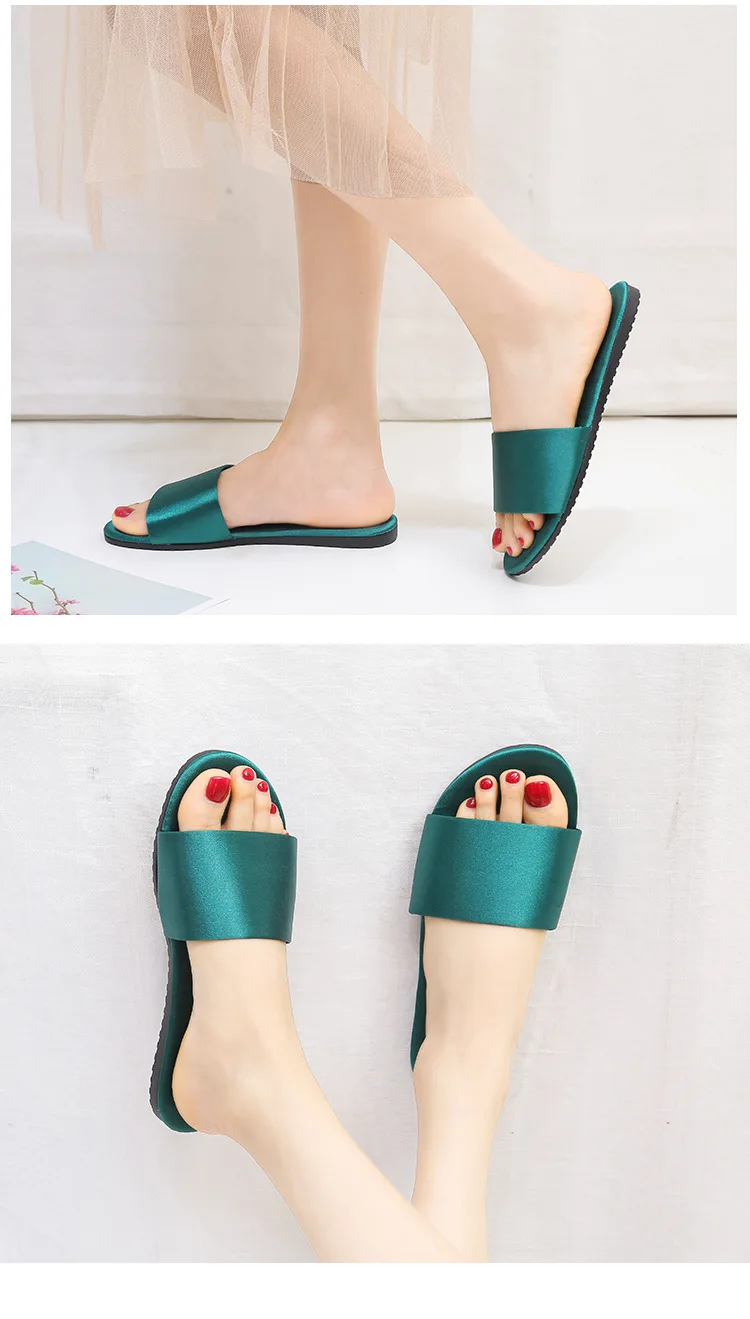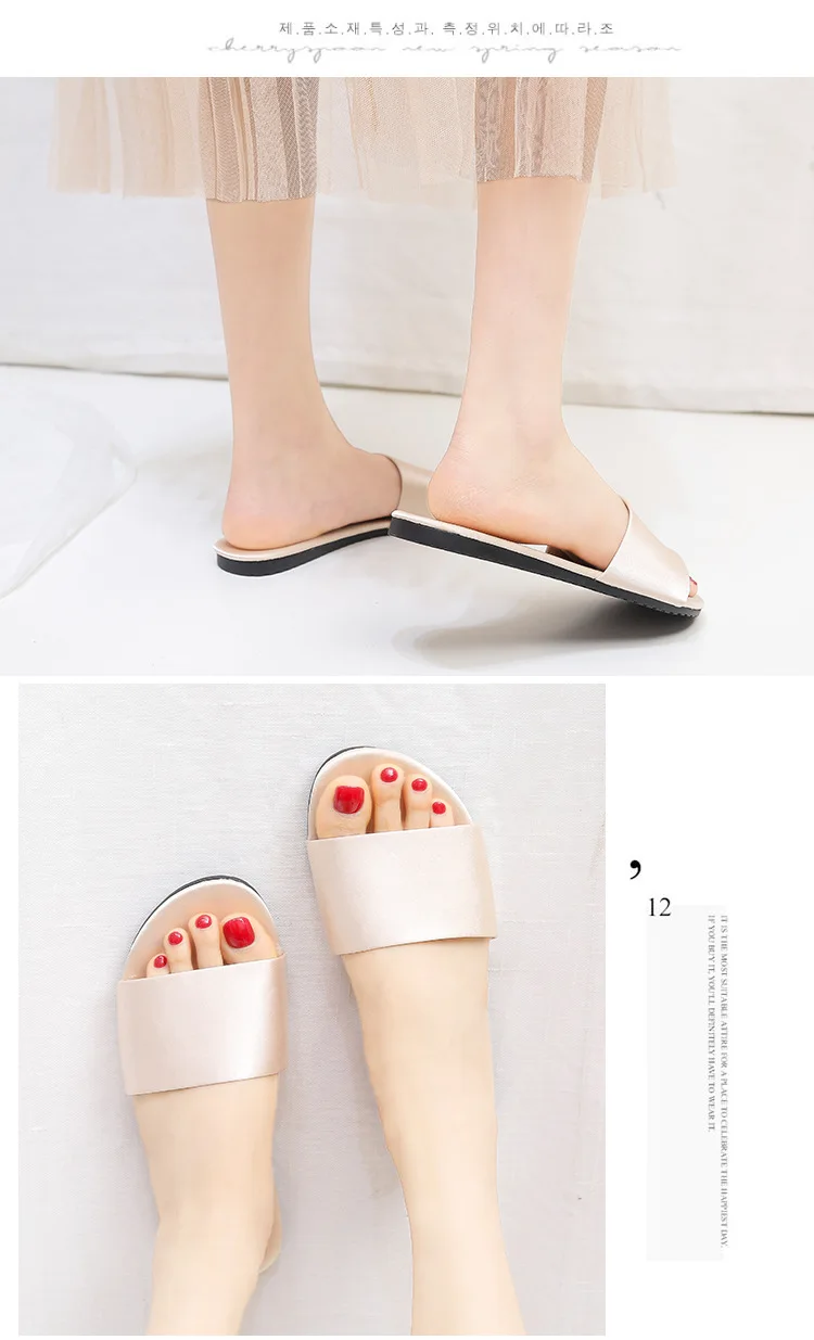 brief candy color silk slippers women flat heel summer slides shoes open toe flip flops ladies mules outdoor footwer big size 41