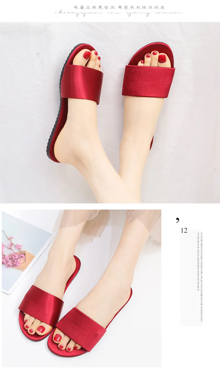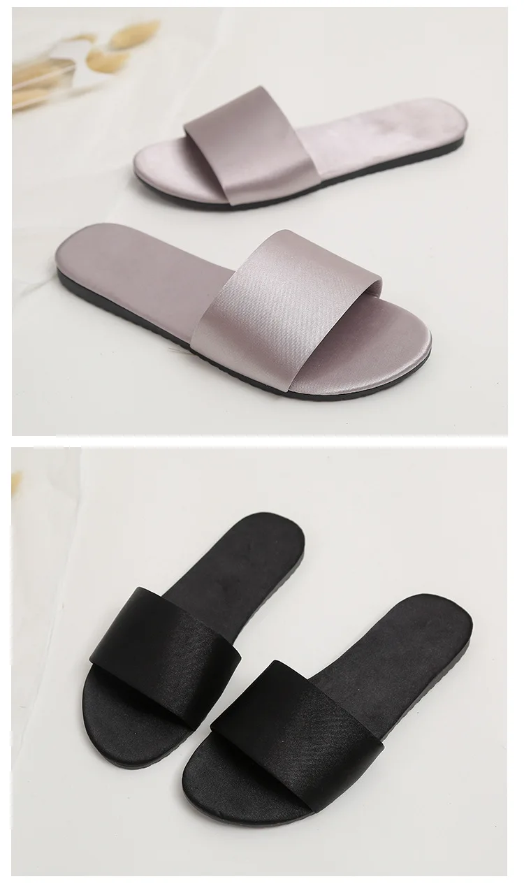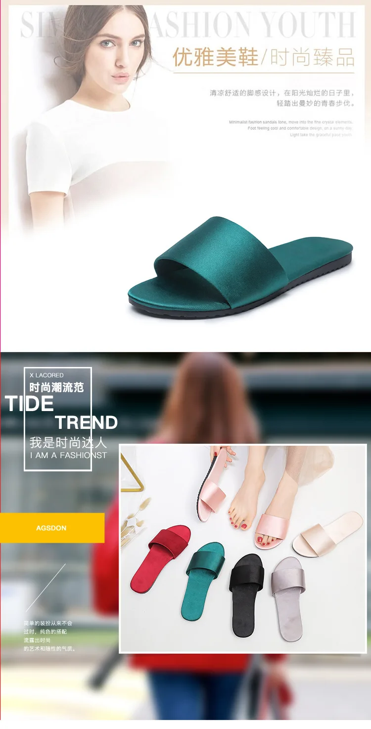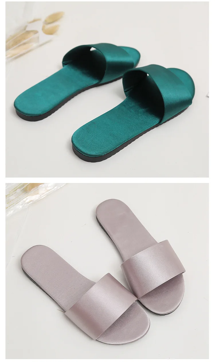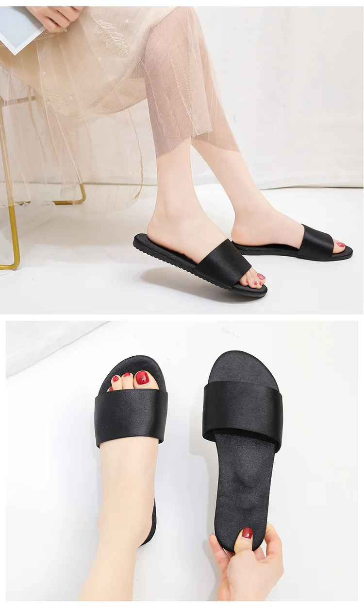 brief candy color silk slippers women flat heel summer slides shoes open toe flip flops ladies mules outdoor footwer big size 41