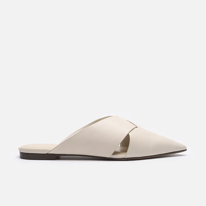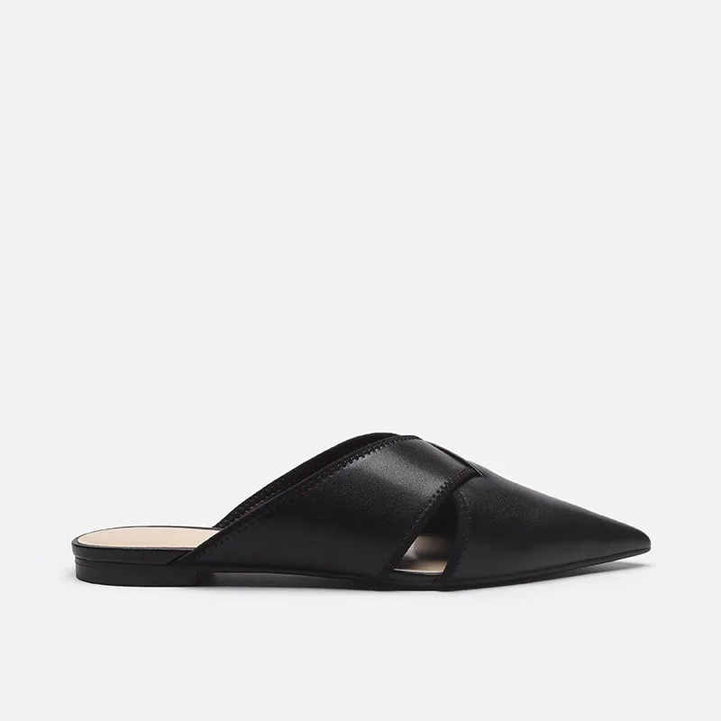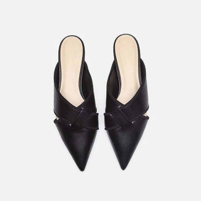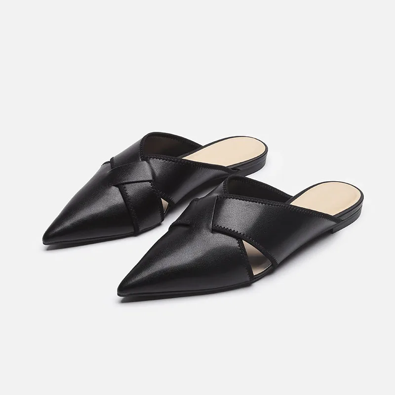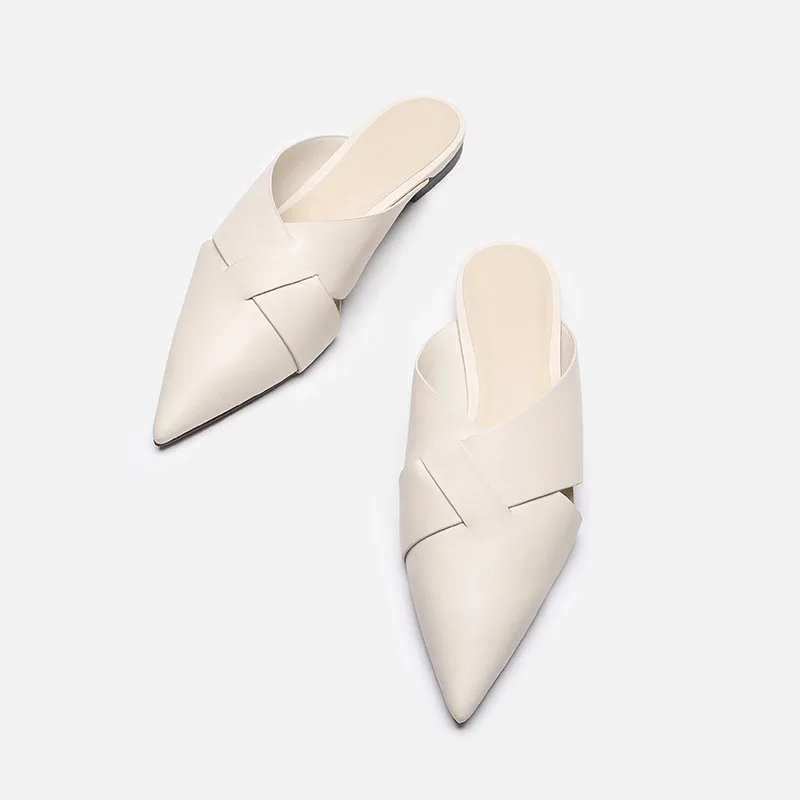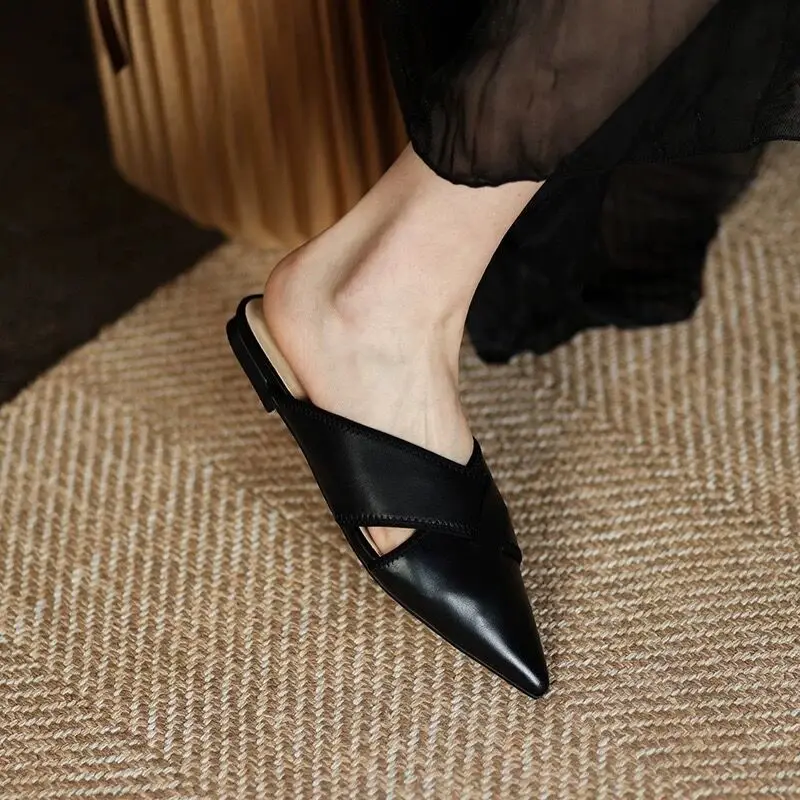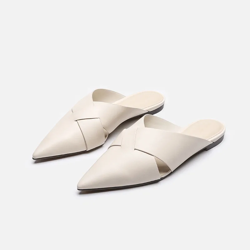 Brief Leather Cross Belt Slides Ladies Pointed Toe Mules Hollow Slippers Woman Flat Sandalias Femininas Yellow Slides Shoes 2023