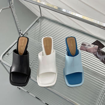 2023 Summer Slip On Slippers Woman Leather Sandalia