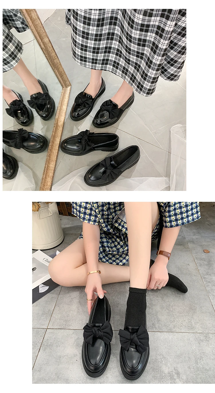 2020 Black Bow-Knot OL Oxfords Shoes Women
