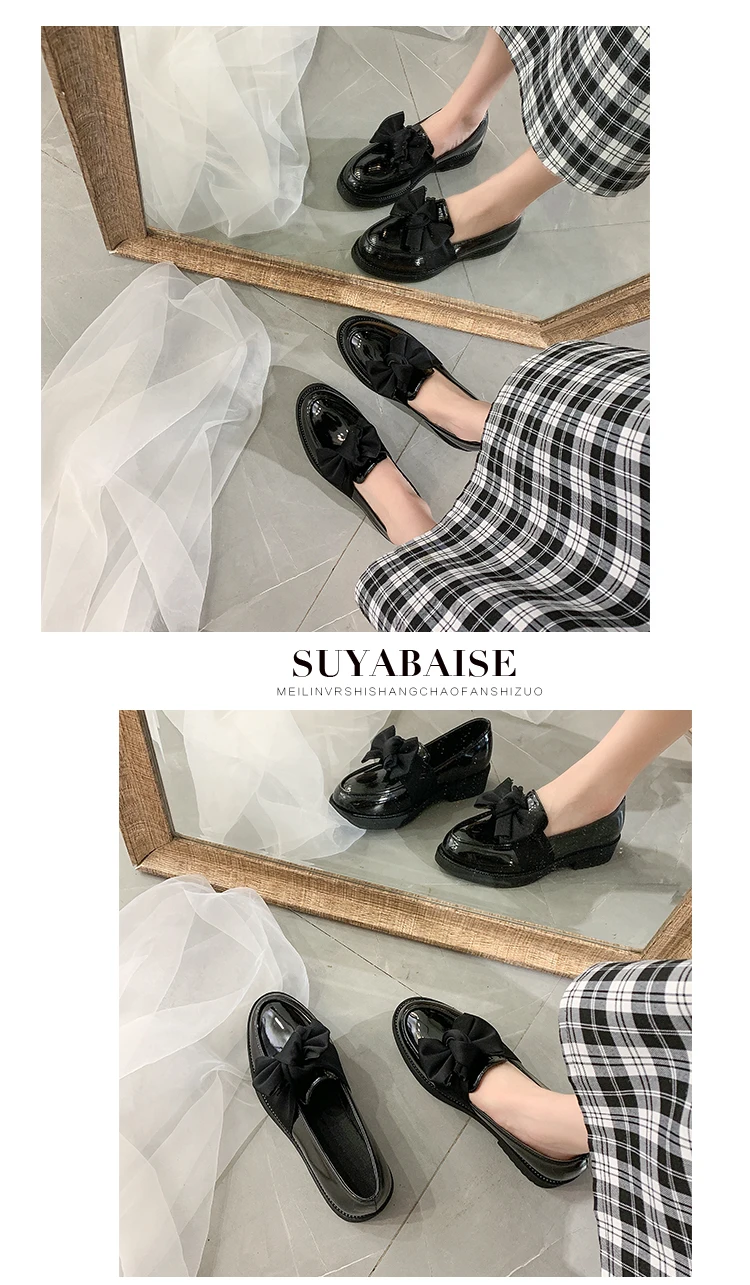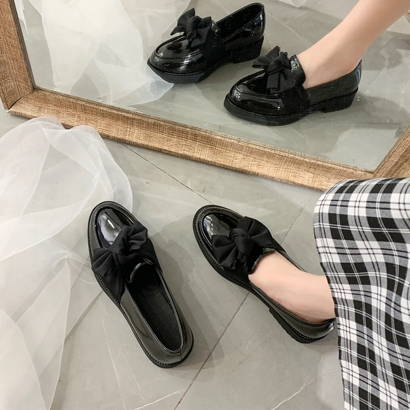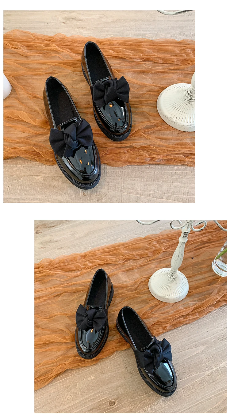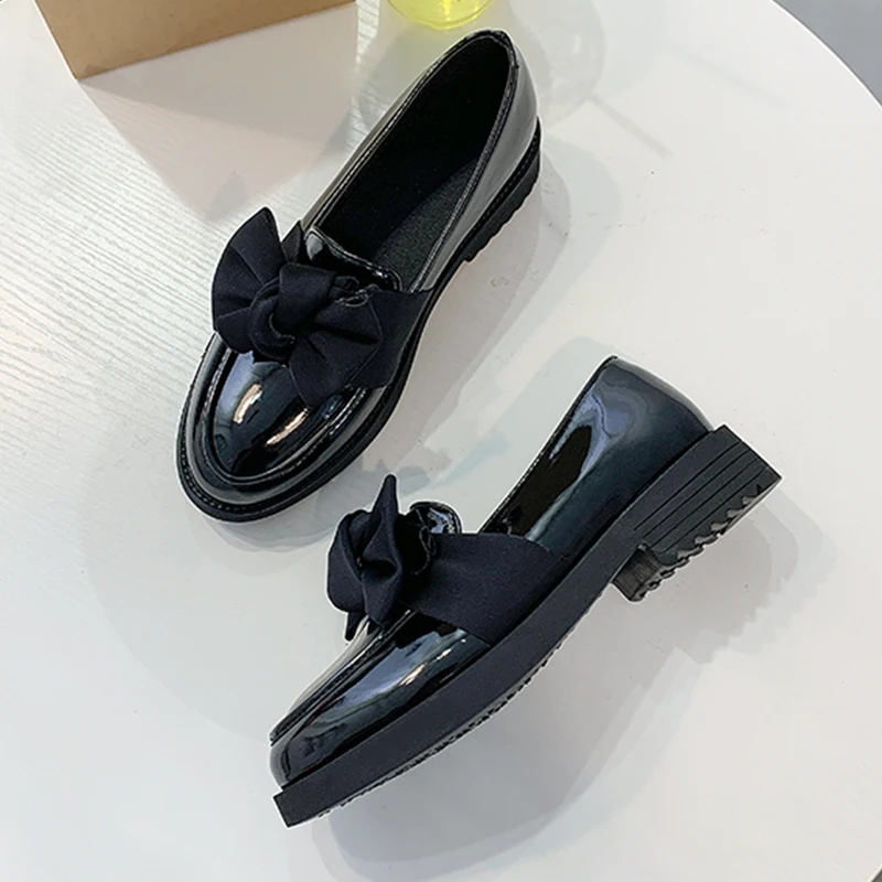 British Student black matte & patent leather mary janes woman flats derby shoes women loafers bow-knot oxfords women shoes 2020