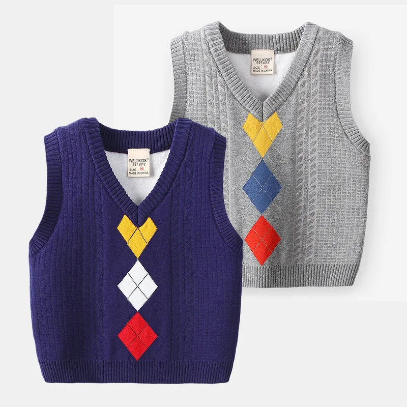 British Style Boys Sweater Vest Quality Cotton Fall Clothes For Kids Children’s Clothing Toddler Pullover