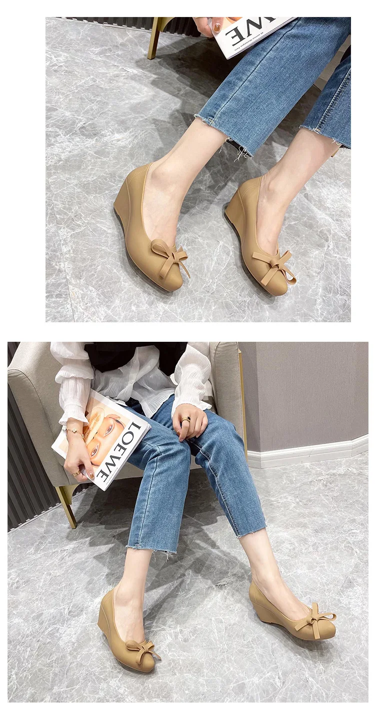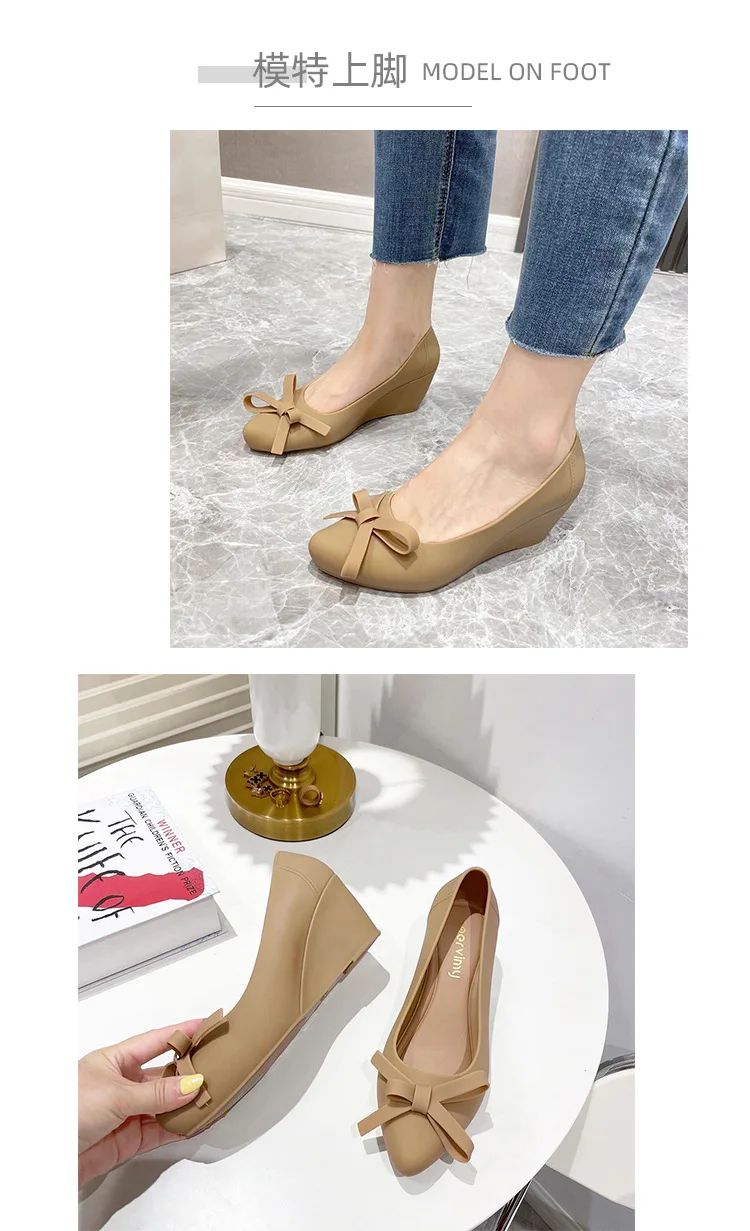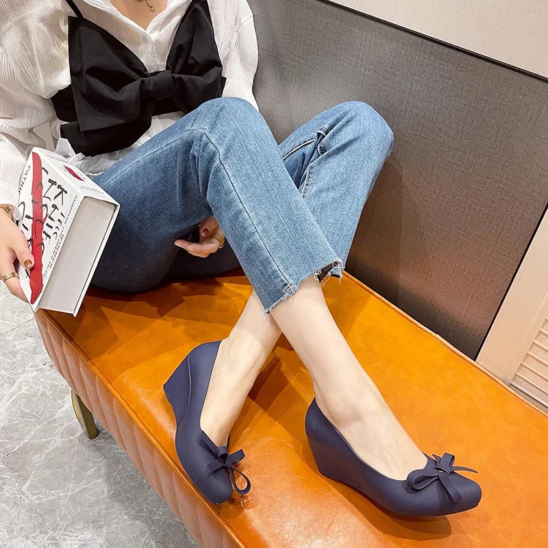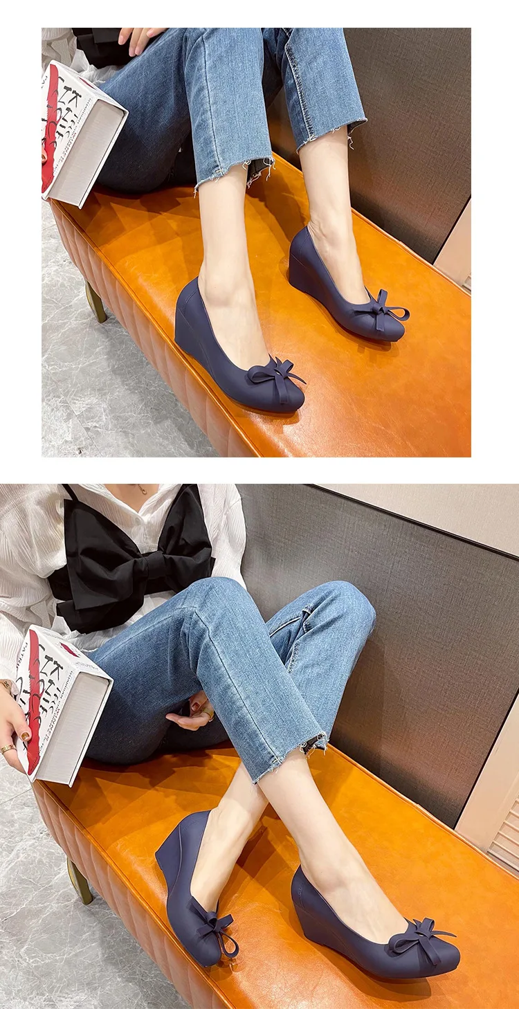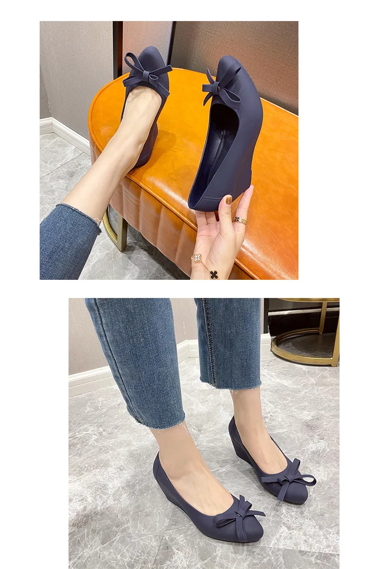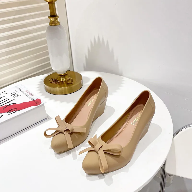Fashion Bow-Knot Jelly Pumps Wedges High Heels Shoes Women