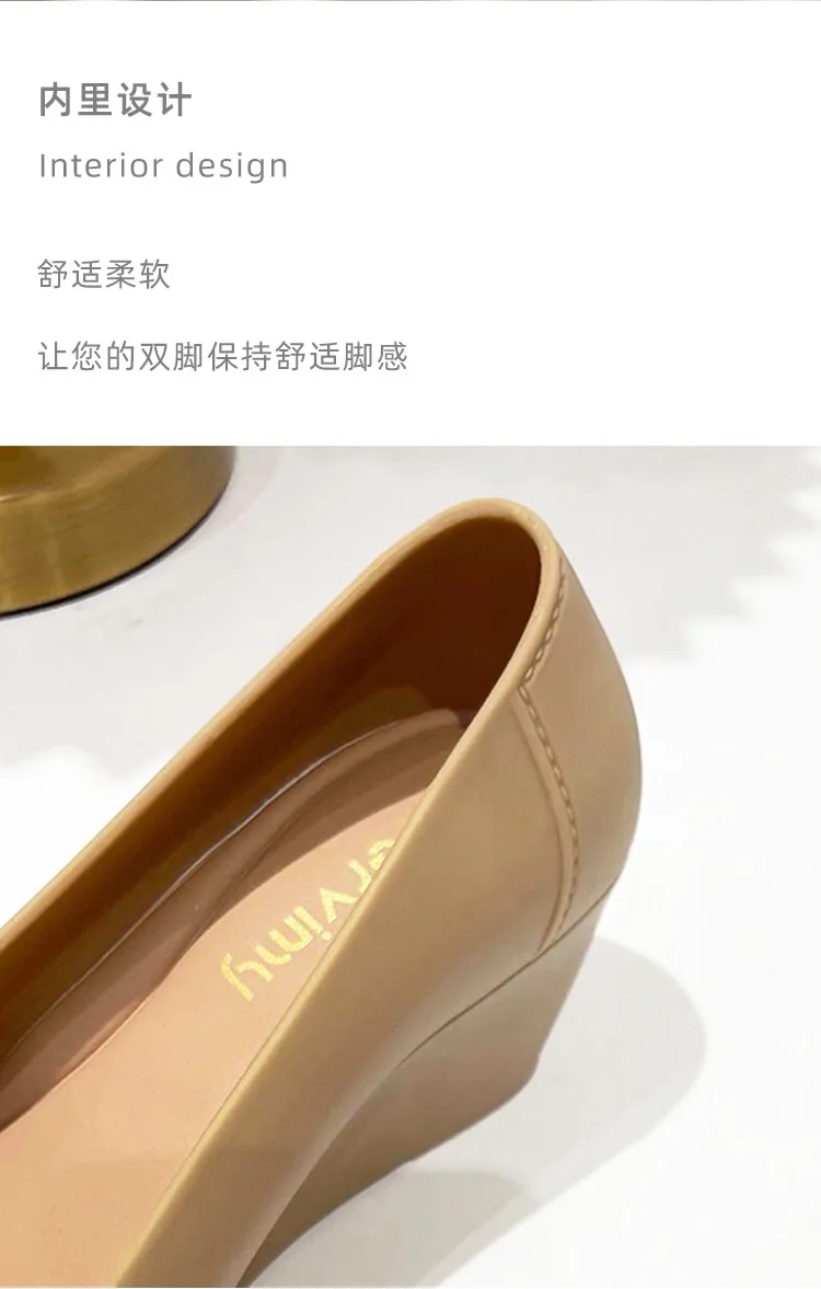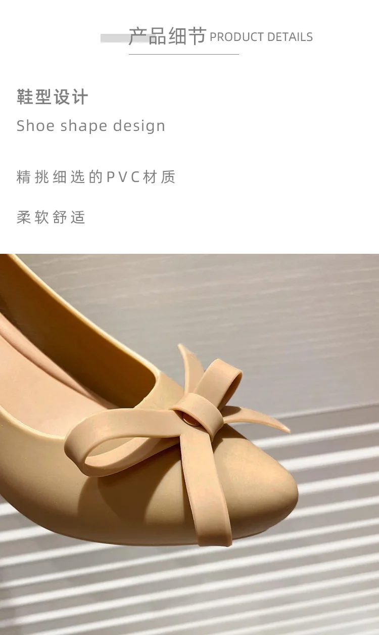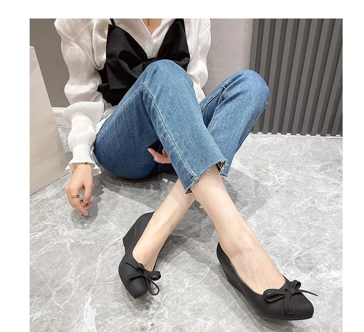 Butterfly-Knot jelly shoes woman pvc pumps shallow pointed toe waterproof tacones plastic wedges high heels shoes for women 2022
