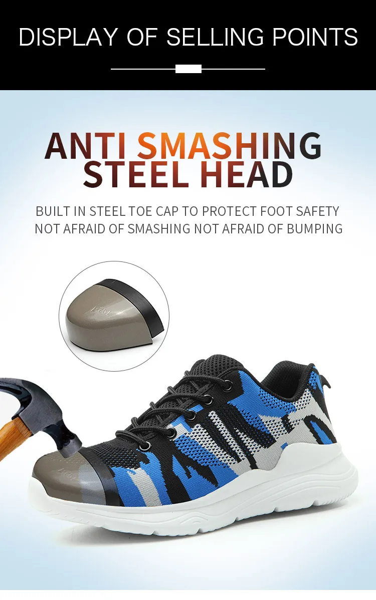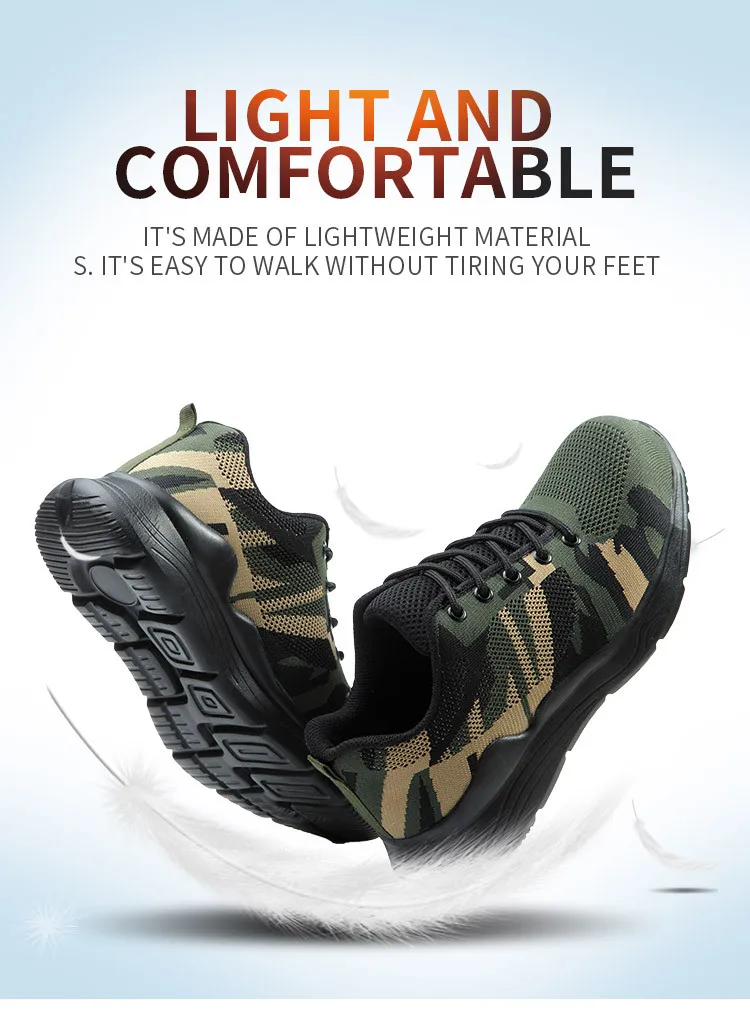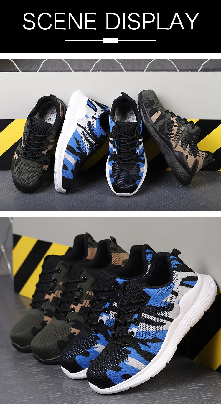 Camouflage Safety Shoes Women Men Work Sneakers Steel Toe Shoes Indestructible Men Work Shoes Puncture-Proof Safety Boots Unisex
