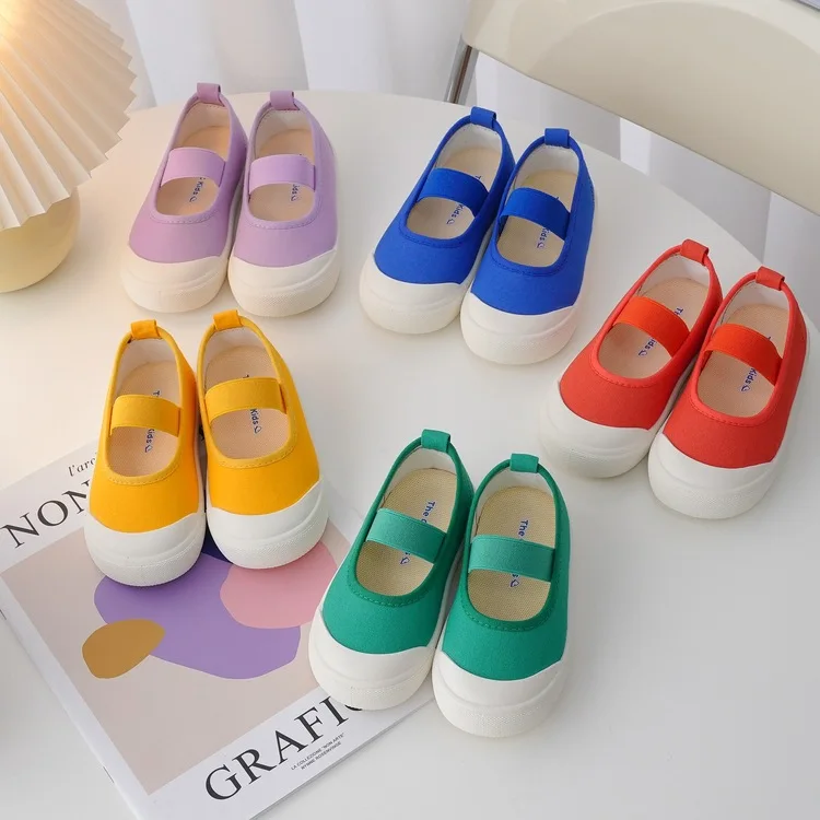 Candy Color Children Canvas Shoes Autumn Spring Soft Bottom Kids Sneakers Slip on Shallow Mouth Boys Girls Flat Shoes Chaussures