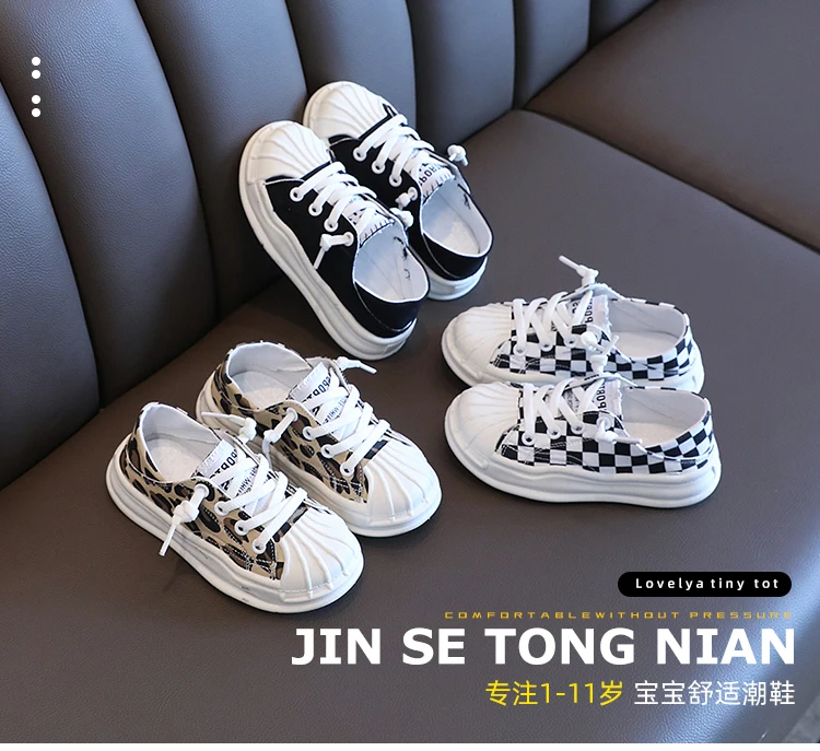 Canvas Shoes Girls 2022 Spring And Autumn New Children’s Set Foot One Pedal Casual Sports Shoes Boys Breathable Shoes