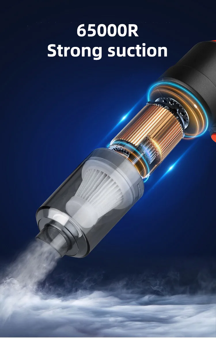 High-power suction: powerful motor generates suction,sucking away dust, hair, debris and other dirt in the car.Portable and easy to store: Cordless car vacuum cleaner with handle