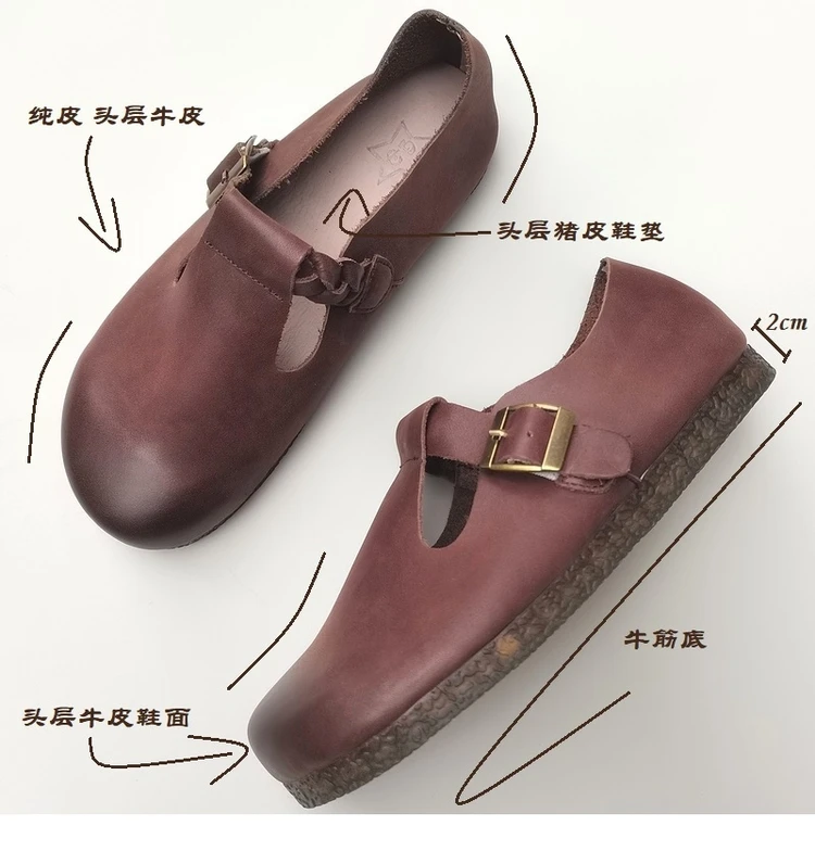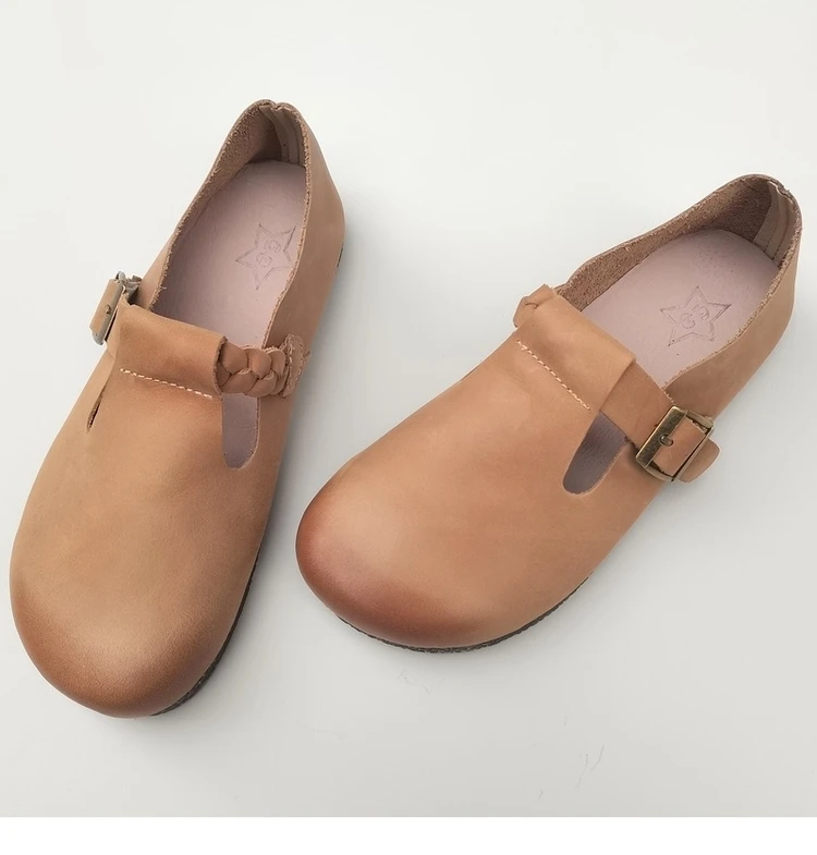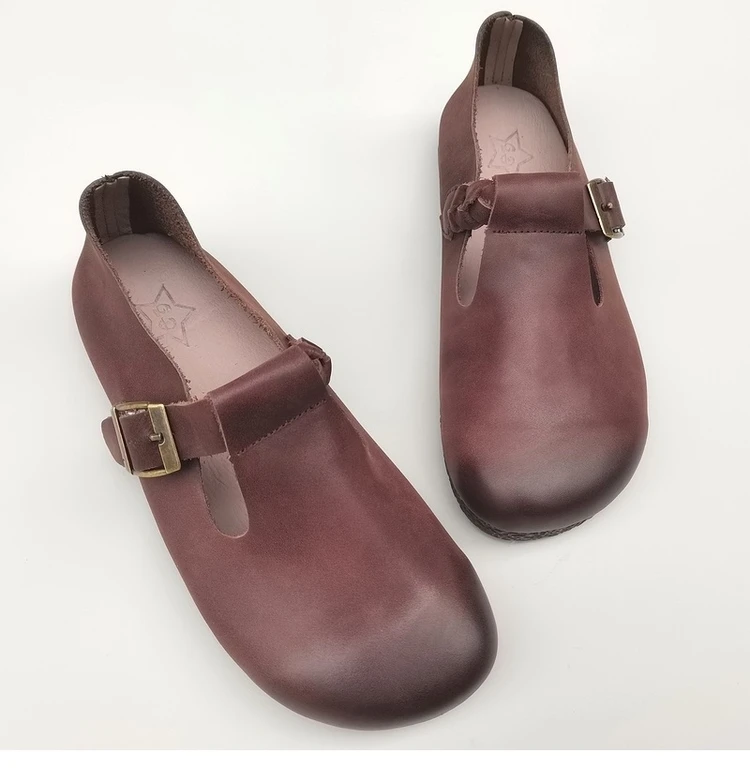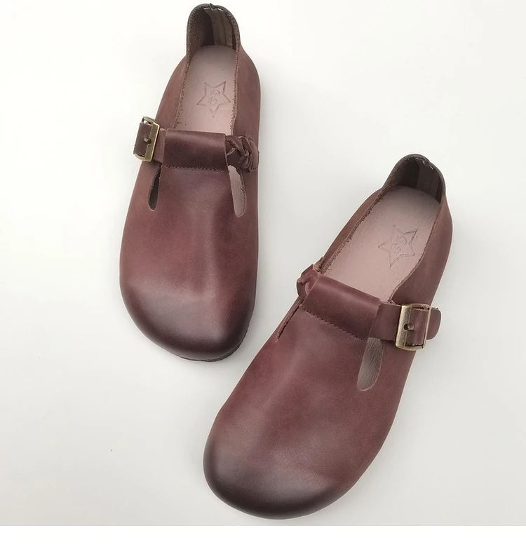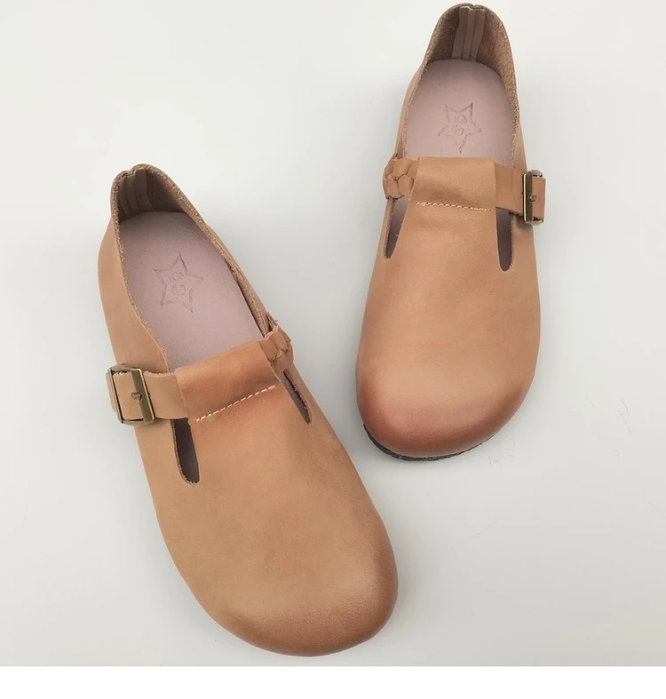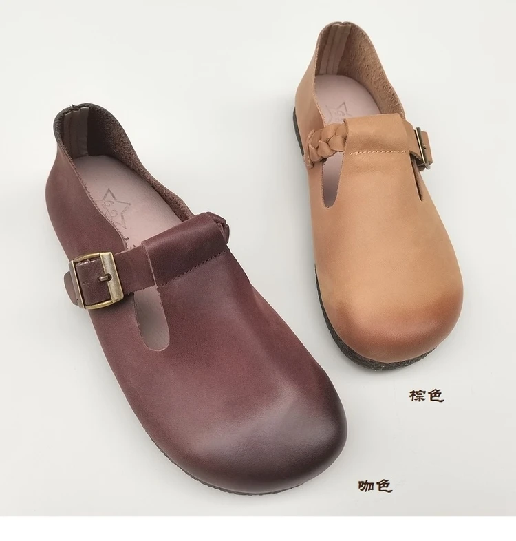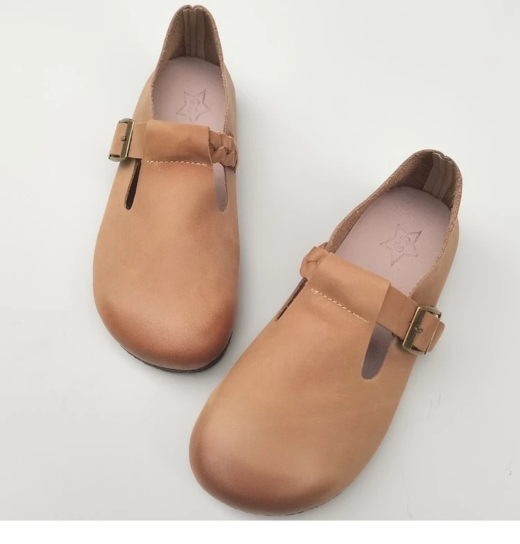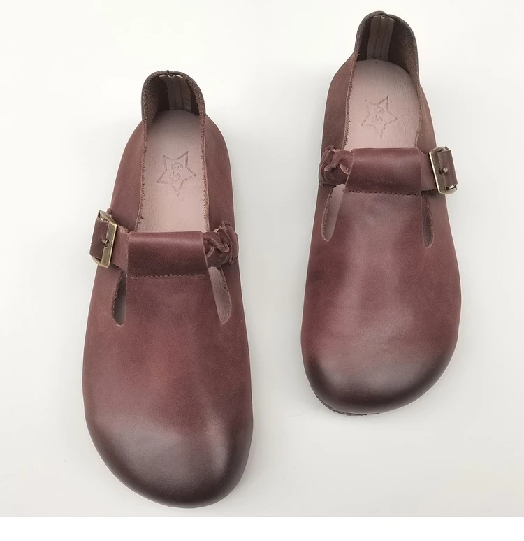 Careaymade-Genuine leather pure handmade retro women’s shoes flat soft cow tendon bottom casual breathable handmade single shoes