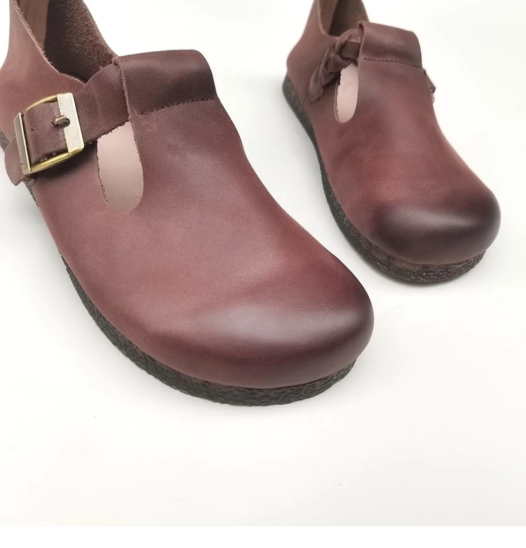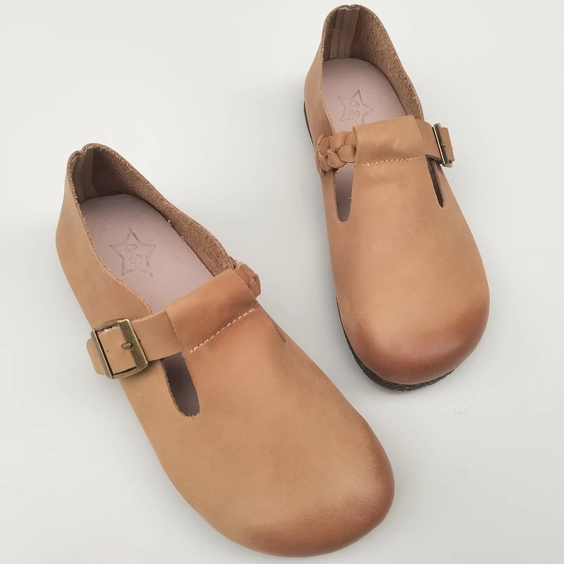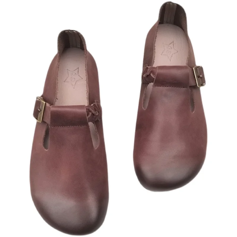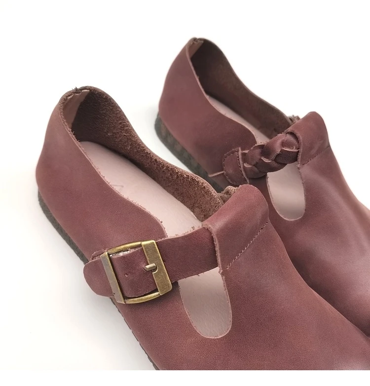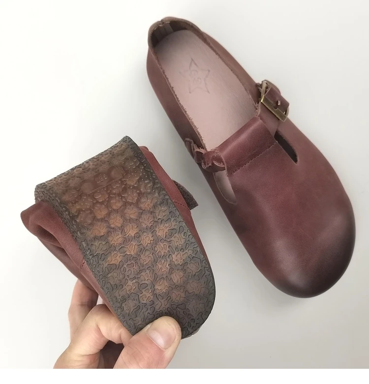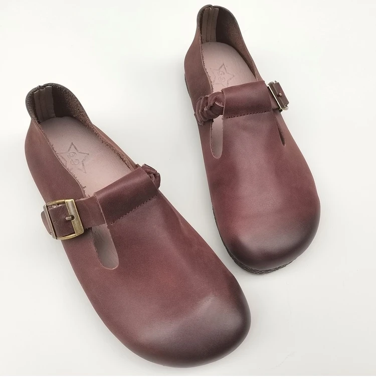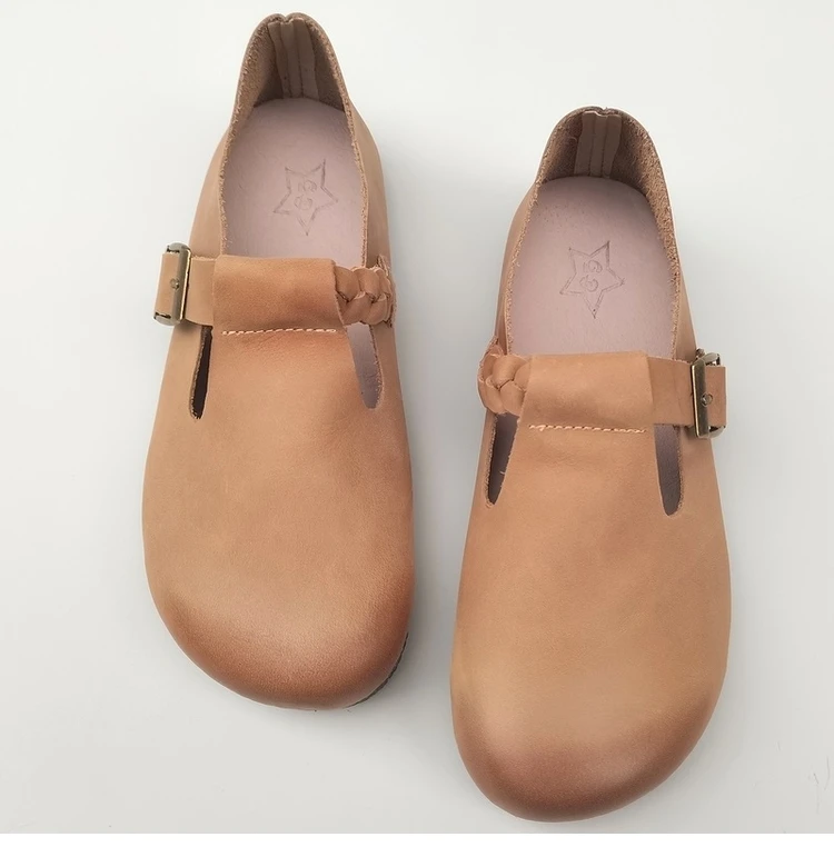 Careaymade-Genuine leather pure handmade retro women’s shoes flat soft cow tendon bottom casual breathable handmade single shoes