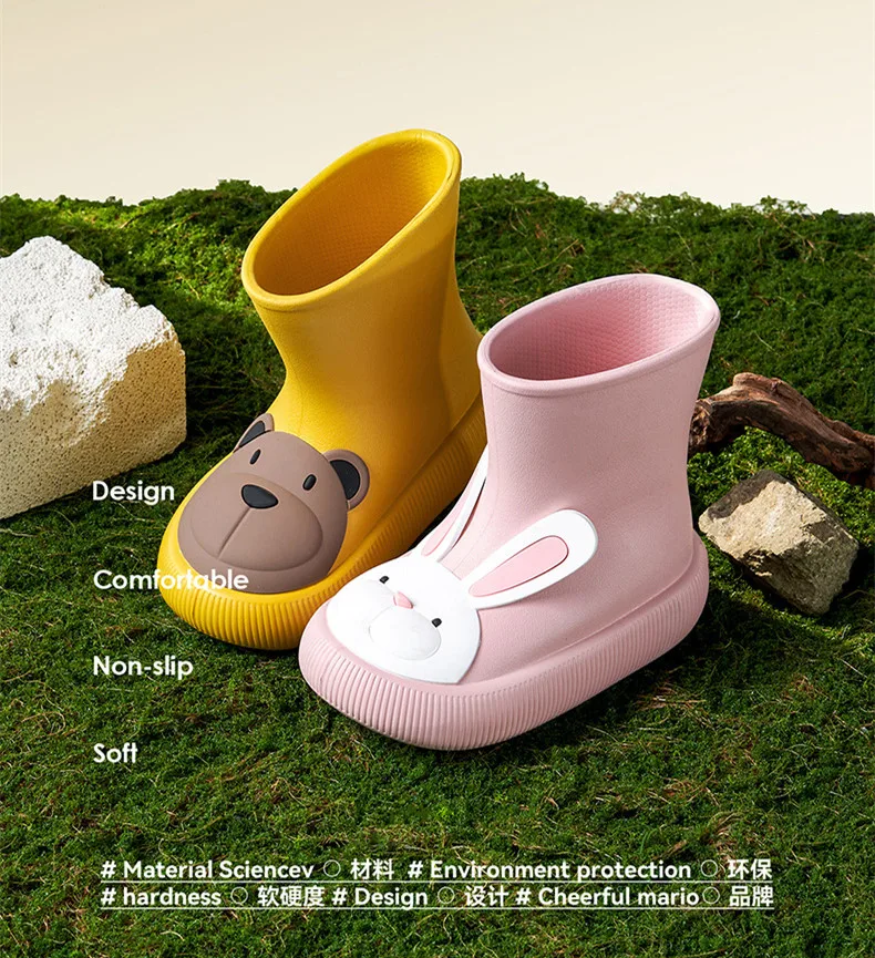 Cartoon Bear Rabbit Children Boys Girls Rain Water Shoes Boot Covers Protect Portable Antiskid Waterproof Boots for Baby Kids
